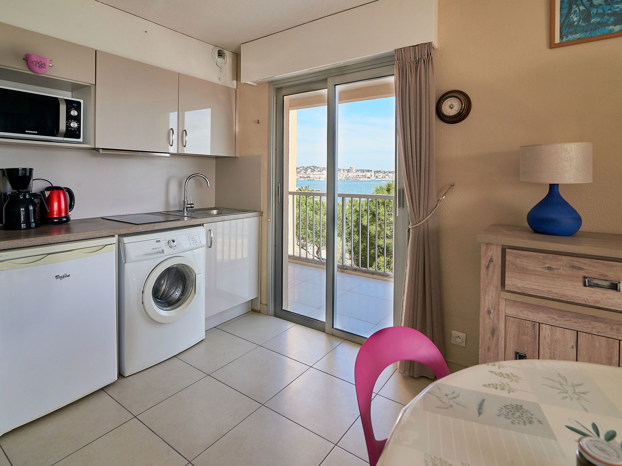 Port Fréjus: Résidence "Le Capitole", de 7 étages. À 20 m de la mer, à 20 m de la plage. Infrastructures de la résidence: ascenseur. Parking public possible dans la rue. Magasins 20 m, supermarché 2 km, restaurant, boulangerie 20 m, arrêt de bus "Oasis" 300 m, gare ferroviaire "Saint-Raphaël Valescure" 2 km, plage de sable "Fréjus", centre de plongée 50 m. Port plaisance 50 m, terrain de golf (18 trous) 6 km, golf miniature 3 km. Attractions à proximité: Cannes 40 km, Saint-Tropez 40 km, Nice 70 km, Gorges du Verdon 90 km. Les lacs connus sont facilement accessibles: Sainte-Croix 90 km, St Cassien 25 km. Région de randonnées: Estérel 8 km. La remise des clés a lieu à l’agence de Port Fréjus.