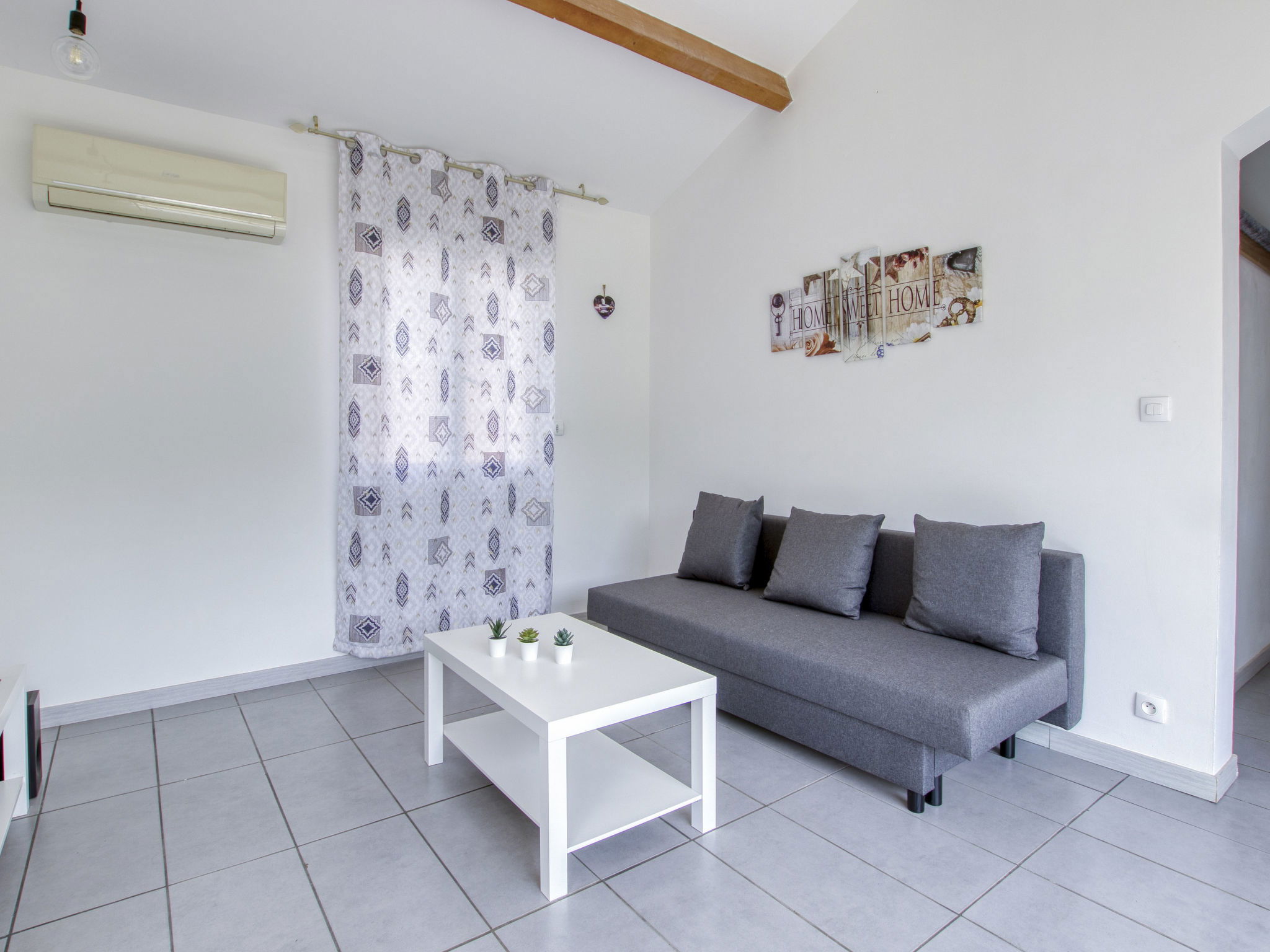 Appartement de 2 pièces 40 m2, au rez-de-chaussée. Clair, aménagement confortable et agréable: séjour/salle à manger avec 1 divan-lit double (130 cm, longueur 190 cm), TV (écran plat), air-conditionné. Sortie sur la terrasse. 1 chambre avec 1 grand-lit (140 cm, longueur 190 cm). Cuisine (mini-four, 3 plaques vitrocéramiques, grille-pain, bouilloire électrique, micro-ondes, cafetière électrique, Capsules pour machine à café (Dolce Gusto) (NON INCLUSES)). Douche/WC. Chauffage à air chaud. Terrasse 20 m2, situation sud-ouest et situation est. Meubles de terrasse. A disposition: lave-linge. Internet (Connexion WIFI, gratuit). Place de parking (2 Voitures). Veuillez noter: logement non-fumeur. 1 animal/ chien de petite taille autorisé. Détecteur de fumée. Annonce d'un particulier (art 155, IV du CGI). 83016 000059 ER