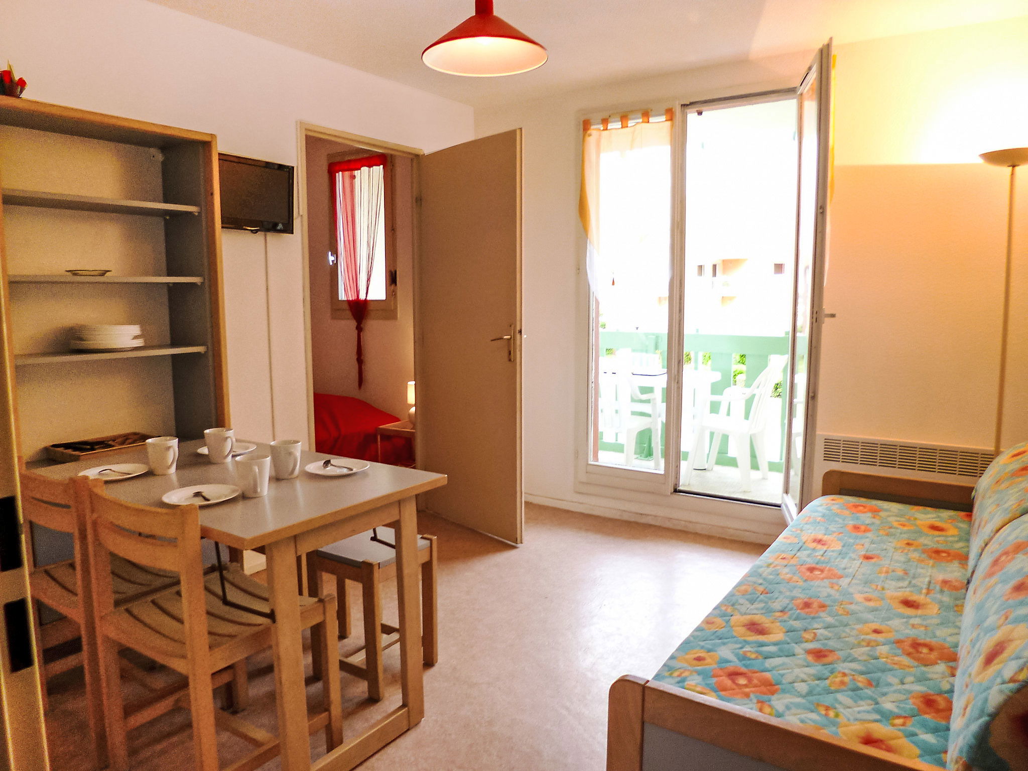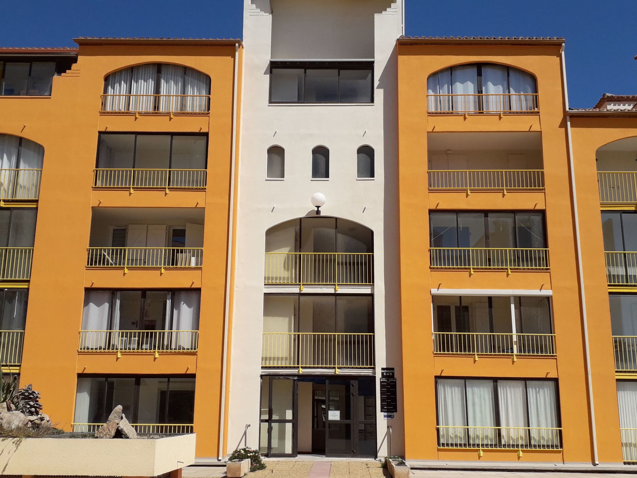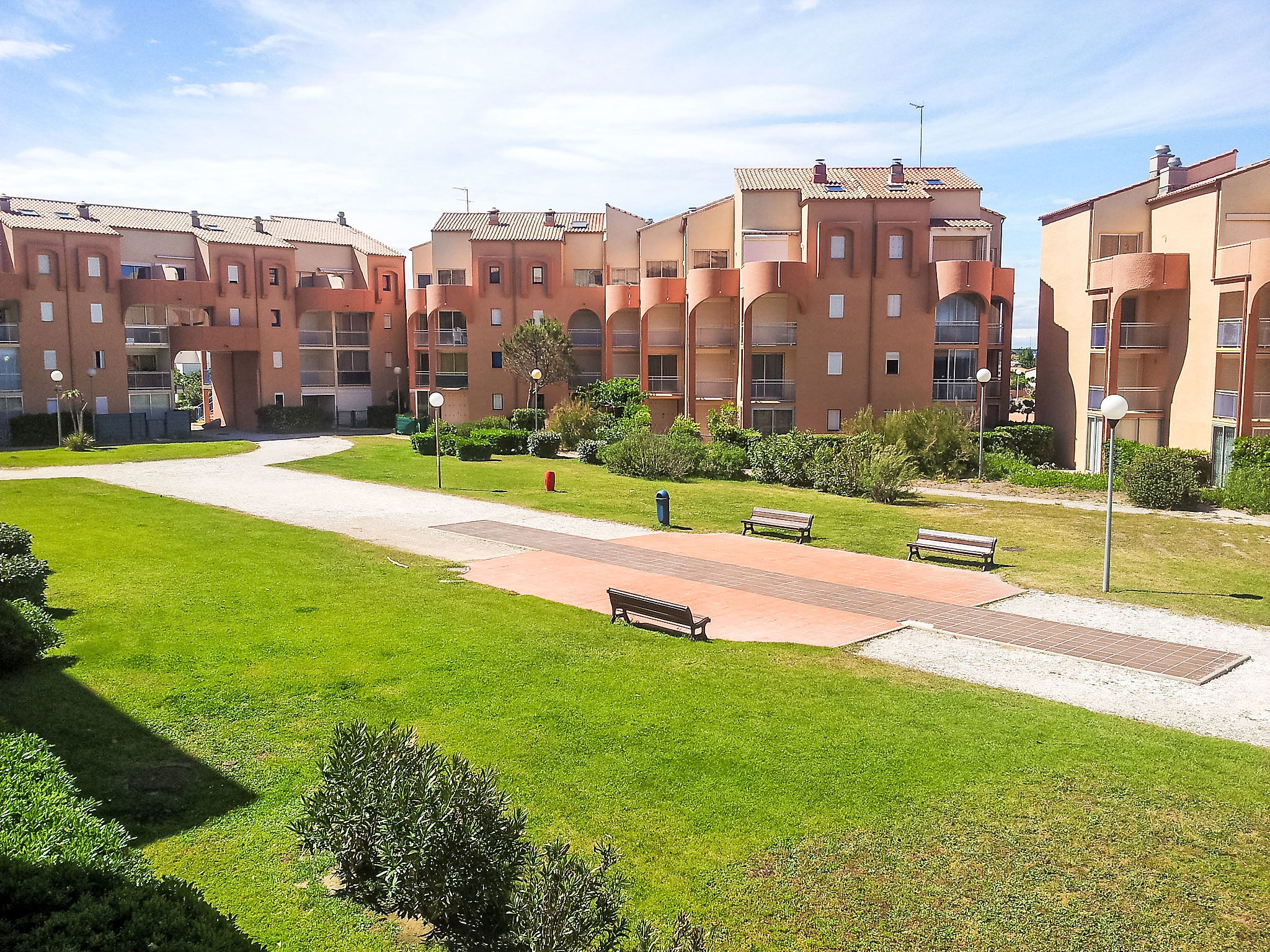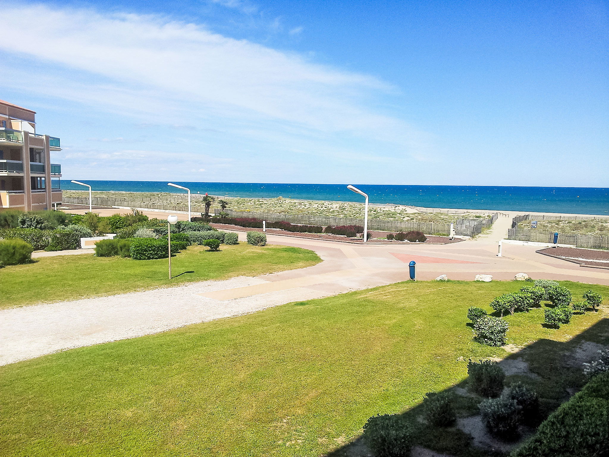 Résidence "Palm Beach", de 3 étages. 300 appartements dans la résidence. Dans le quartier de La Grande Plage, à 100 m de la mer, à 100 m de la plage. Parking public 150 m. Magasins, magasin d'alimentation, centre commercial, restaurant, bar, café, location de bicyclettes 150 m, arrêt de bus "Les Marines" 650 m, gare ferroviaire "de la Franqui" 15 km. Port plaisance 4 km. Attractions à proximité: Aqualand Port Leucate 2 km, Réserve Africaine de Sigean 41 km, site des dosses 4 km, téléski nautique 5 km. Les lacs connus sont facilement accessibles: Etang de Leucate ou salses 8 km, Lac de Villeneuve de la Raho 28 km. Région de randonnées: Sentier du guetteur 8 km, la forteresse de salses 15 km, Sentier du littoral Collioure 40 km. Veuillez noter: D’autres appartements sont également proposés à la location dans cette maison de vacances.