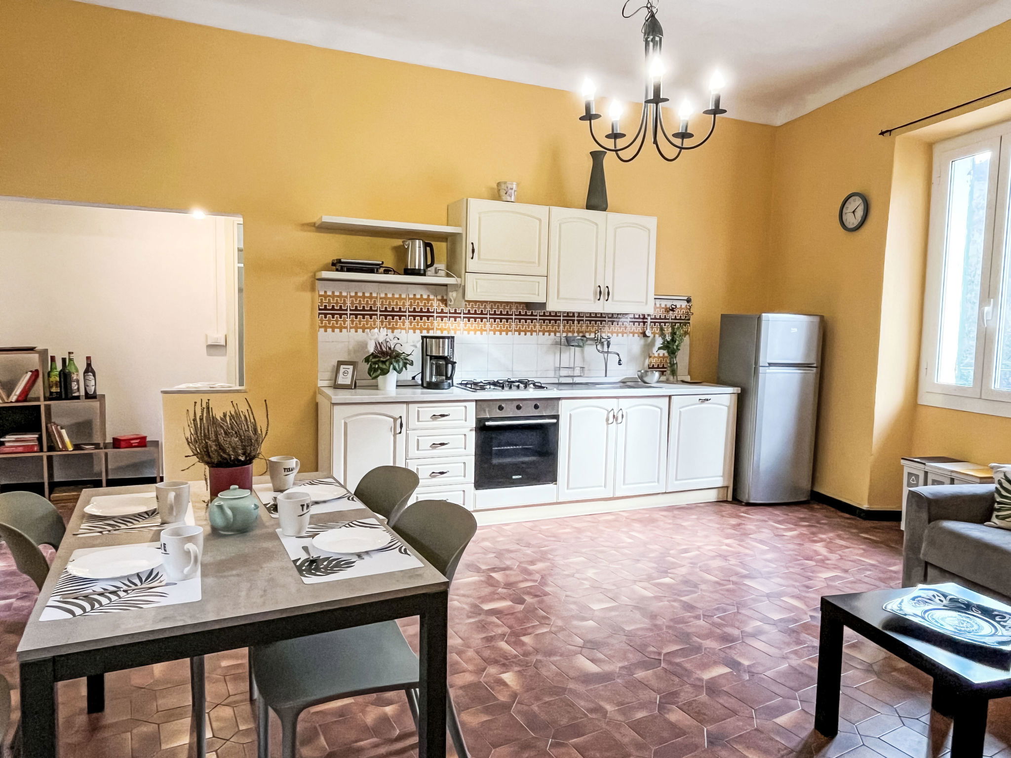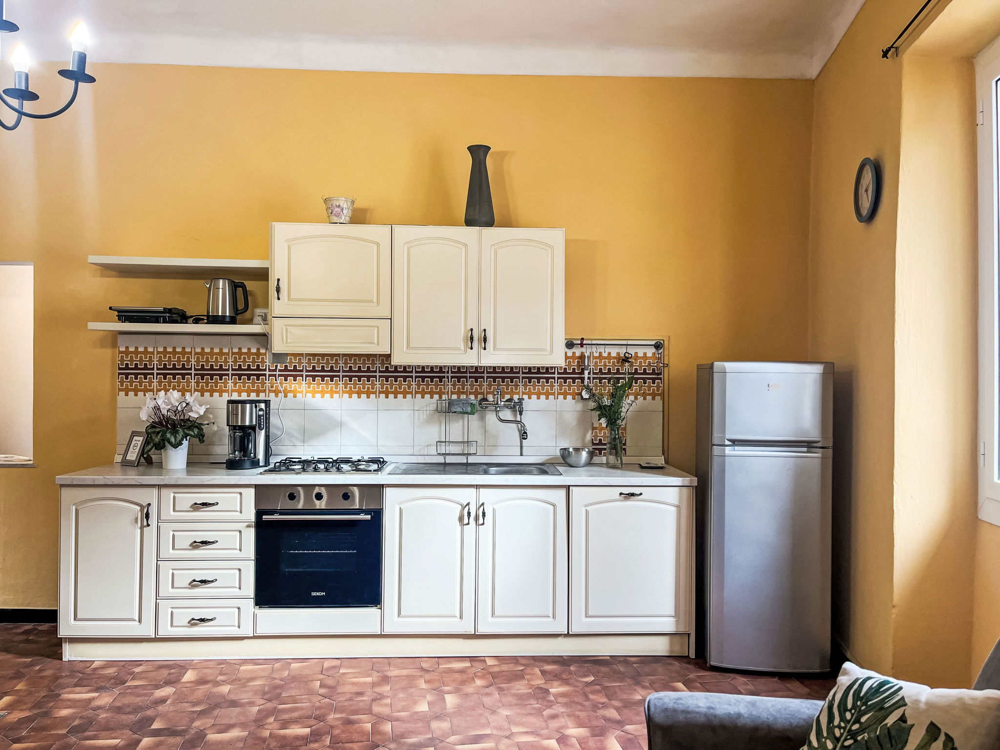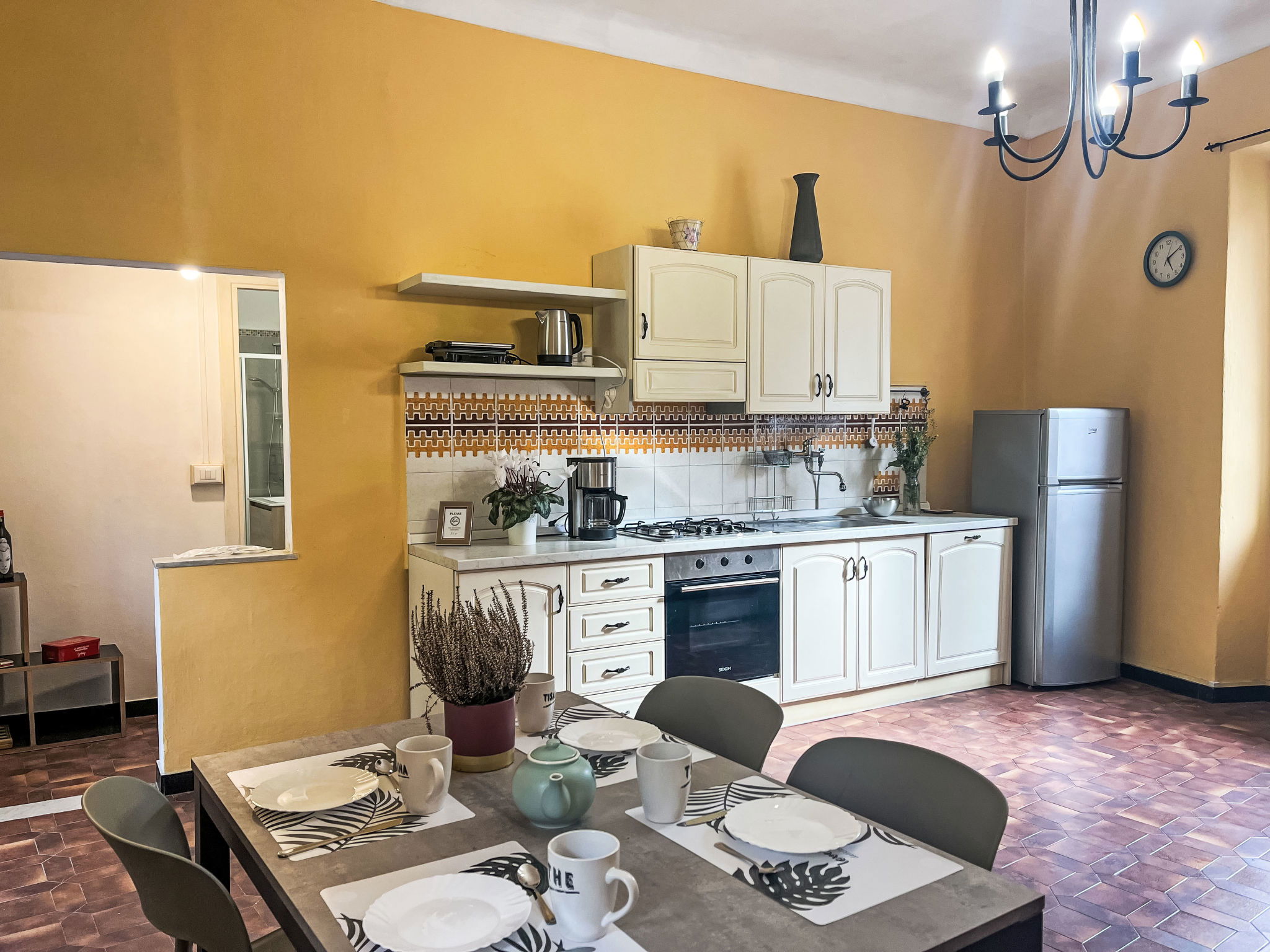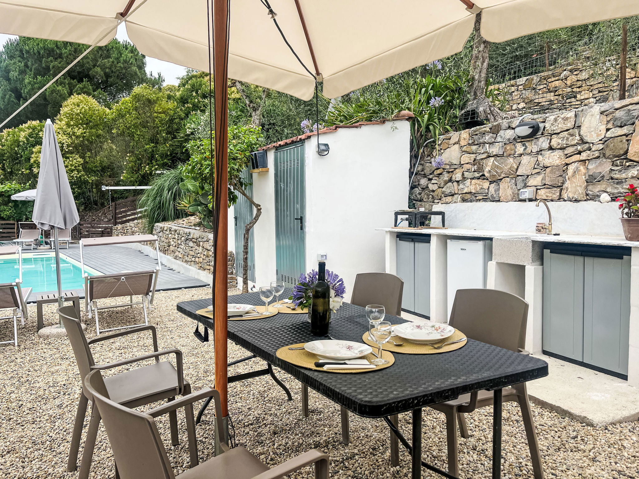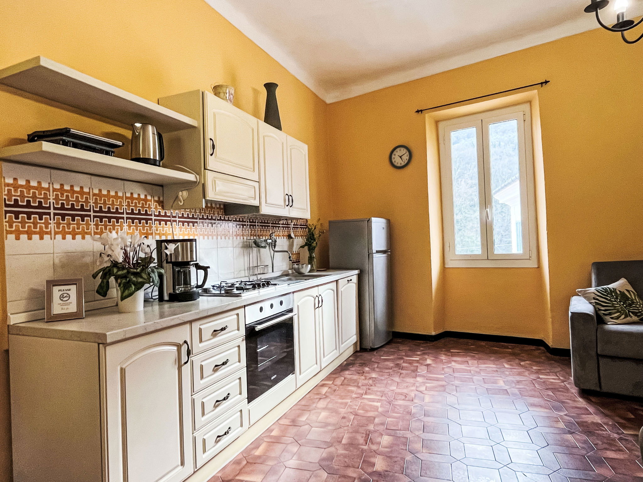 Beau/belle agrotourisme confortable "Borgo Olimpo", de 2 étages, renové en 2024, environné par les arbres et vignobles. 4 appartements dans la même entité. Au centre de Molini di Prelá, à 3 km du centre de Dolcedo, à 12 km du centre d'Imperia, situation tranquille, ensoleillée, à 12 km de la mer. En commun: terrain 1'000 m2, grand, beau jardin sur plusieurs niveaux (clôturé), pré, piscine protégée, cloturée (10 x 3 m, profondeur 140 - 140 cm, disponibilité saisonnière: 01.Mai. - 10.Oct.). Douche/WC dans l'espace piscine, douche extérieure, jardinet, terrasse, meubles de jardin. A usage privé: jardin naturel, verger. Infrastructures de la Maison: accès internet, Connexion WIFI, réduit pour bicyclettes. Cuisinier possible (en sus). 10 m sentier jusqu'à la maison. Parking public 20 m. Magasin d'alimentation 200 m, supermarché 1 km, centre commercial 12 km, restaurant, bar 20 m, boulangerie 200 m, café 20 m, location de bicyclettes 4 km, arrêt de bus 20 m, gare ferroviaire "Imperia Oneglia" 7 km, plage de sable "Borgo Marina Imperia" 15 km plage de graviers "Borgo Prino" 12 km, plage de galets "Borgo Foce Imperia" 12 km, baignade en lac "laghetti" 500 m. Chemins de randonnées pédestres depuis la maison 10 m, piste cyclable 12 km. Jeux pour enfants 50 m. Attractions à proximité: Valloria (160 bemalte Türen) 4 km, Porto Maurizio Altstadt Parasio 12 km, Bussana Vecchia Erdbebendorf 25 km. Région de randonnées: Monte Faudo. Veuillez noter: voiture recommandée.