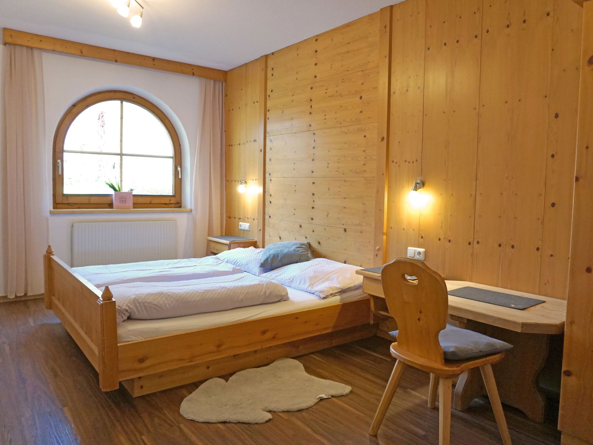 Appartement de 5 pièces 110 m2, sous-sol de plain-pied. Aménagement plaisant et avec beaucoup de bois: entrée. 3 chambres doubles. Chambre avec passage avec 1 lit double et TV (satellite) (écran plat). Séjour/salle à manger avec TV (satellite) (écran plat). Coin cuisine (4 plaques de cuisson, four, lave-vaisselle, cafetière électrique, Capsules pour machine à café (Tassimo)). Douche, douche/WC, WC séparé. Jardin. Meubles de terrasse. Belle vue sur les montagnes et les alentours. A disposition: Internet (Connexion WIFI, gratuit). Maximum 2 animaux/ chiens autorisés.