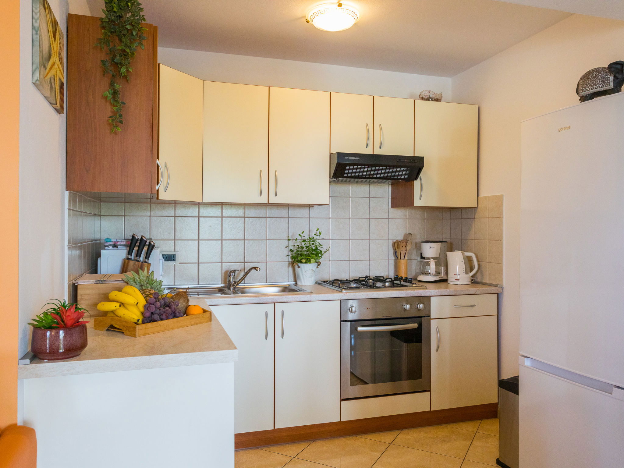 "Čančar", Appartement de 3 pièces 95 m2, au rez-de-chaussée. Séjour/salle à manger avec 1 divan-lit double (160 cm, longueur 200 cm), TV (satellite) et air-conditionné. Sortie sur la terrasse. 1 chambre avec 2 lits (90 cm, longueur 200 cm). 1 chambre avec 1 lit double (2 x 90 cm, longueur 200 cm). Cuisine ouverte (1 plaque de cuisson, four, lave-vaisselle, grille-pain, bouilloire électrique, micro-ondes, congélateur, cafetière électrique). Douche/WC. Chauffage, chauffage au gaz. Terrasse. Meubles de terrasse. A disposition: lave-linge, fer à repasser. Internet (Connexion WIFI, gratuit). Veuillez noter: maison non-fumeur. Maximum 1 animal/ chien autorisé.