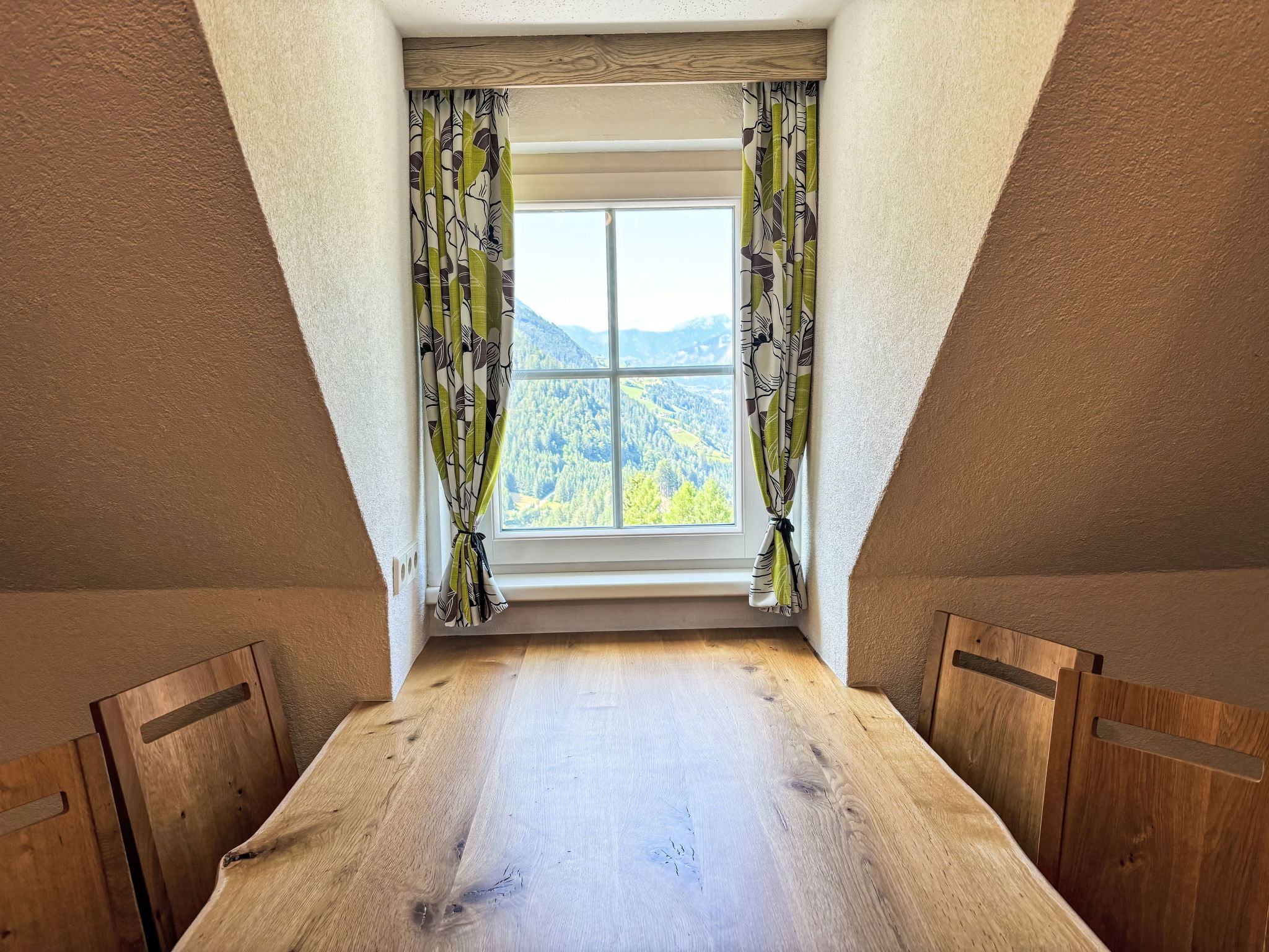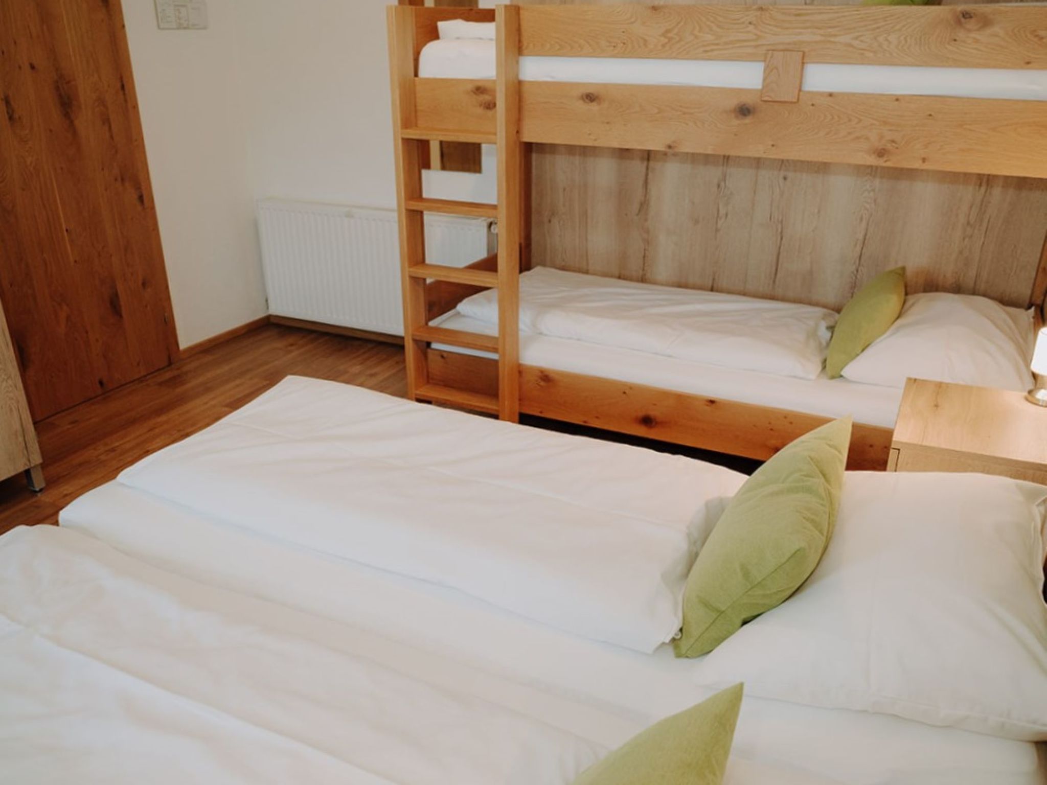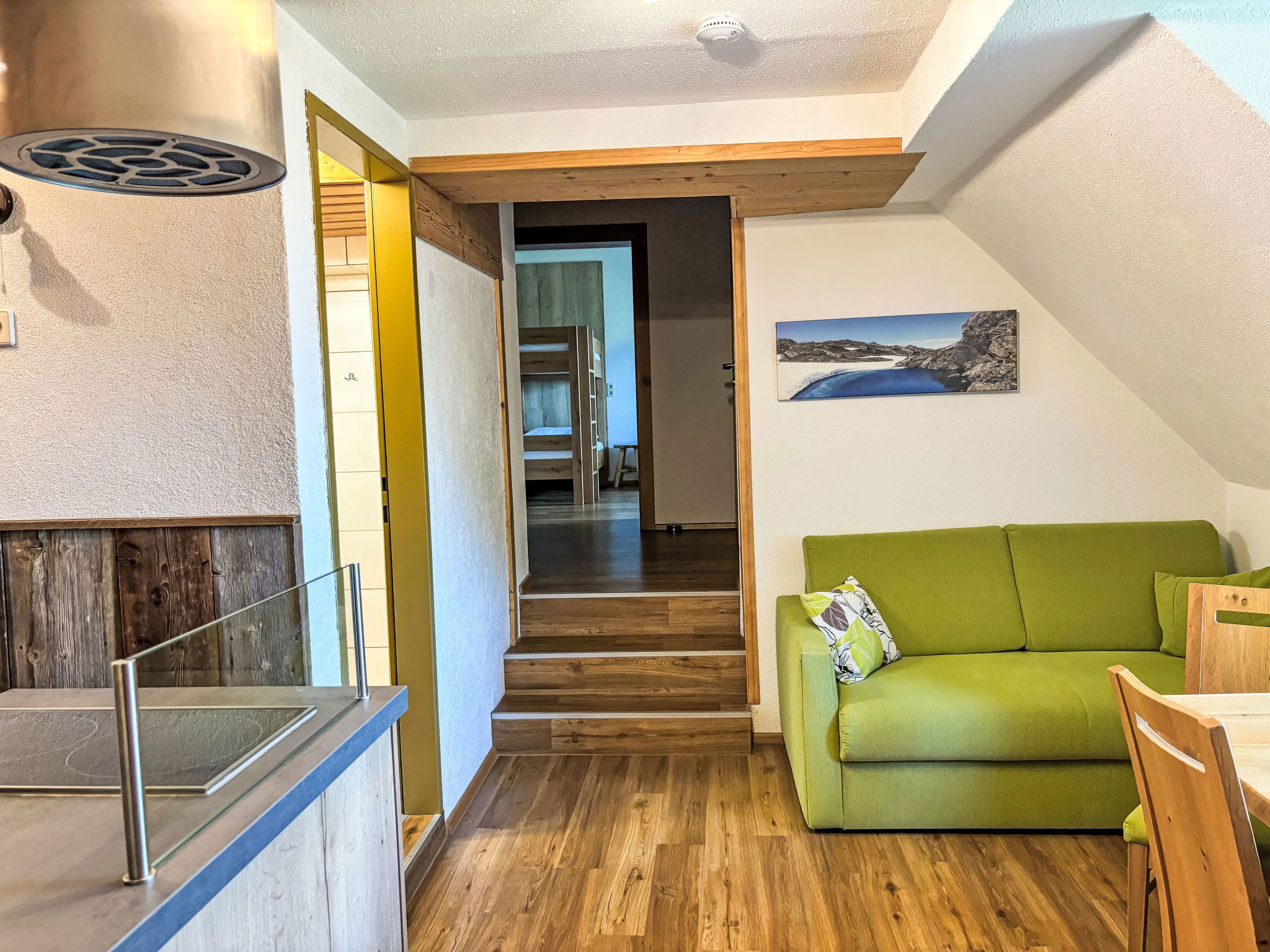 "Donnersbach", Appartement de 3 pièces 65 m2 au 2ème étage. Logement idéal pour 4 adultes + 2 enfants. Partiellement mansardé, aménagement plaisant: séjour/salle à manger avec table pour les repas, TV (satellite) et chaînes de TV internationales (écran plat). 1 chambre avec 1 divan-lit, 1 lit double, TV (satellite) et chaînes de TV internationales (écran plat). 1 chambre avec 1 lit et 1 x 2 lits superposés. Petite coin cuisine (four, 2 plaques vitrocéramiques, grille-pain, bouilloire électrique, micro-ondes, cafetière électrique). Douche, 2 WC séparés, double vasque. Chauffage. Sol en parquet. A disposition: Internet (Connexion WIFI, gratuit). Veuillez noter: logement non-fumeur. Maximum 1 animal/ chien autorisé.