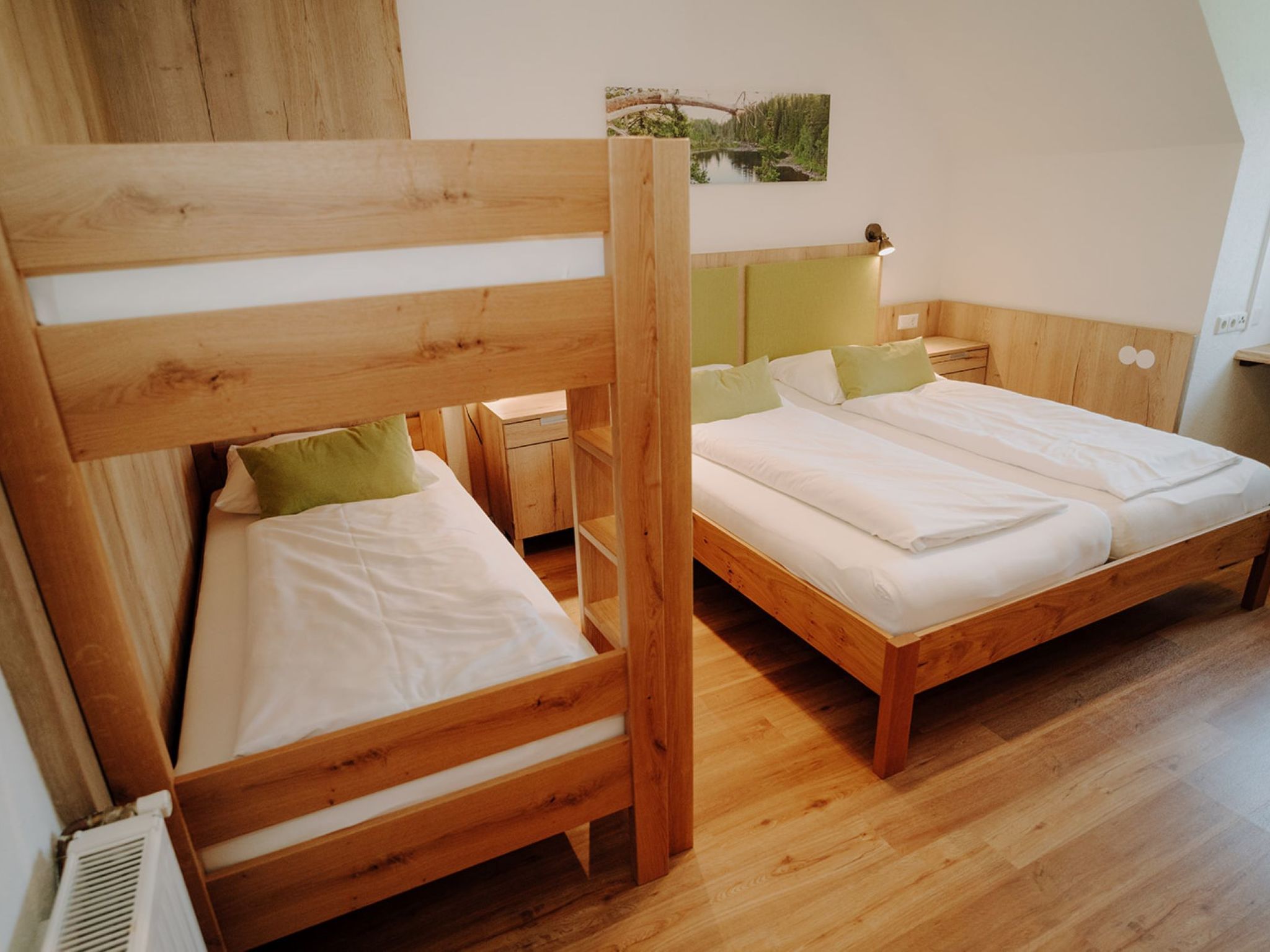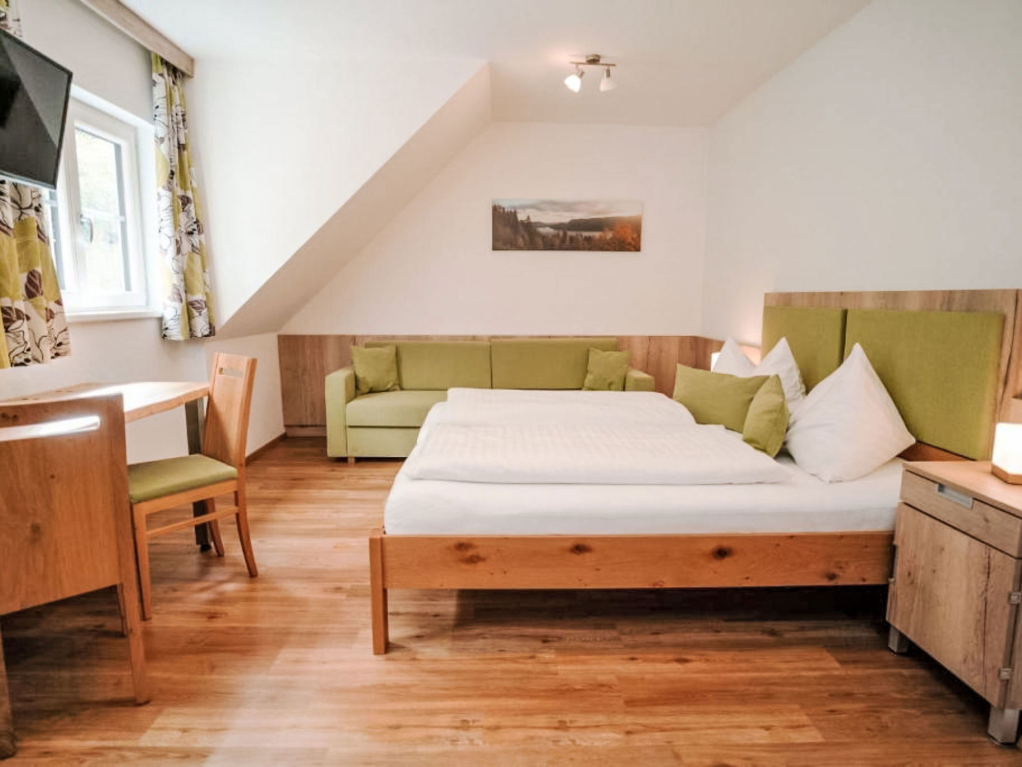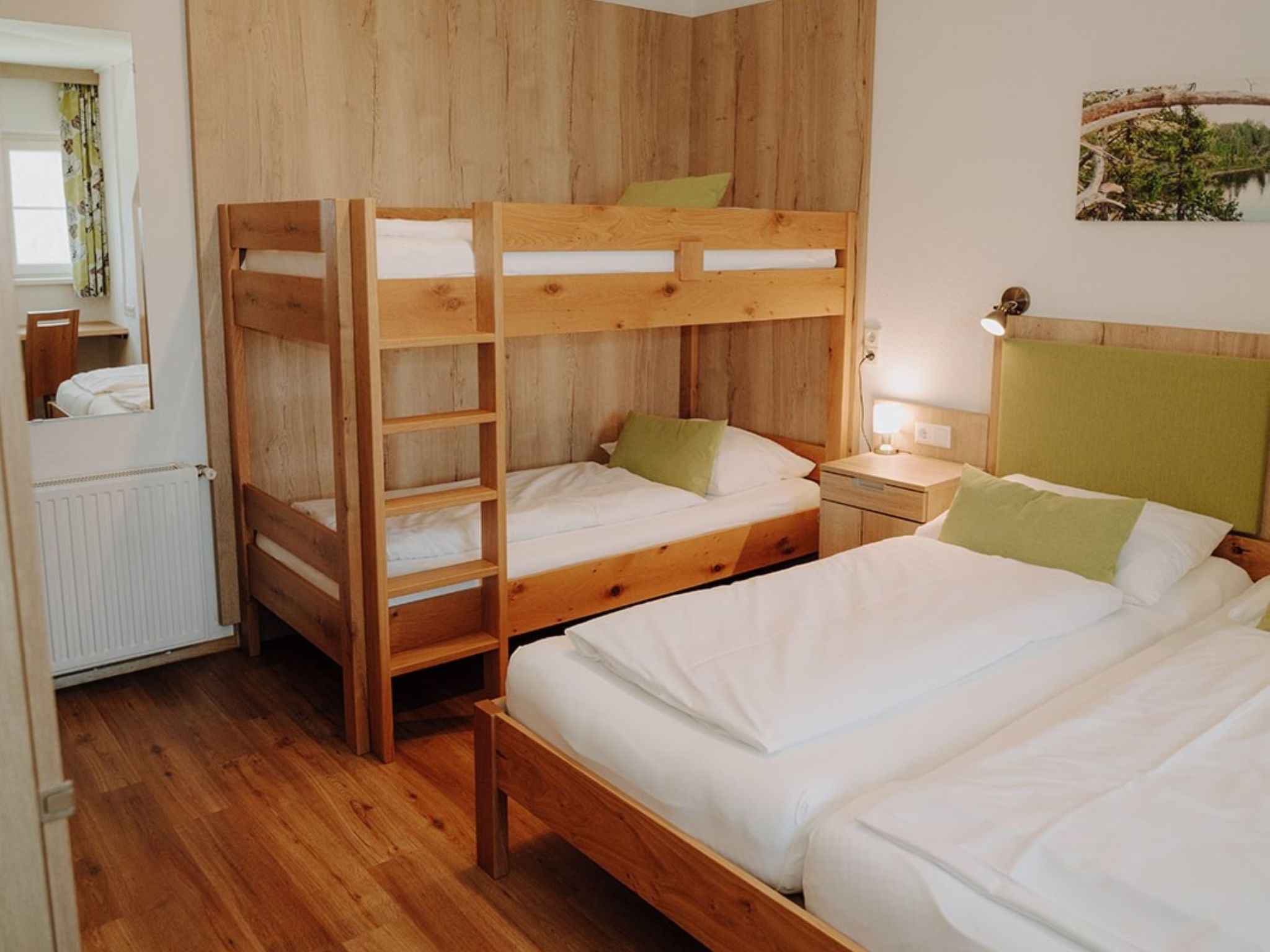 "Donnersbach", Appartement de 3 pièces 65 m2 au 2ème étage. Logement idéal pour 4 adultes + 2 enfants. Partiellement mansardé, aménagement plaisant: séjour/salle à manger avec table pour les repas, TV (satellite) et chaînes de TV internationales (écran plat). 1 chambre avec 1 divan-lit, 1 lit double, TV (satellite) et chaînes de TV internationales (écran plat). 1 chambre avec 1 lit et 1 x 2 lits superposés. Petite coin cuisine (four, 2 plaques vitrocéramiques, grille-pain, bouilloire électrique, micro-ondes, cafetière électrique). Douche, 2 WC séparés, double vasque. Chauffage. Sol en parquet. A disposition: Internet (Connexion WIFI, gratuit). Veuillez noter: logement non-fumeur. Maximum 1 animal/ chien autorisé.