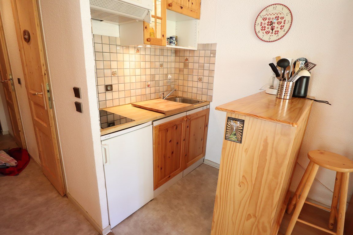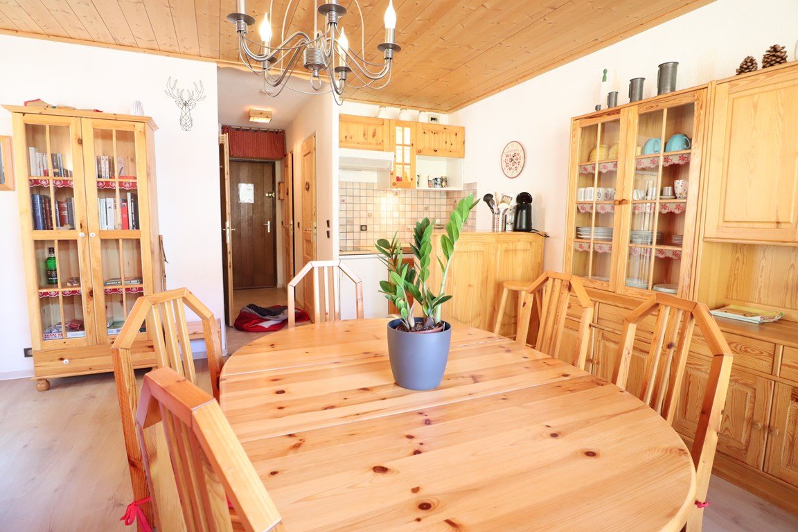 Très bel appartement style montagne de 37 m² avec 2 chambrettes avec fenêtres (1 lit 2 places + 2lits 1 place superposés) et 2 magnifiques balcons S/E et N/E - séjour très spacieux avec double orientation (canapé gigogne) - kitchenette avec lave-vaisselle - wc - salle de bains