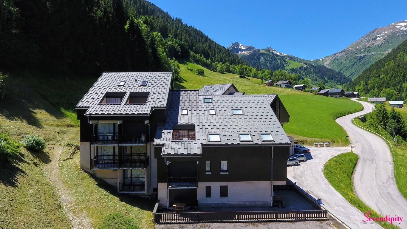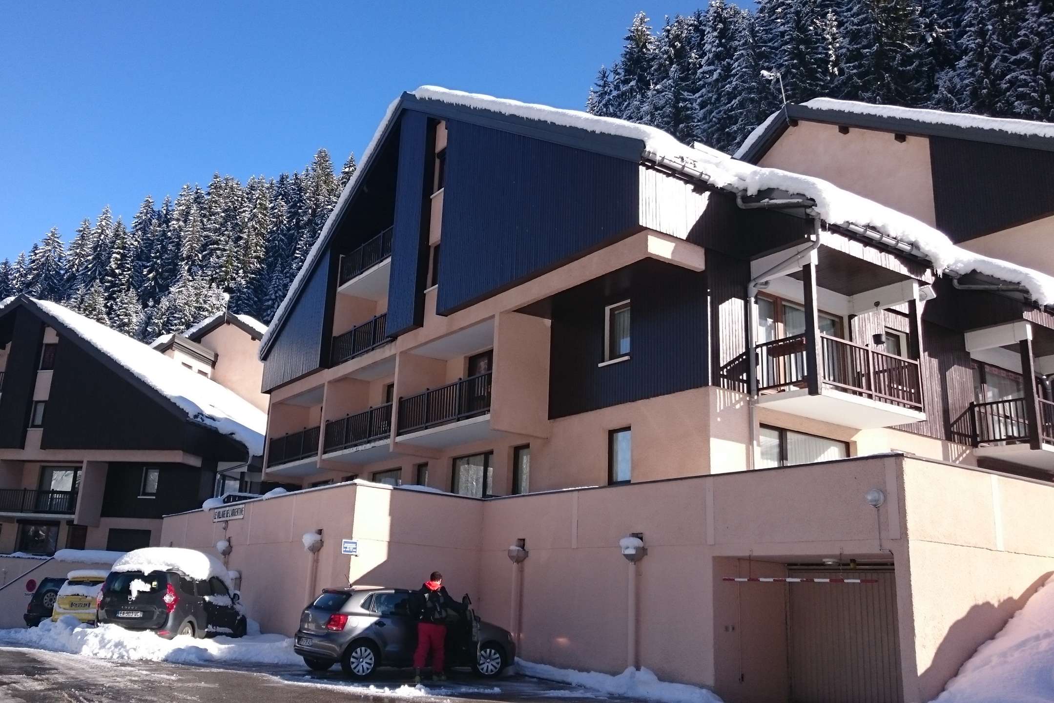 Situé au 3ème étage d'une résidence très nature de 30 appartements, à 10 min du village et à 600m des remontées mécaniques du Grand Mont, à 200m des pistes pour les bons ou moyens skieurs.