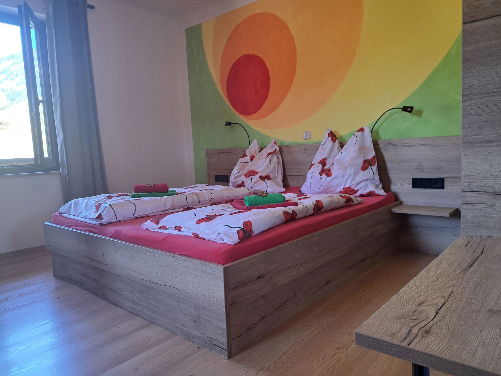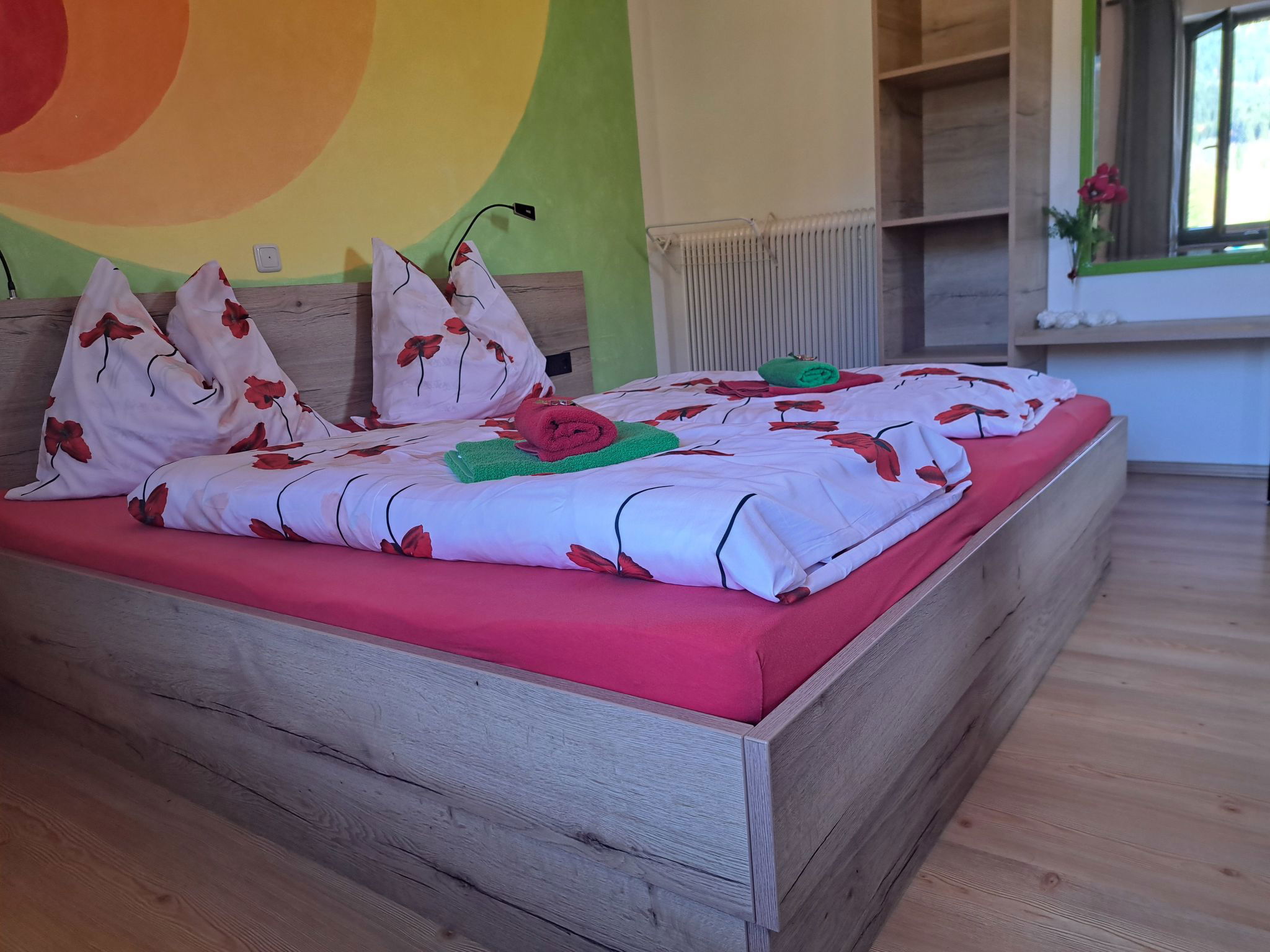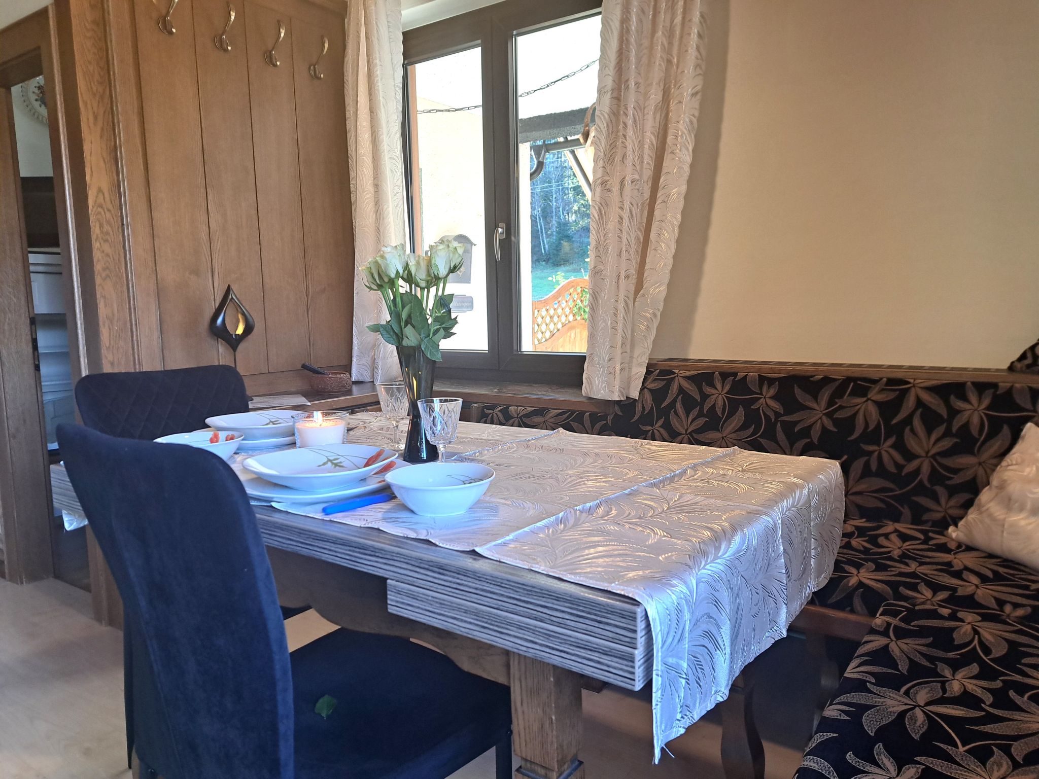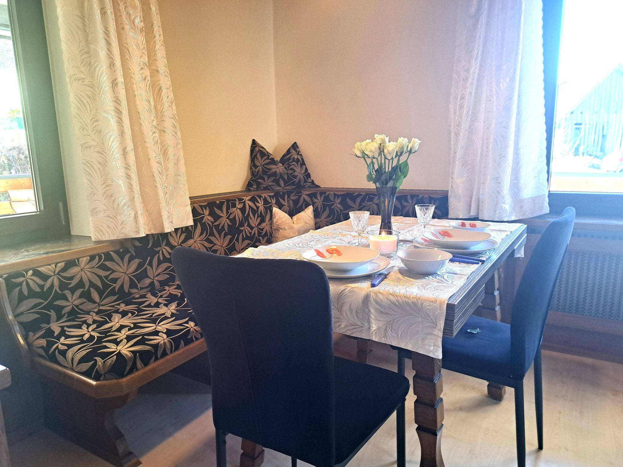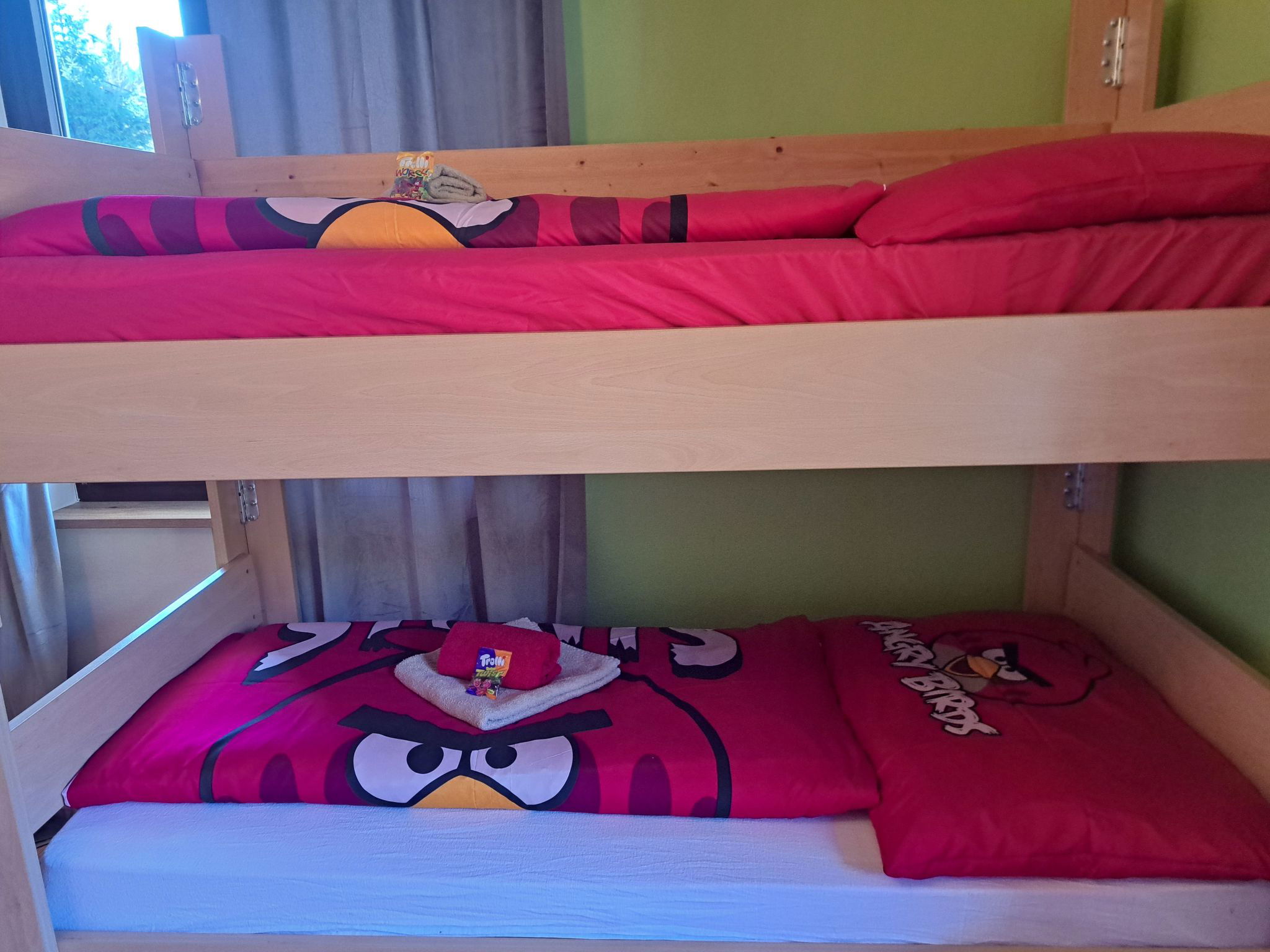"Appartement 2", Appartement de 3 pièces 70 m2 au 1er étage. Aménagement plaisant: entrée. 1 chambre double. 1 chambre avec 1 x 2 lits superposés, 1 lit double. Grande cuisine (four, lave-vaisselle, 4 plaques vitrocéramiques, grille-pain, bouilloire électrique, micro-ondes, congélateur, cafetière électrique) avec coin repas. Douche, WC séparé. Chauffage. Sol en parquet. Grande terrasse. Veuillez noter: maison non-fumeur. Maximum 2 animaux/ chiens autorisés. // Reg. Nr.: 502100001702020