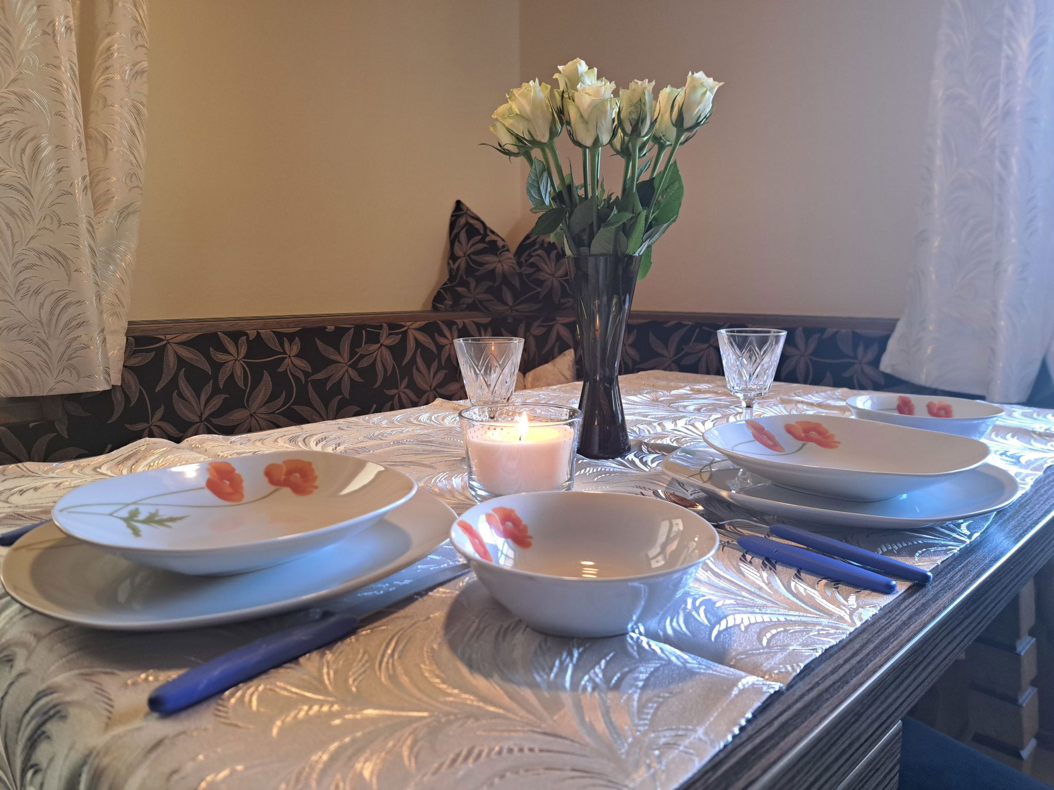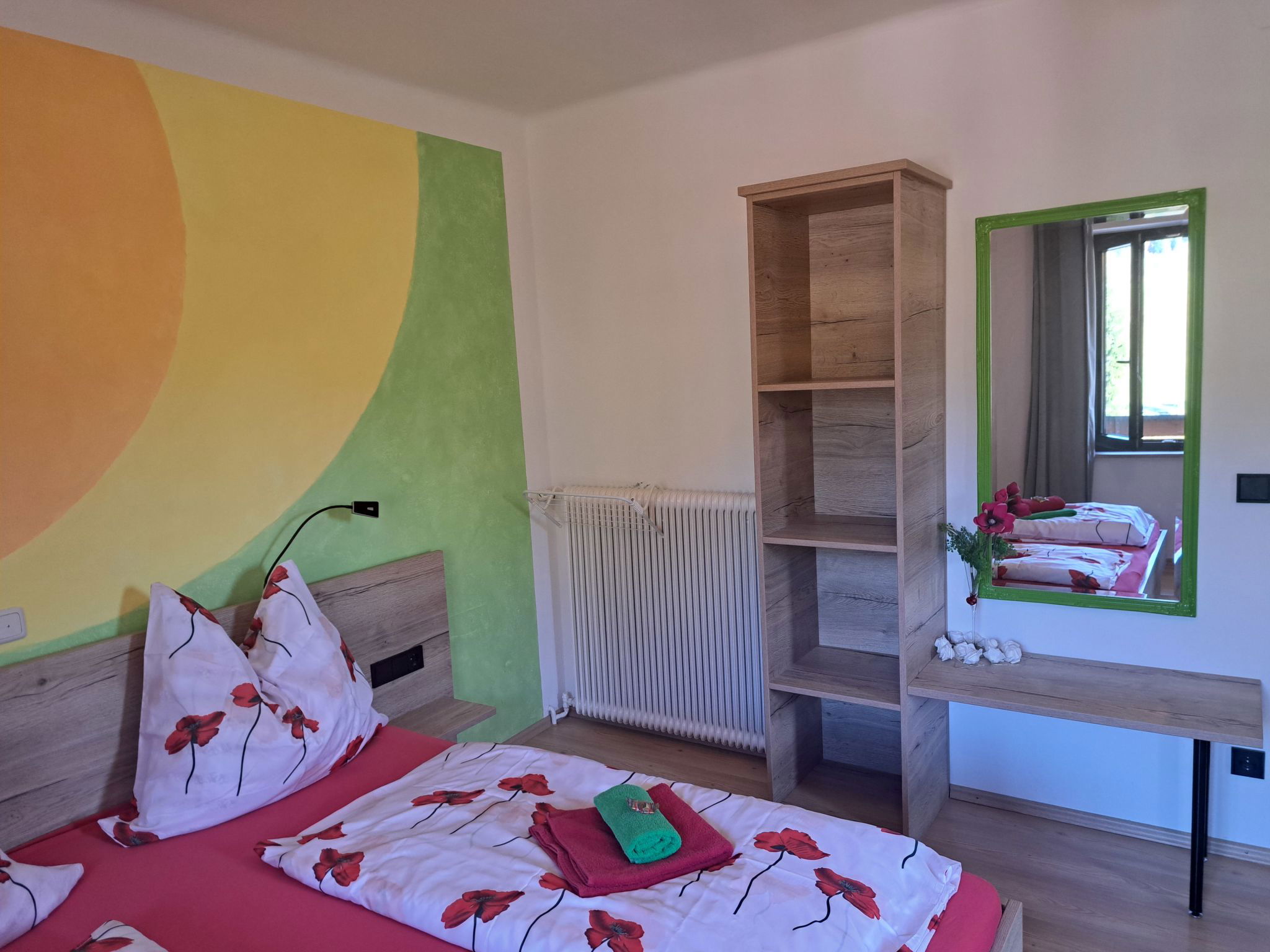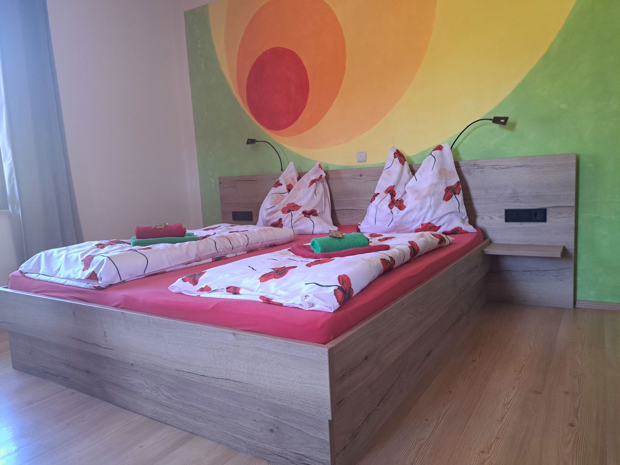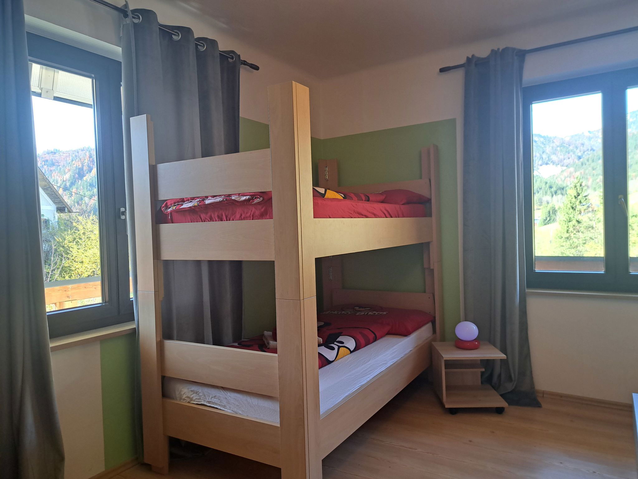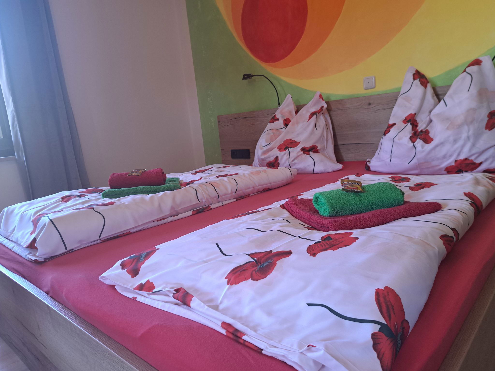 "Appartement 2", Appartement de 3 pièces 70 m2 au 1er étage. Aménagement plaisant: entrée. 1 chambre double. 1 chambre avec 1 x 2 lits superposés, 1 lit double. Grande cuisine (four, lave-vaisselle, 4 plaques vitrocéramiques, grille-pain, bouilloire électrique, micro-ondes, congélateur, cafetière électrique) avec coin repas. Douche, WC séparé. Chauffage. Sol en parquet. Grande terrasse. Veuillez noter: maison non-fumeur. Maximum 2 animaux/ chiens autorisés. // Reg. Nr.: 502100001702020