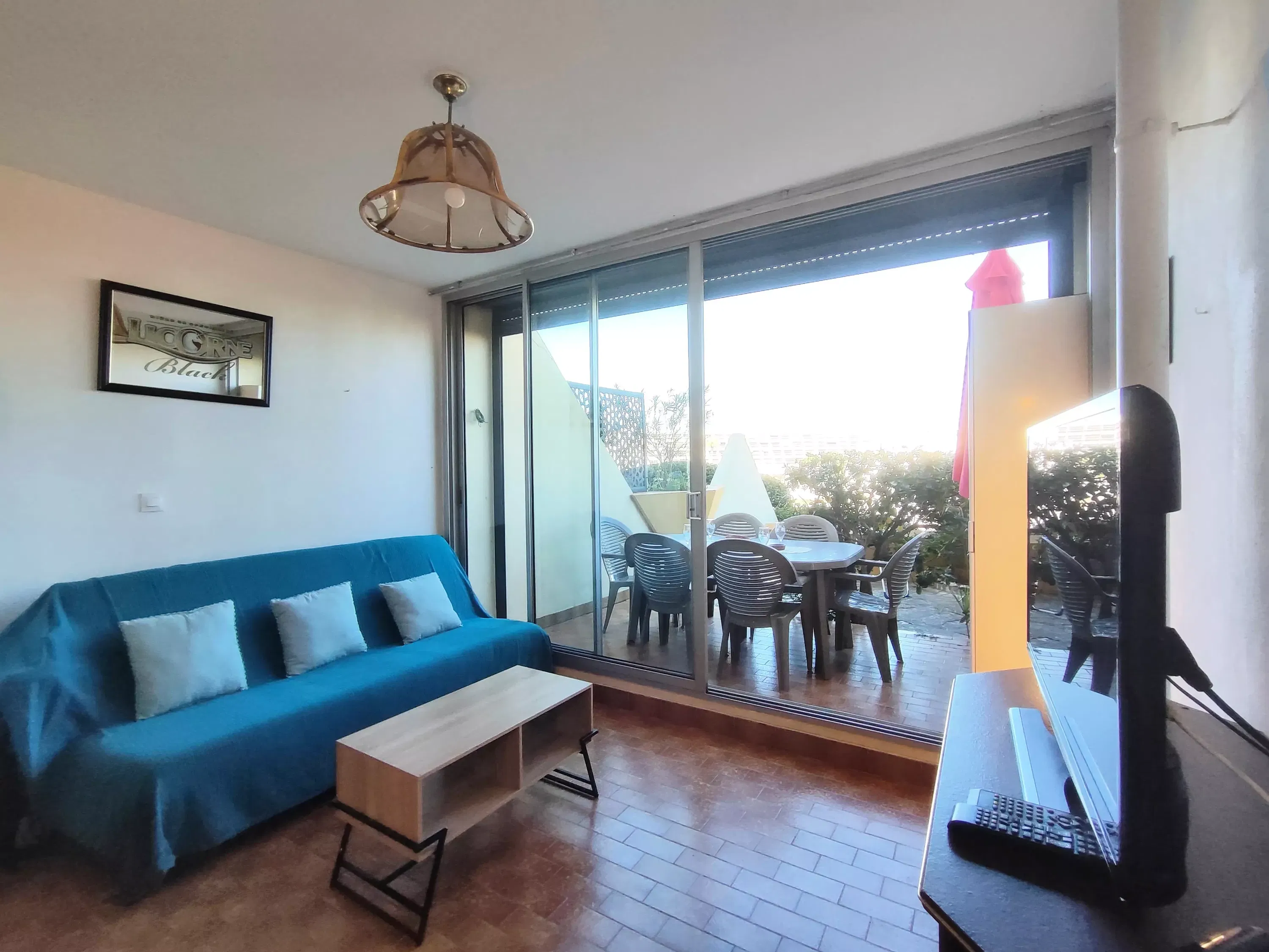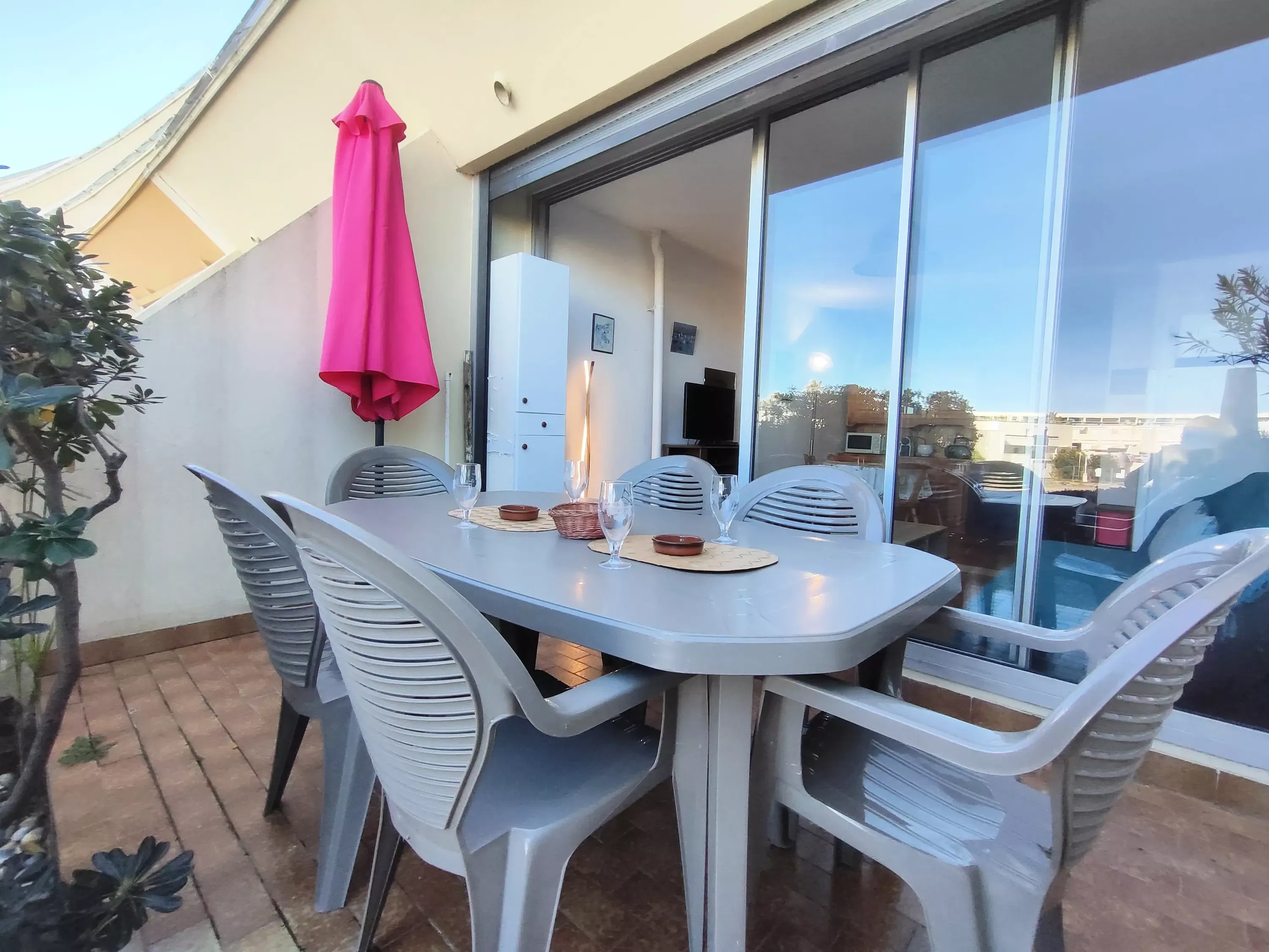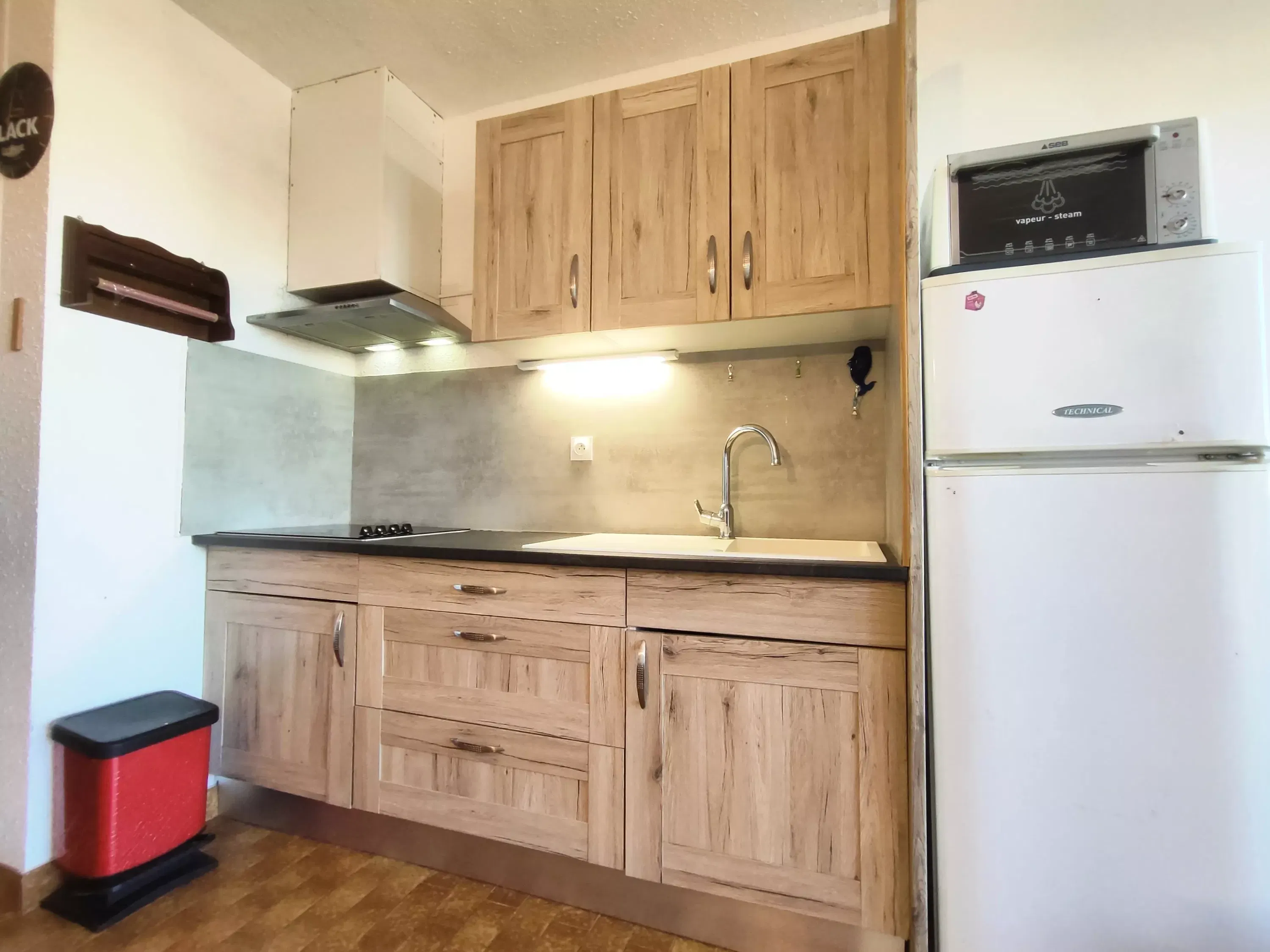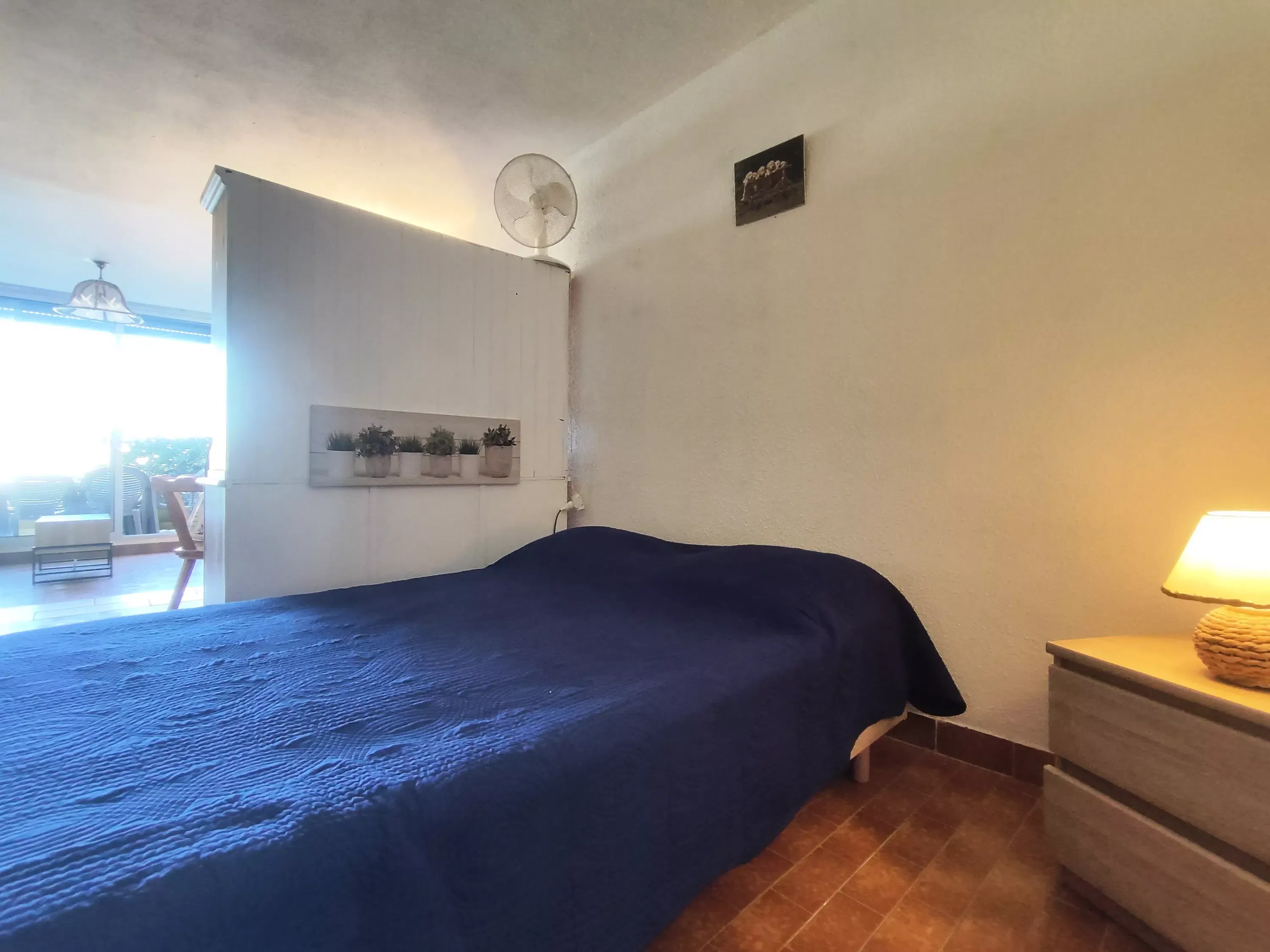 Grand Studio 2 personnes , état d'usage, situé à Héliopolis Entrée E, au 1er étage avec ascenseur, côté intérieur. Séjour avec un lit en 140 cm. Coin cuisine avec grand réfrigérateur, micro-ondes, cafetière Nespresso et télévision. Salle d'eau et WC séparés. Terrasse. Pas de parking.