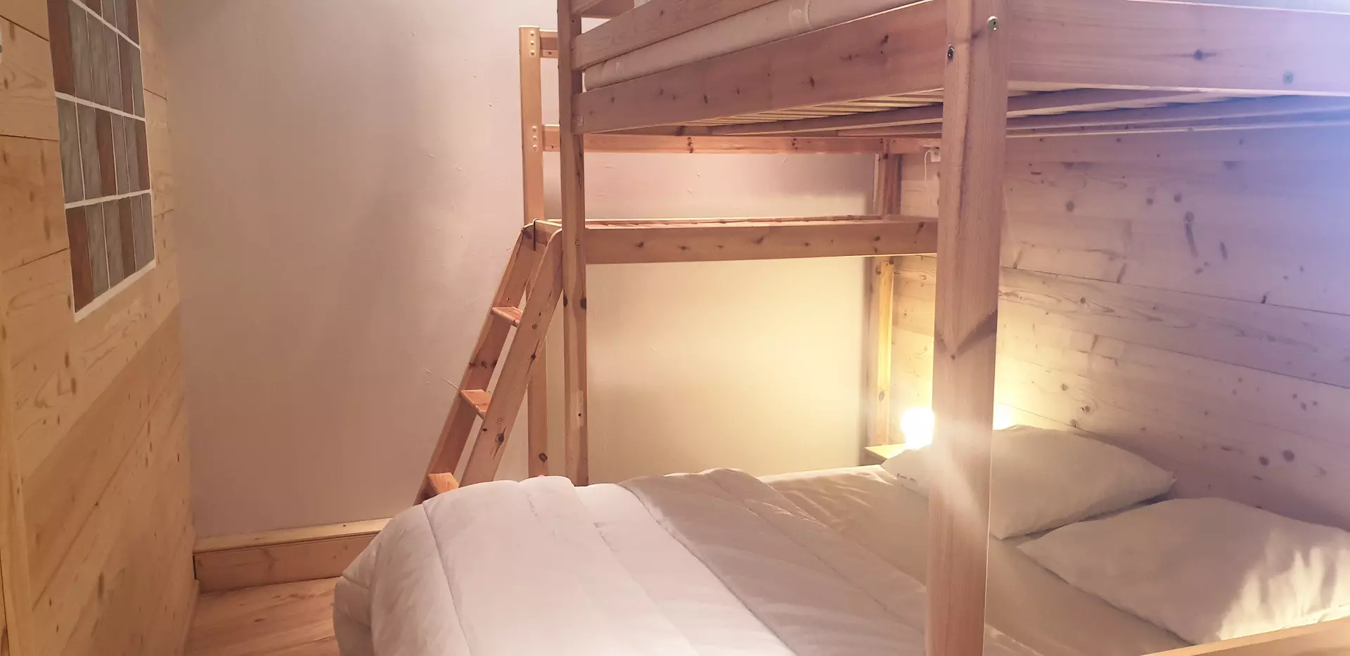 Pour votre confort, une chambre avec 1 lit double 160cm et un lit double en hauteur , un coin nuit avec fenêtre avec 1 lit simple superposé et 1 lit double (140cm) sont à votre disposition.