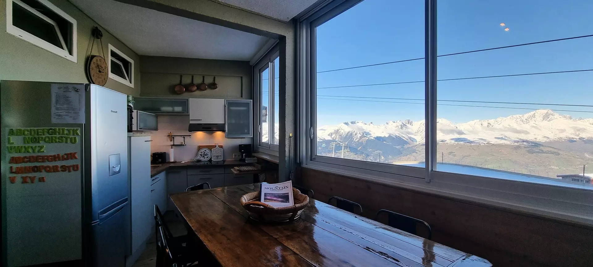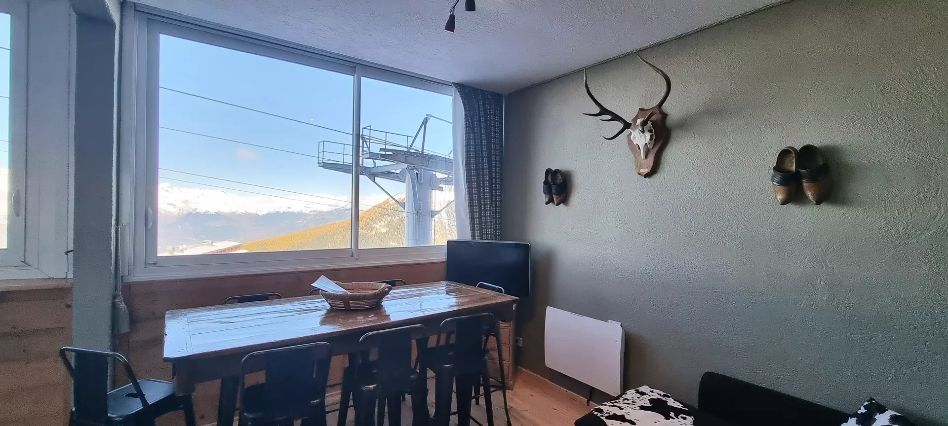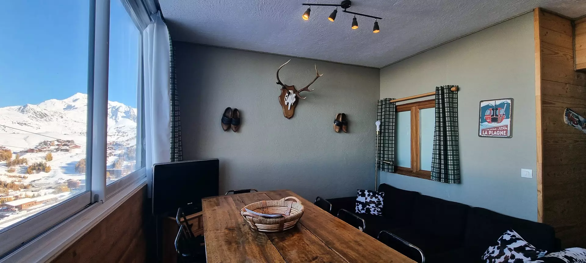 Ce très bel appartement entièrement rénové se trouve au niveau "F" du Paquebot des Neiges. Il est accessible par l'entrée Choucas. Il bénéficie d'une magnifique vue sur le Mont-Blanc. L'appartement ne dispose pas de balcon.