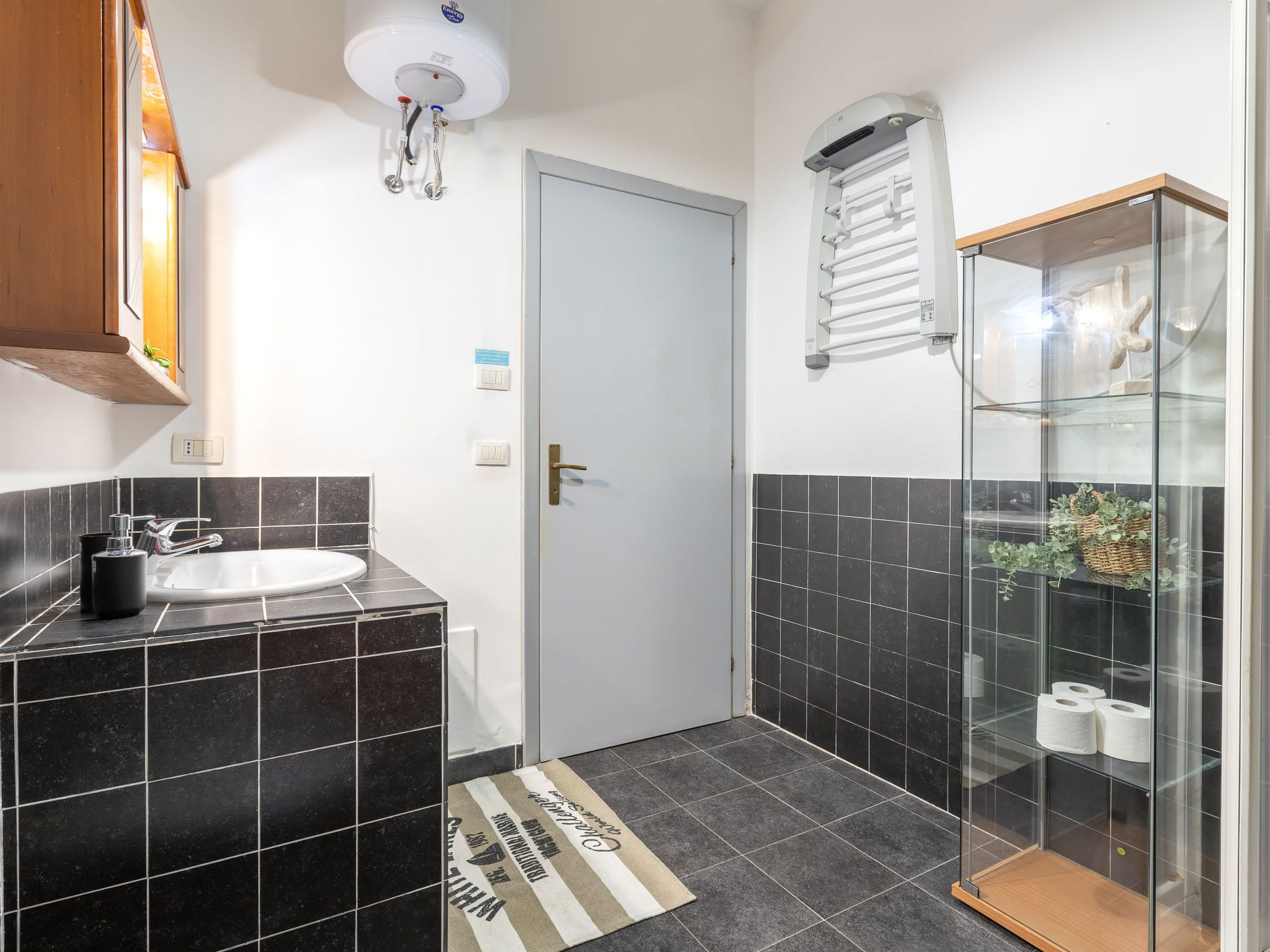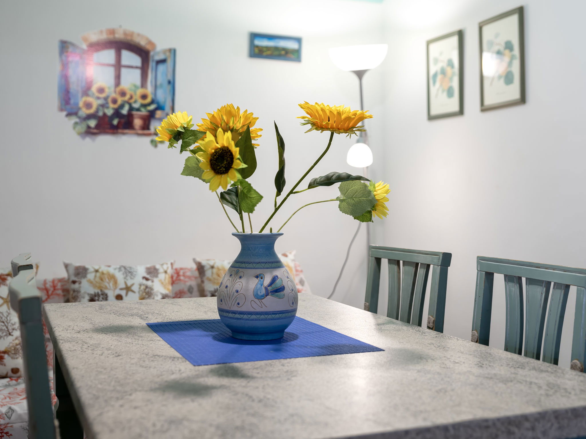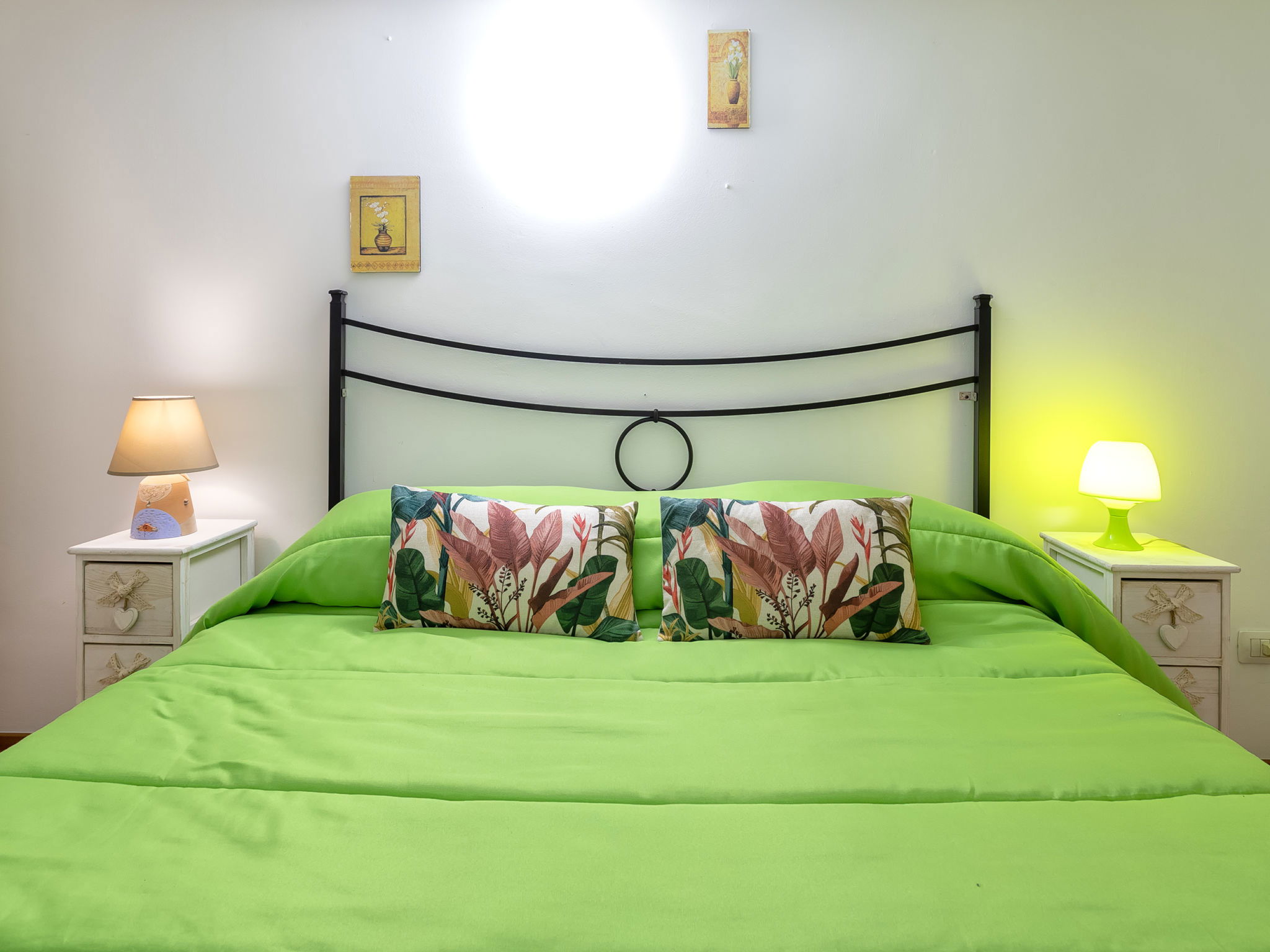 "Il Girasole", Appartement de 4 pièces 75 m2 sur 2 niveaux, au rez-de-chaussée. Aménagement agréable et plaisant: séjour/salle à manger avec TV et écran plat. Sortie sur le balcon. Bureau, sans fenêtre. Cuisine (mini-four, 3 plaques à induction, grille-pain, bouilloire électrique, micro-ondes). Douche/bidet/WC. Air-conditionné, chauffe eau. À l'étage supérieur: 2 chambres doubles, chaque chambre avec: ventilateur. Mobilier de balcon. A disposition: lave-linge, fer à repasser. Place de parking (en sus). Adapté(e) aux familles. Maximum 1 animal/ chien de petite taille autorisé. IT090003C2000T9647