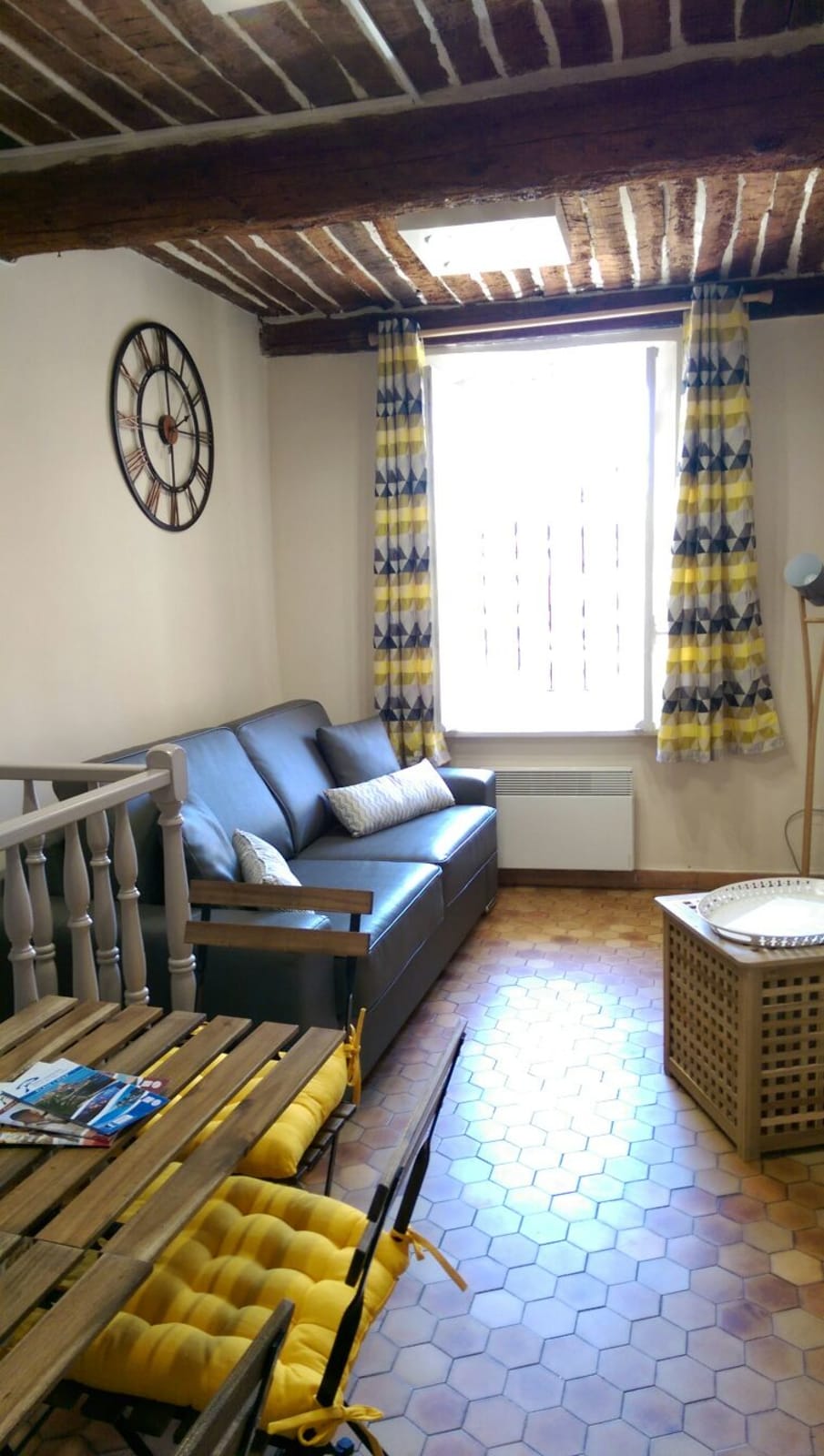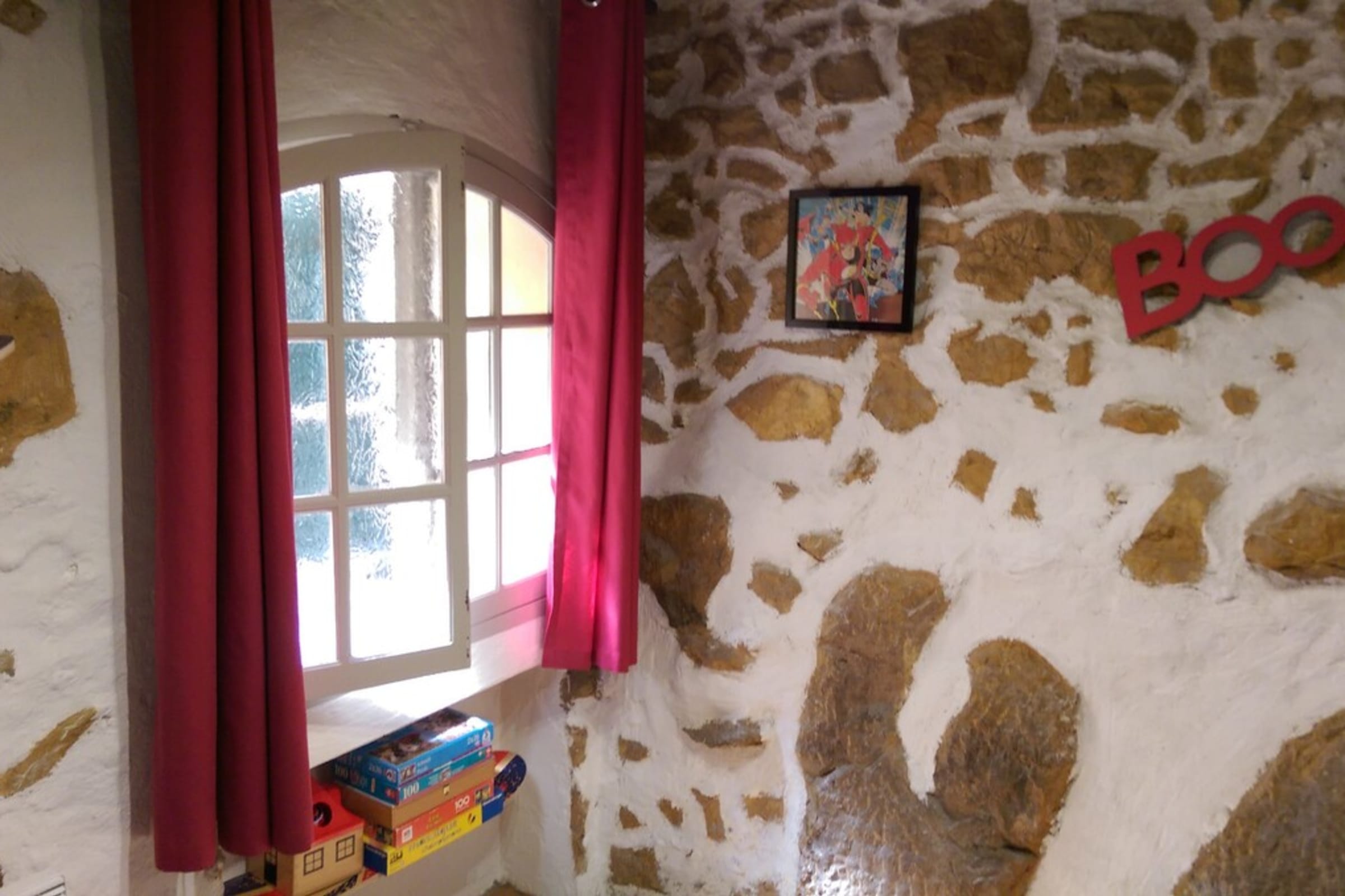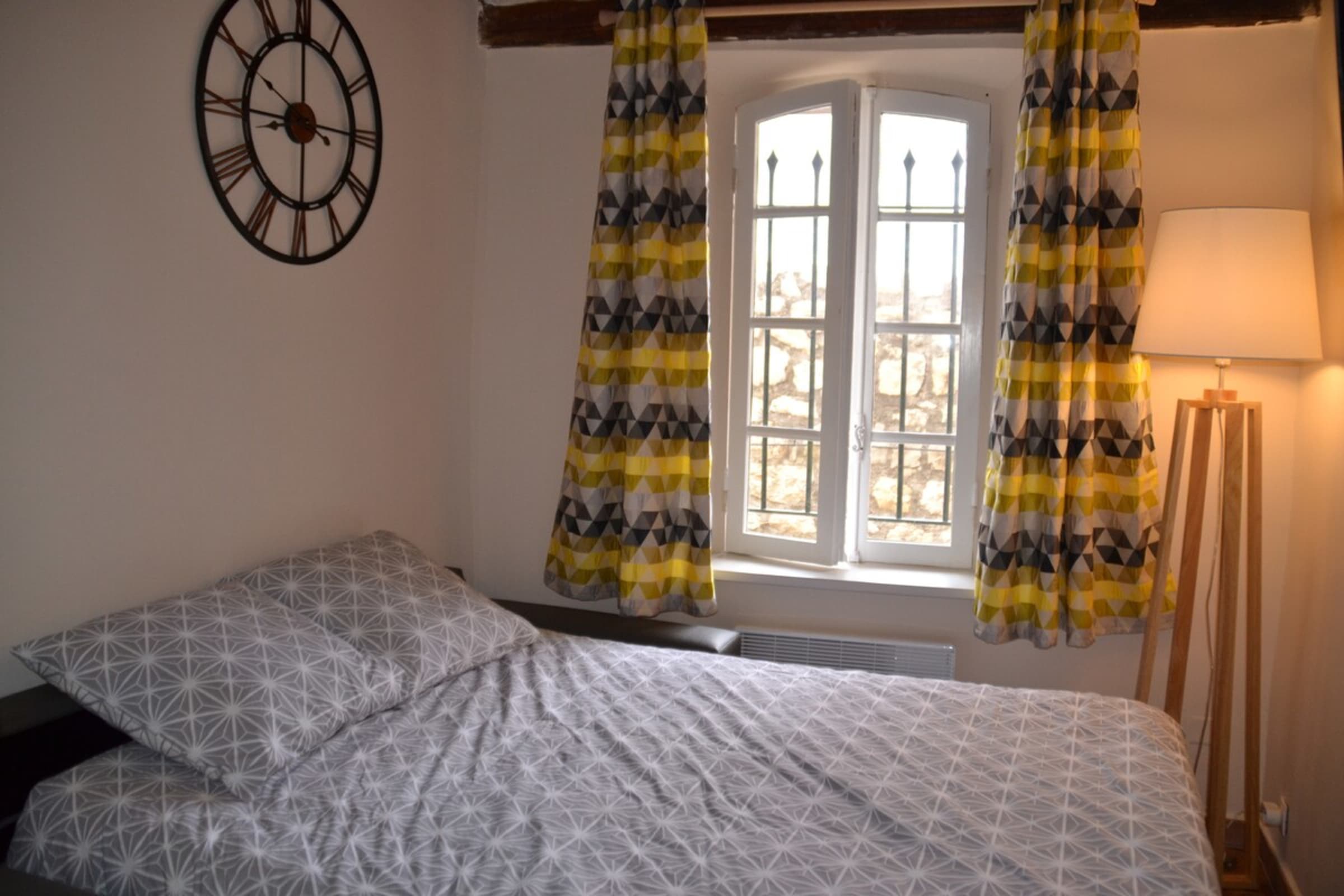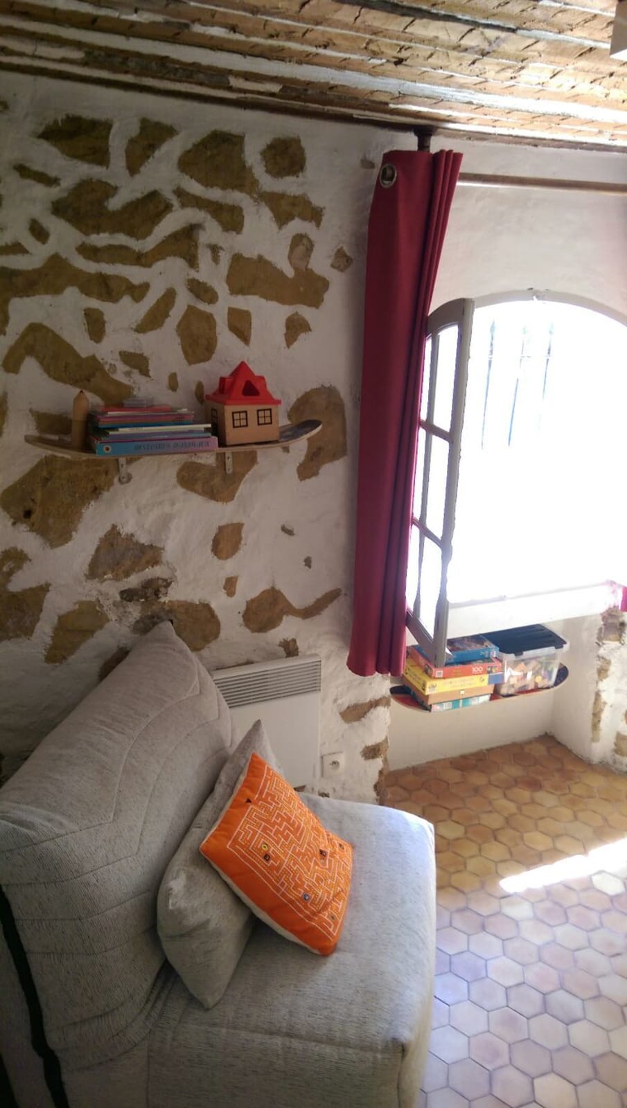 L'appartement se trouve au rez de chaussée d'un ancien immeuble du Vieil Antibes. Les fenêtres donnent sur un mur des remparts. Il n'y a donc pas de vue, en revanche l'emplacement est idéal.
