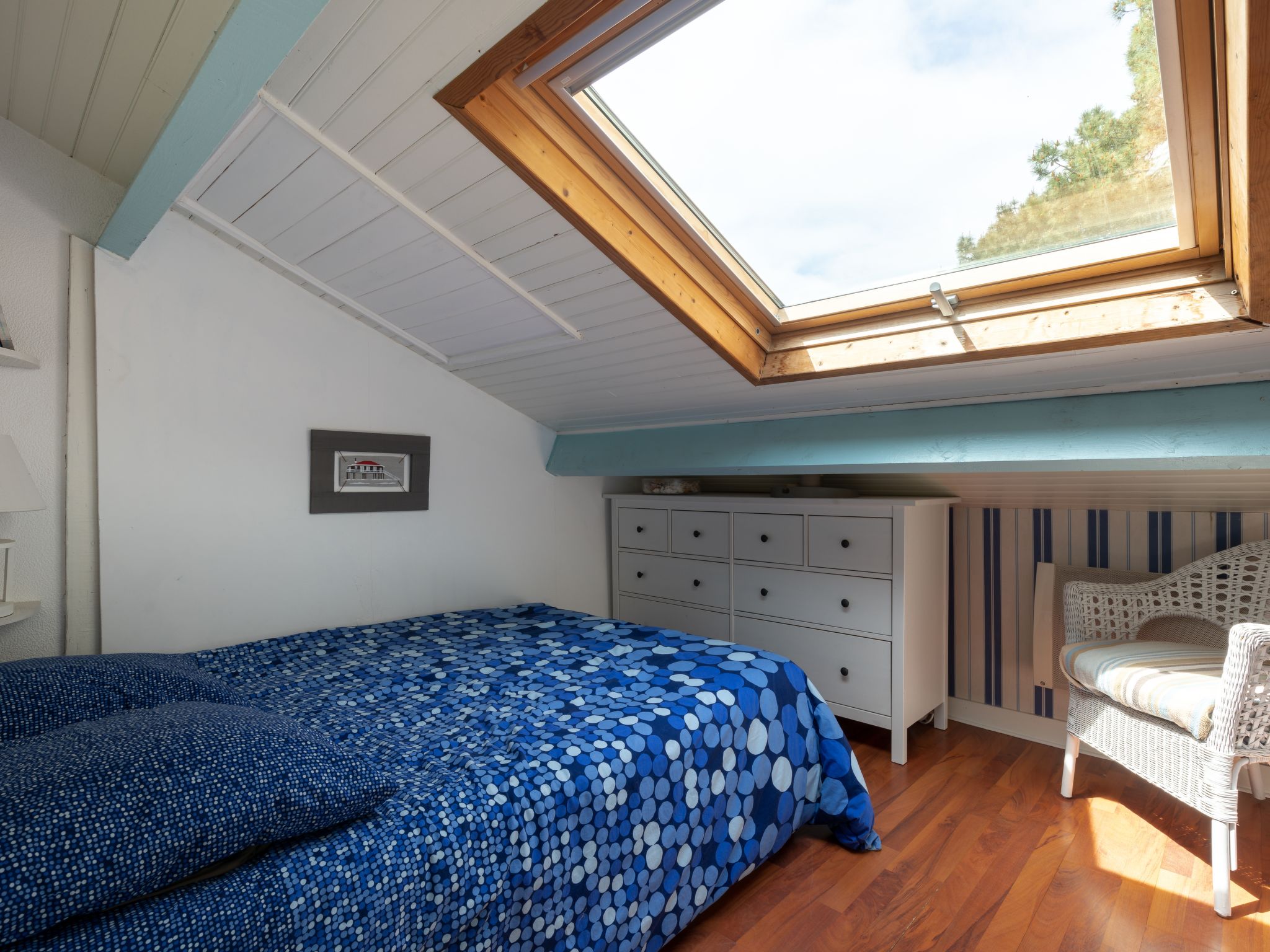 Appartement de sous les toits 2 pièces 35 m2 au 2ème étage. Aménagement fonctionnel et confortable: séjour/salle à manger avec 1 divan-lit double (1 x 140 cm, longueur 190 cm), TV (écran plat). Sortie sur la terrasse. 1 chambre mansardée hauteur plafond 96 - 205 cm avec 1 grand-lit (1 x 140 cm, longueur 190 cm). Cuisine ouverte (four, 4 plaques vitrocéramiques, grille-pain, bouilloire électrique, micro-ondes, congélateur, cafetière électrique, Capsules pour machine à café (Nespresso) (NON INCLUSES)). Salle de bains, WC séparé. Chauffage électrique. Terrasse 25 m2, situation nord et situation est. Meubles de terrasse, barbecue électrique, chaises longues (1). A disposition: lave-linge, fer à repasser, sèche-cheveux. Internet (Connexion WIFI, gratuit). Veuillez noter: logement côté rue. Maximum 1 animal/ chien autorisé. Détecteur de fumée. Veuillez noter qu'il y a 37 marches pour accéder à l'appartement. Annonce d'un particulier (art 155, IV du CGI). 33009002146D8