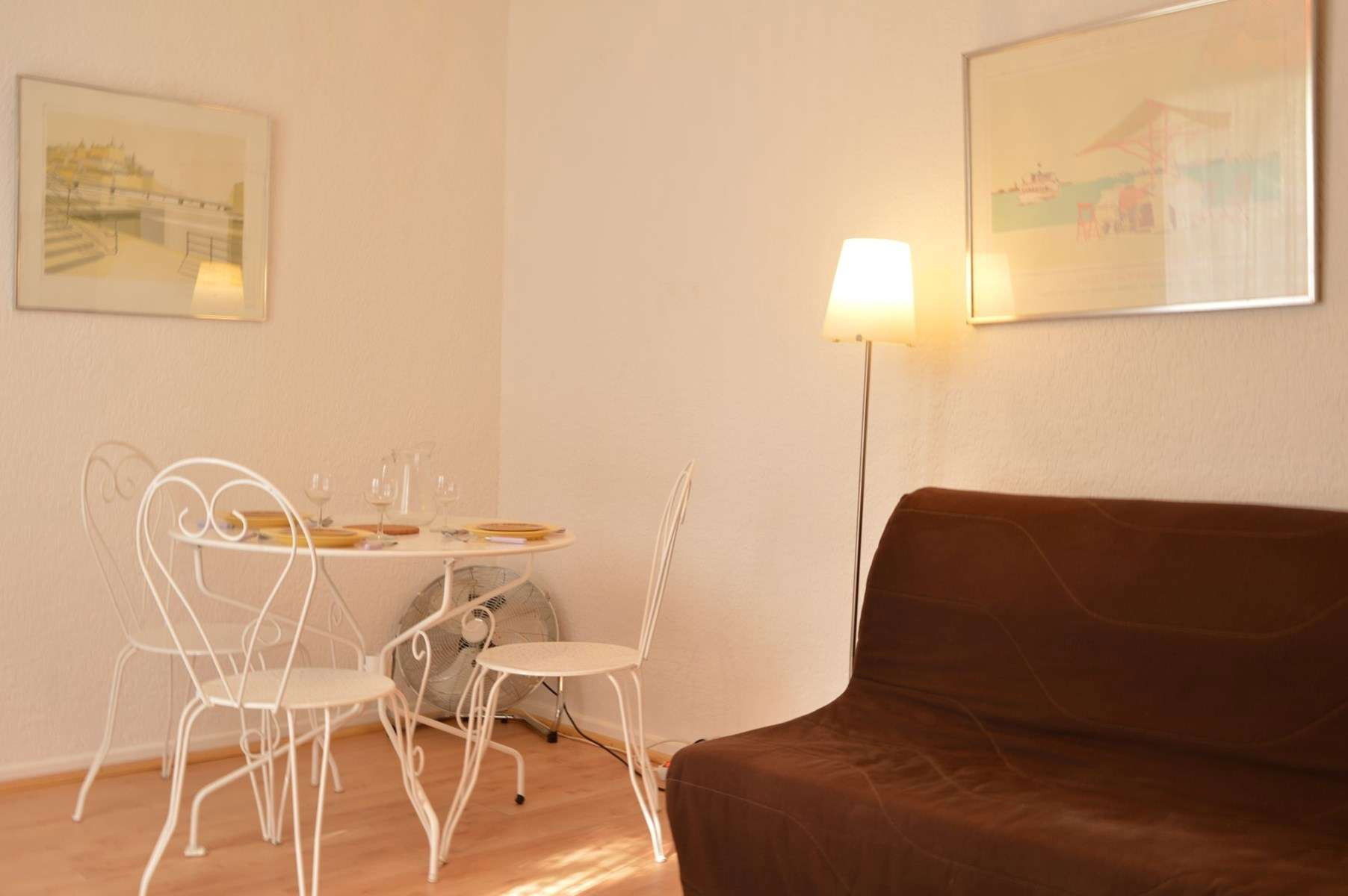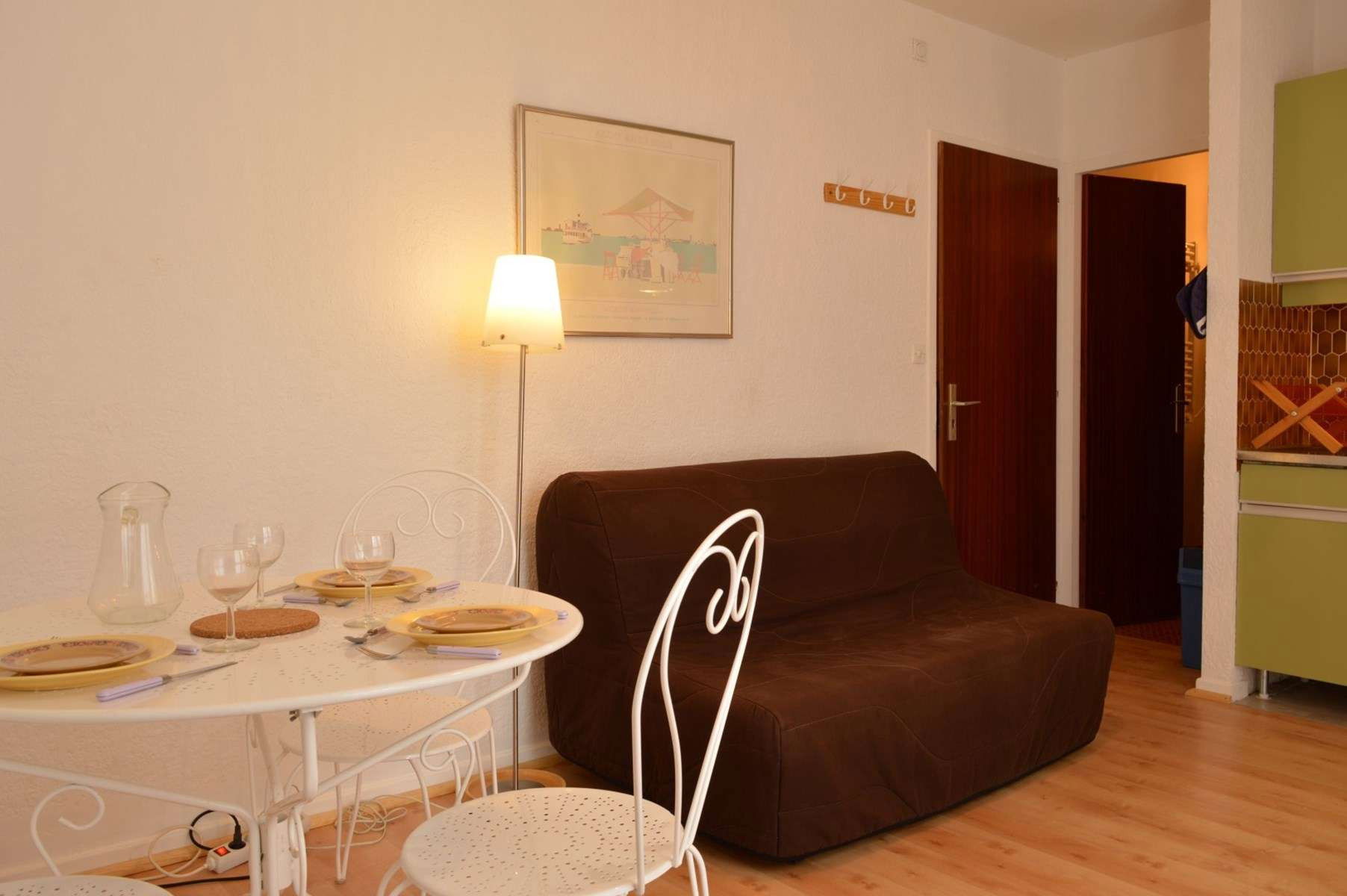 A proximité des animations, cet appartement, parfait pour des vacances en famille, se situe au rez de chaussée et se compose d'un séjour avec canapé convertible deux places ouvrant sur une terrasse de 9m2 environ, une chambre avec un lit deux places, un coin cuisine équipé et une salle d'eau avec WC.