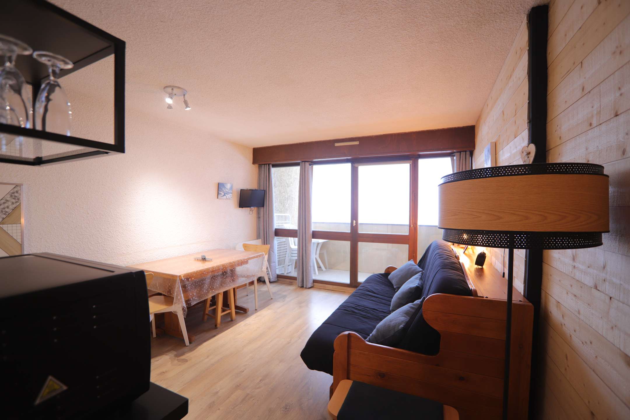 Résidence au calme, sans vis-à-vis, située à 150 m des pistes, équipée de casiers à skis pour chaque logement et située à côté de la piscine municipale (ouverte uniquement l’été).