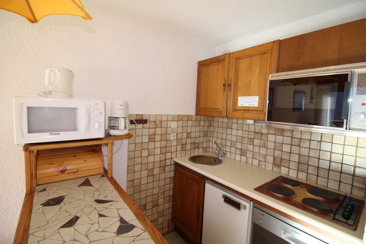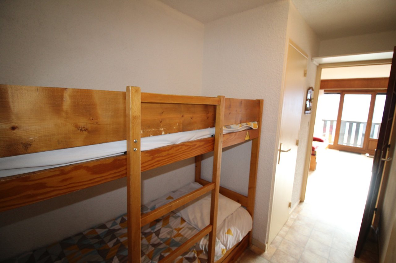 Il est composé d'un séjour avec un canapé gigogne convertible (2 personnes), d'un coin cuisine très bien équipé, d'un coin cabine ouvert dans le couloir de l'appartement avec un lit superposé ( 2 lits 1 personnes) d'une balle de bain avec baignoire et des toilettes séparés. Appartement classé meublé de tourisme 2 étoiles