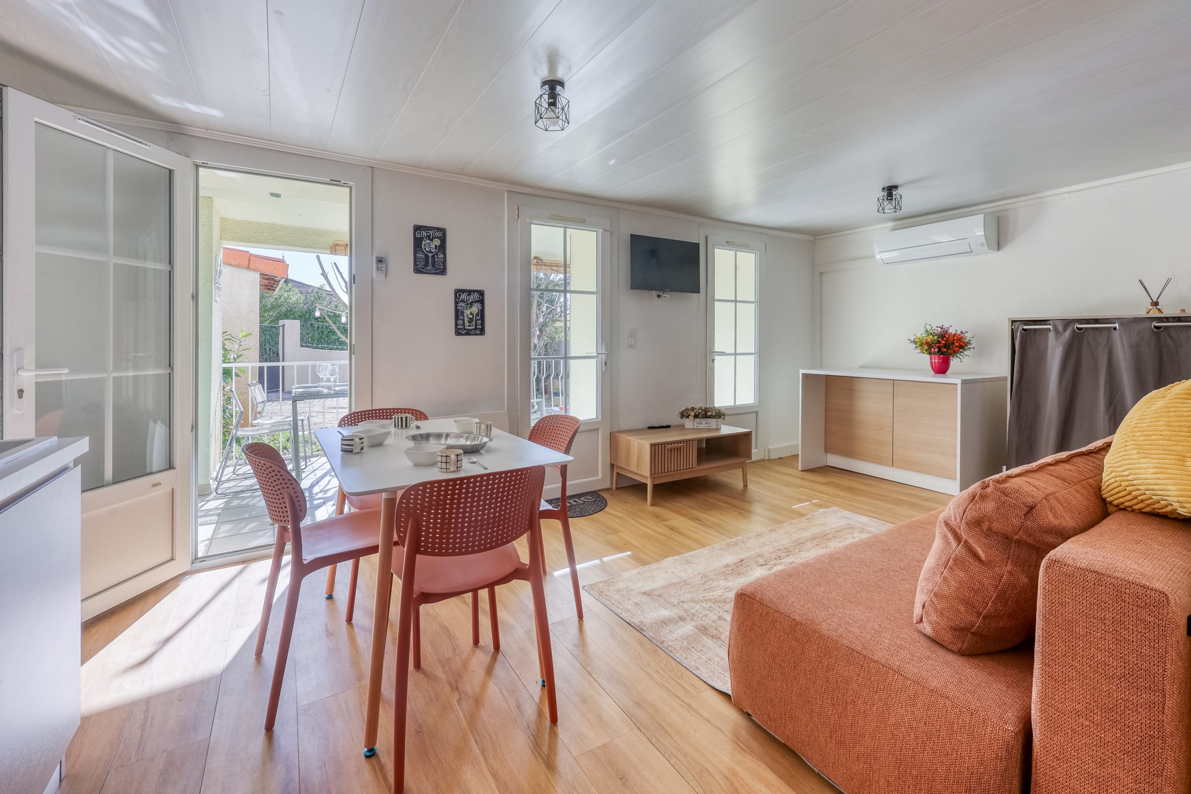 Découvrez cet élégant appartement de 33 m² en rez-de-chaussée, situé au cœur de Bandol, une destination prisée pour ses plages et son climat méditerranéen. Cet espace peut accueillir confortablement jusqu'à 4 personnes (deux adultes et deux enfants).