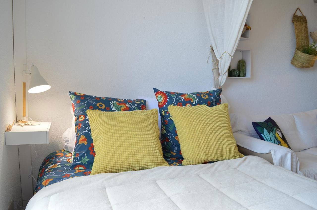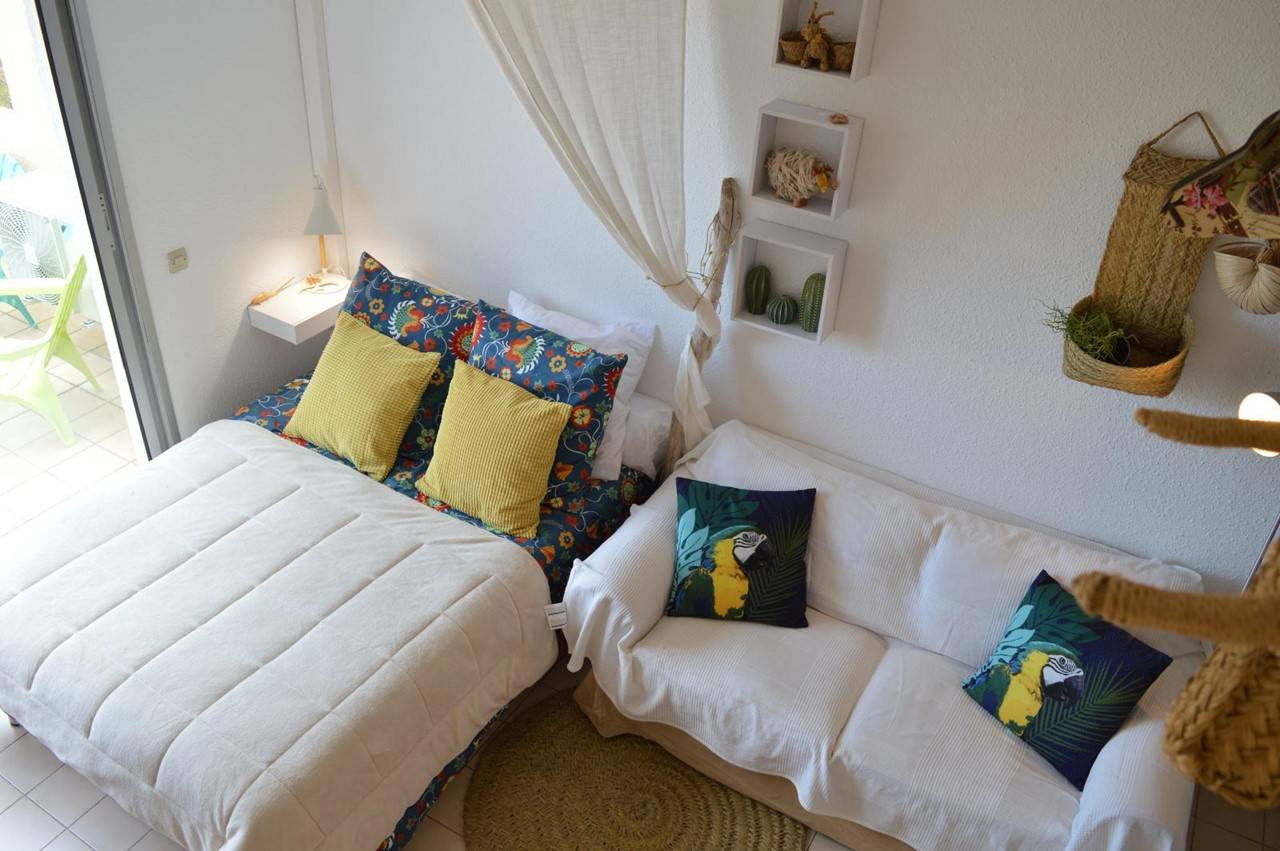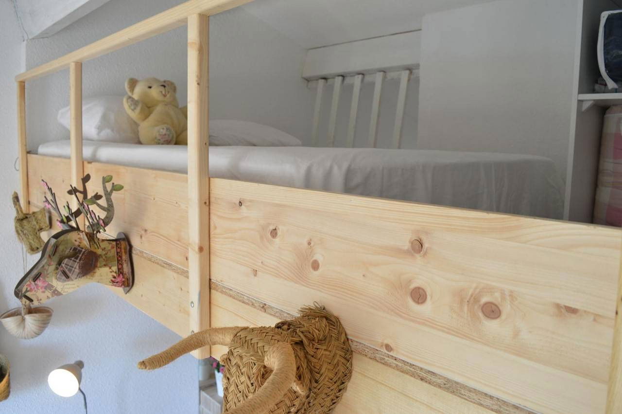 Cet appartement de vacances, situé au 2ème étage, se compose d'un séjour avec un lit pour deux personnes, un coin cuisine équipé, une mezzanine avec 1 lit double, une salle de douche avec wc.