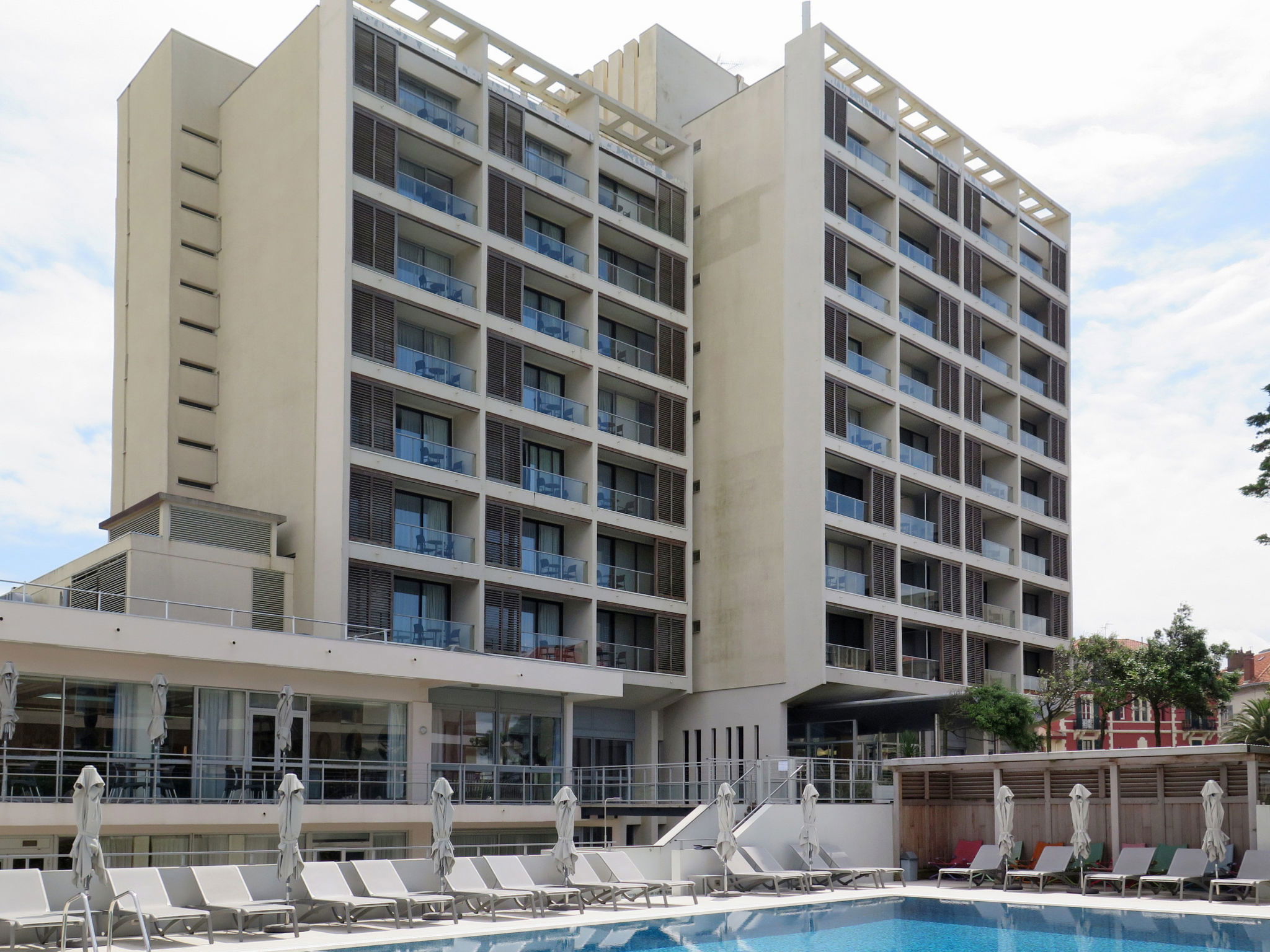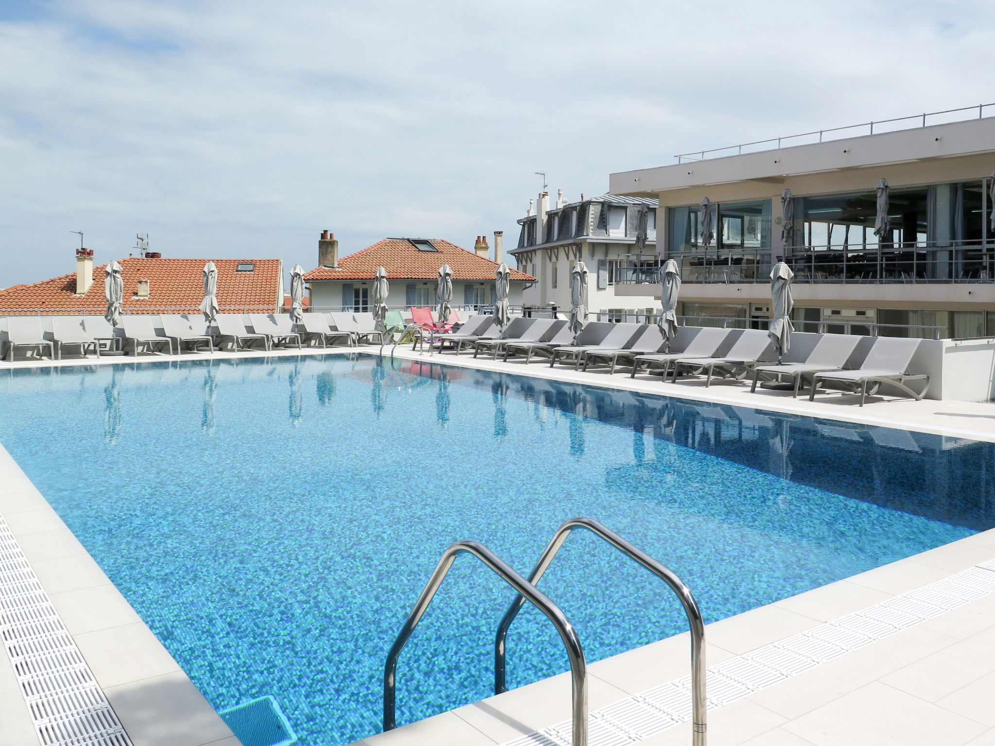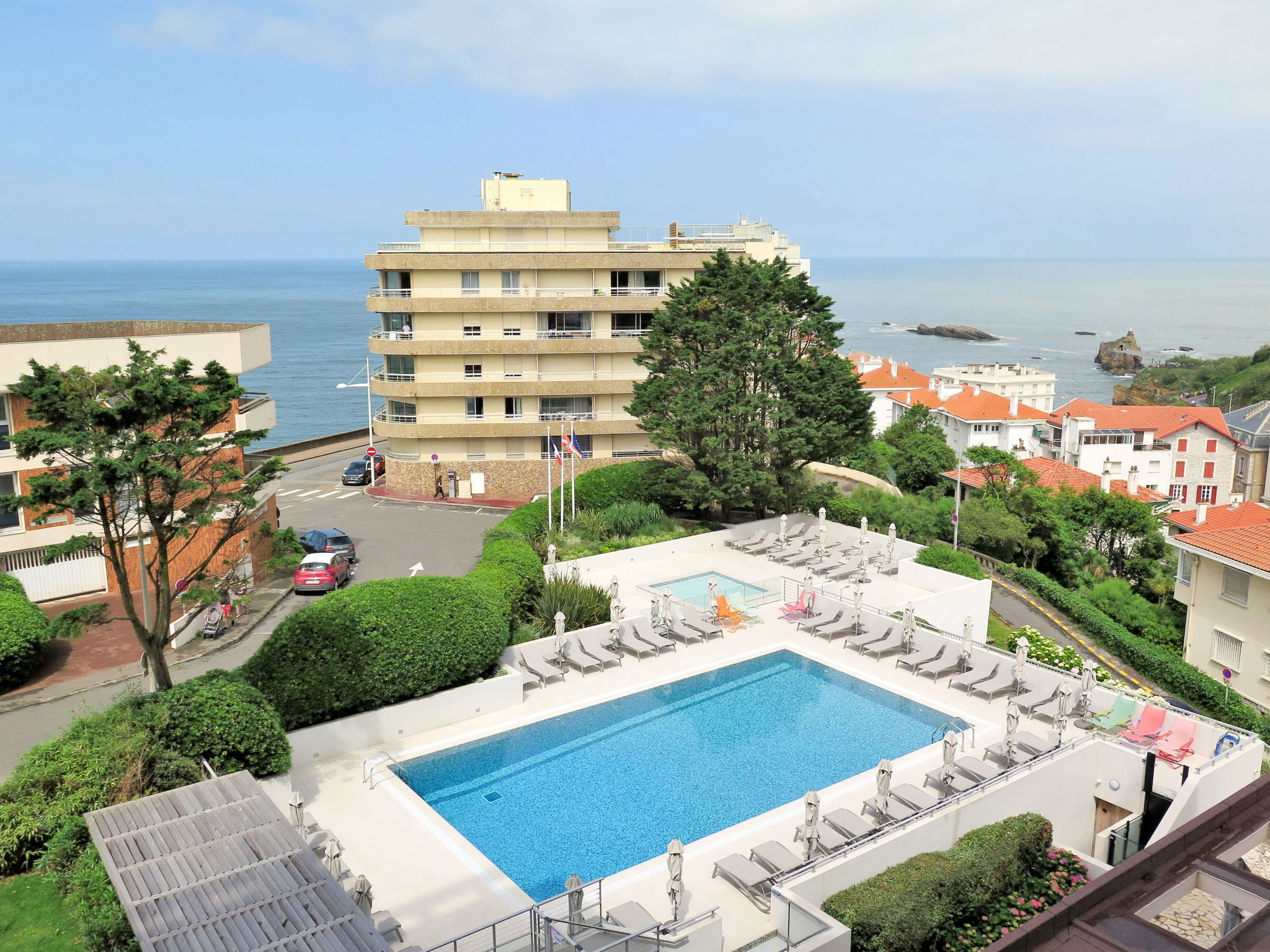 118 appartements dans la résidence. Au centre de Biarritz, à 100 m du centre de Biarritz, situation centrale, à 300 m de la mer. En commun: piscine cloturée (17 x 8 m, profondeur 185 - 230 cm, disponibilité saisonnière: 05.Fev.-05.Nov.). Bassin pour les enfants, ping-pong, terrain de pétanque, terrasse. Infrastructures de la résidence: réception, restaurant, bar, accès internet, Connexion WIFI, ping-pong, ascenseur, lave-linge, sèche-linge (en commun, en sus). Petit-déjeuner possible (en sus). Place de parking (en sus), garage en commun (en sus). Magasin d'alimentation 300 m, plage de sable "Plage du Port-Vieux" 300 m. Veuillez noter: garde d'enfants en saison. La photo n´est qu´un exemple. Les locations peuvent également se différencier par leur superficie, la disposition des pièces et leur équipement.