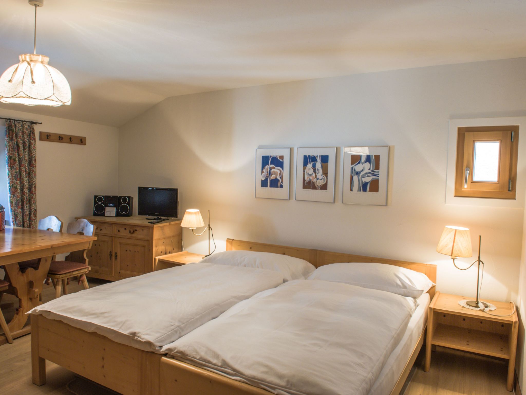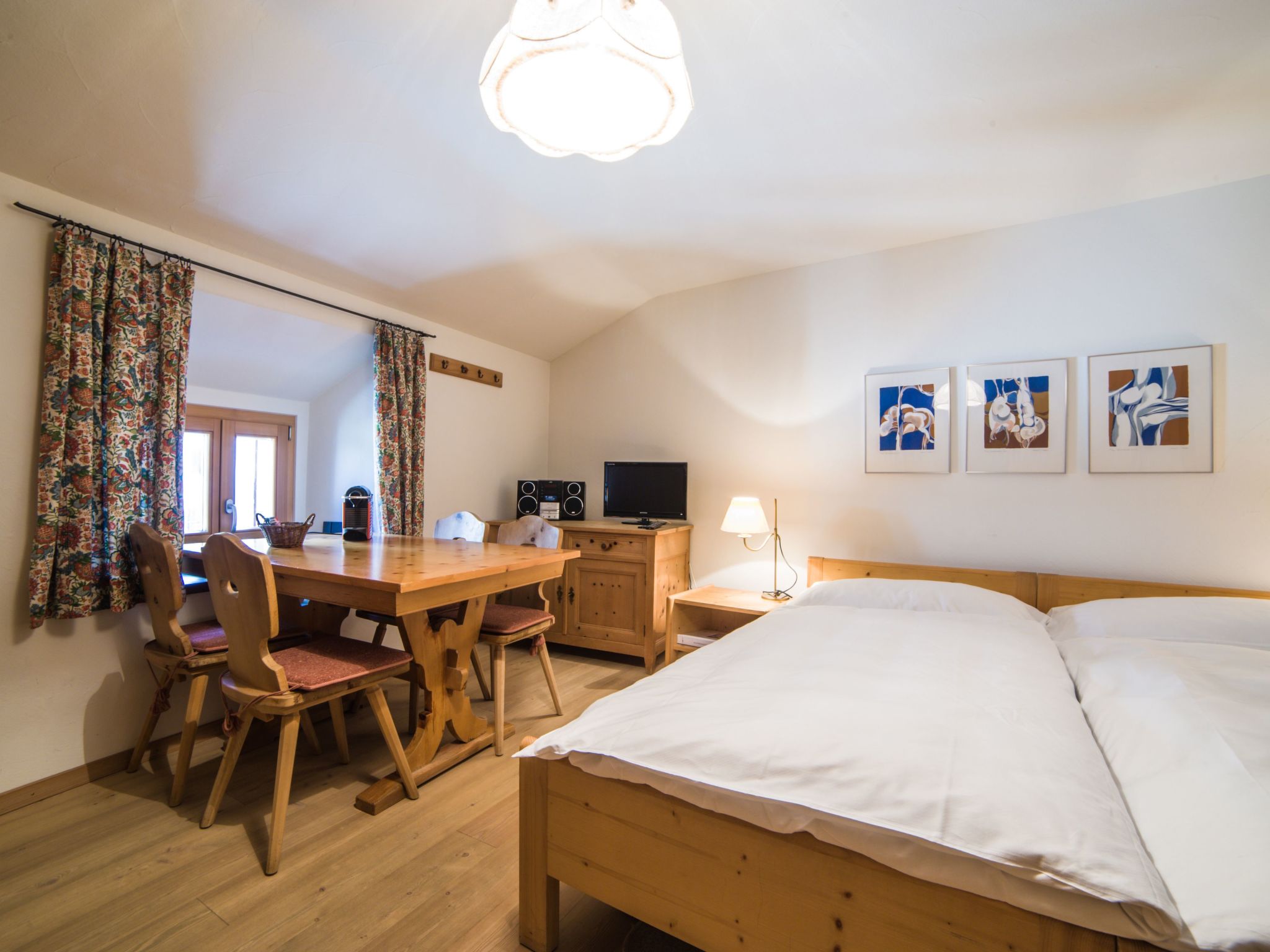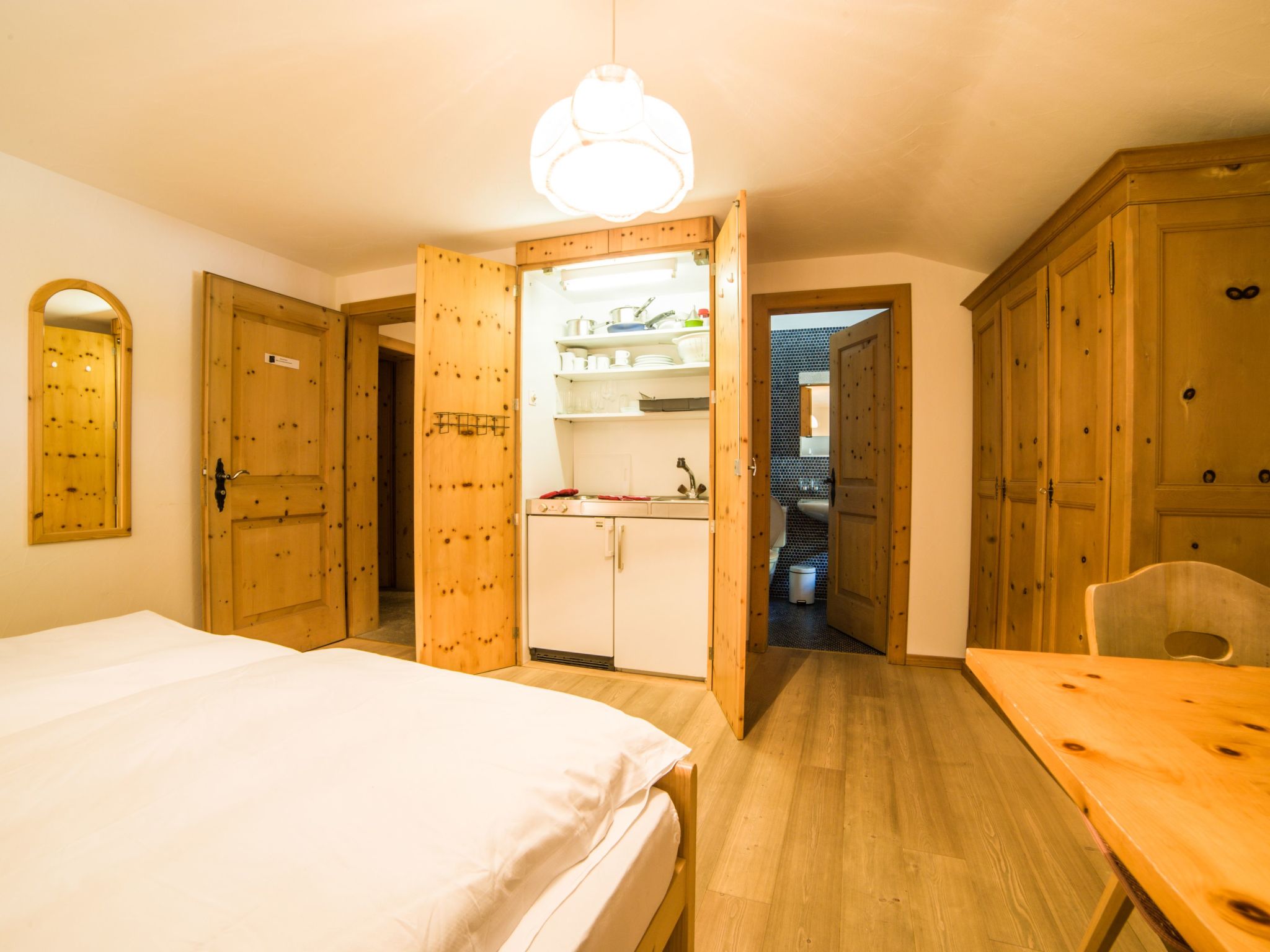 The combination of the 2½-room apartment Roseg (59 m2) and the Studio Nair (24 m2) is located on the 1st floor of the historic Chesa Michel and together offers a spacious home for up to 6 people. Both units are connected internally and furnished in the traditional Engadine style with pine and antique furniture.