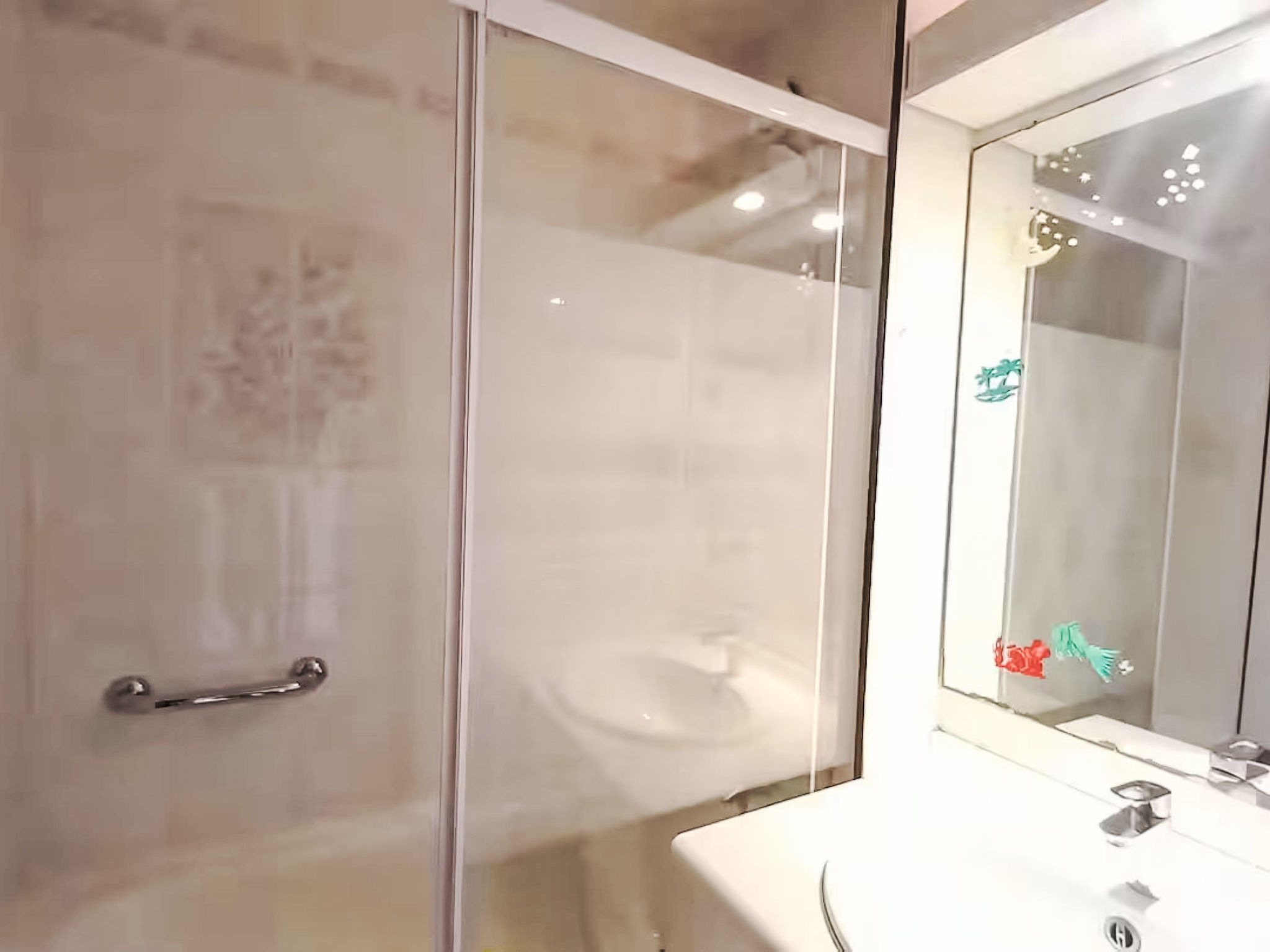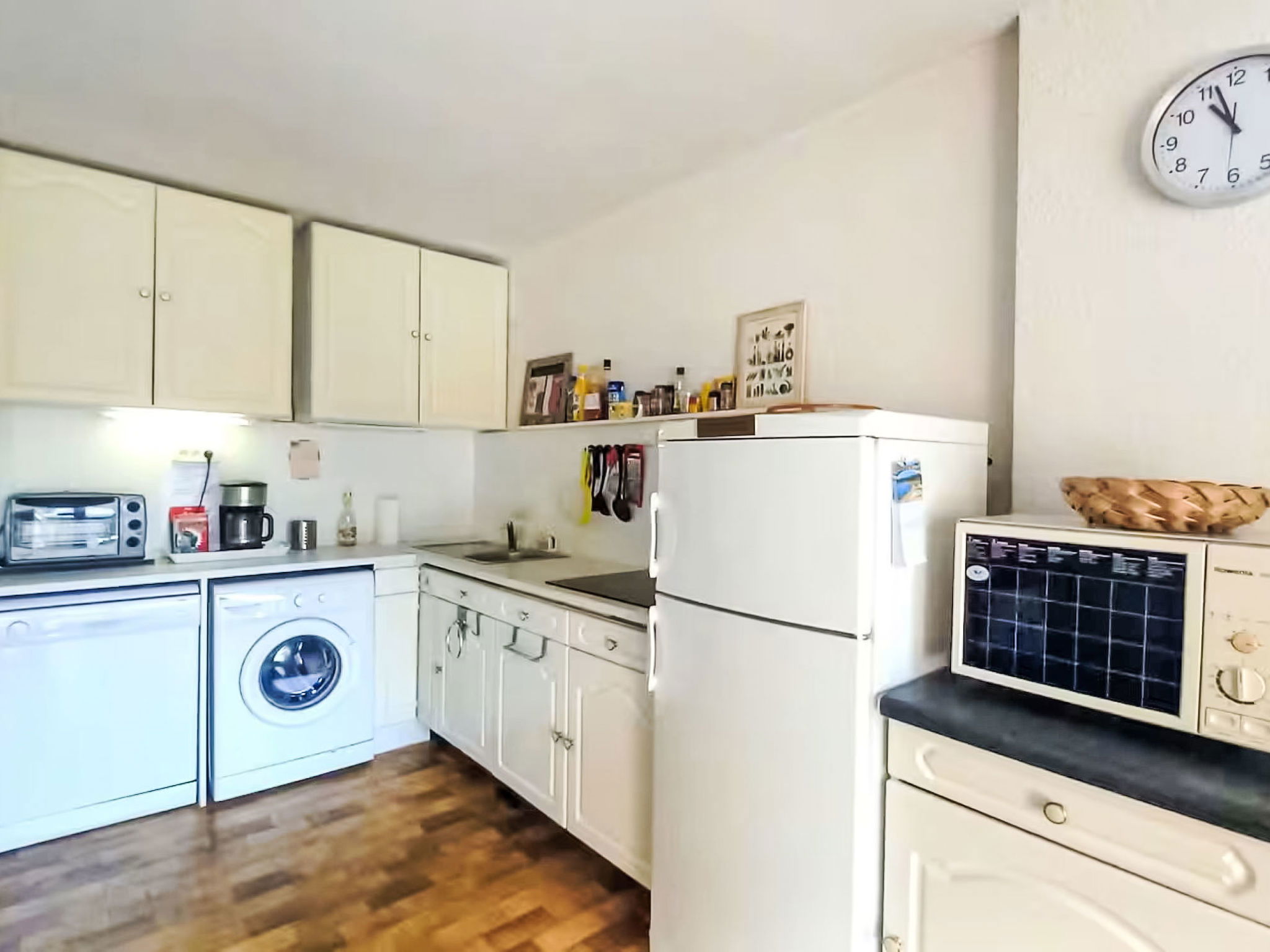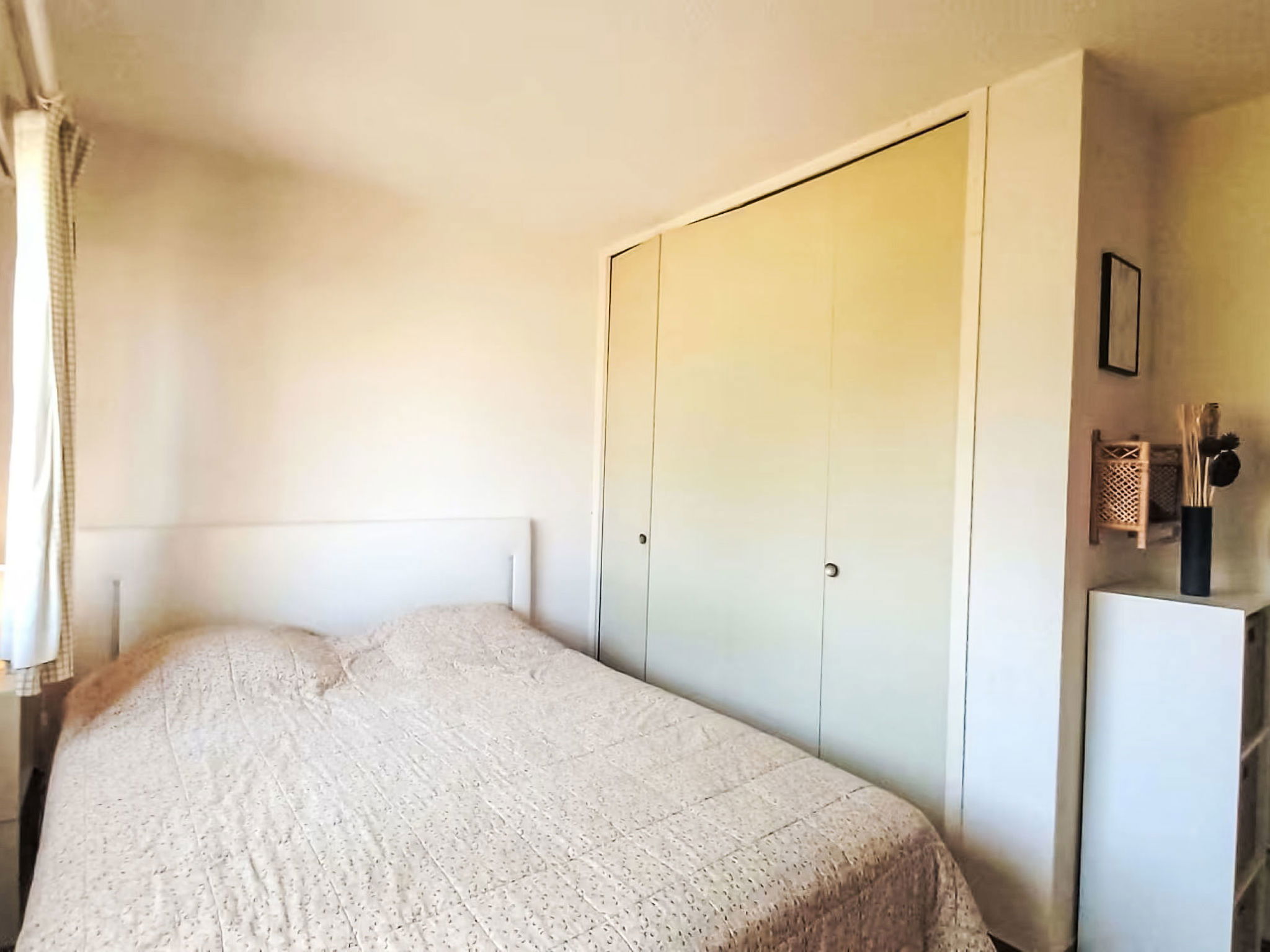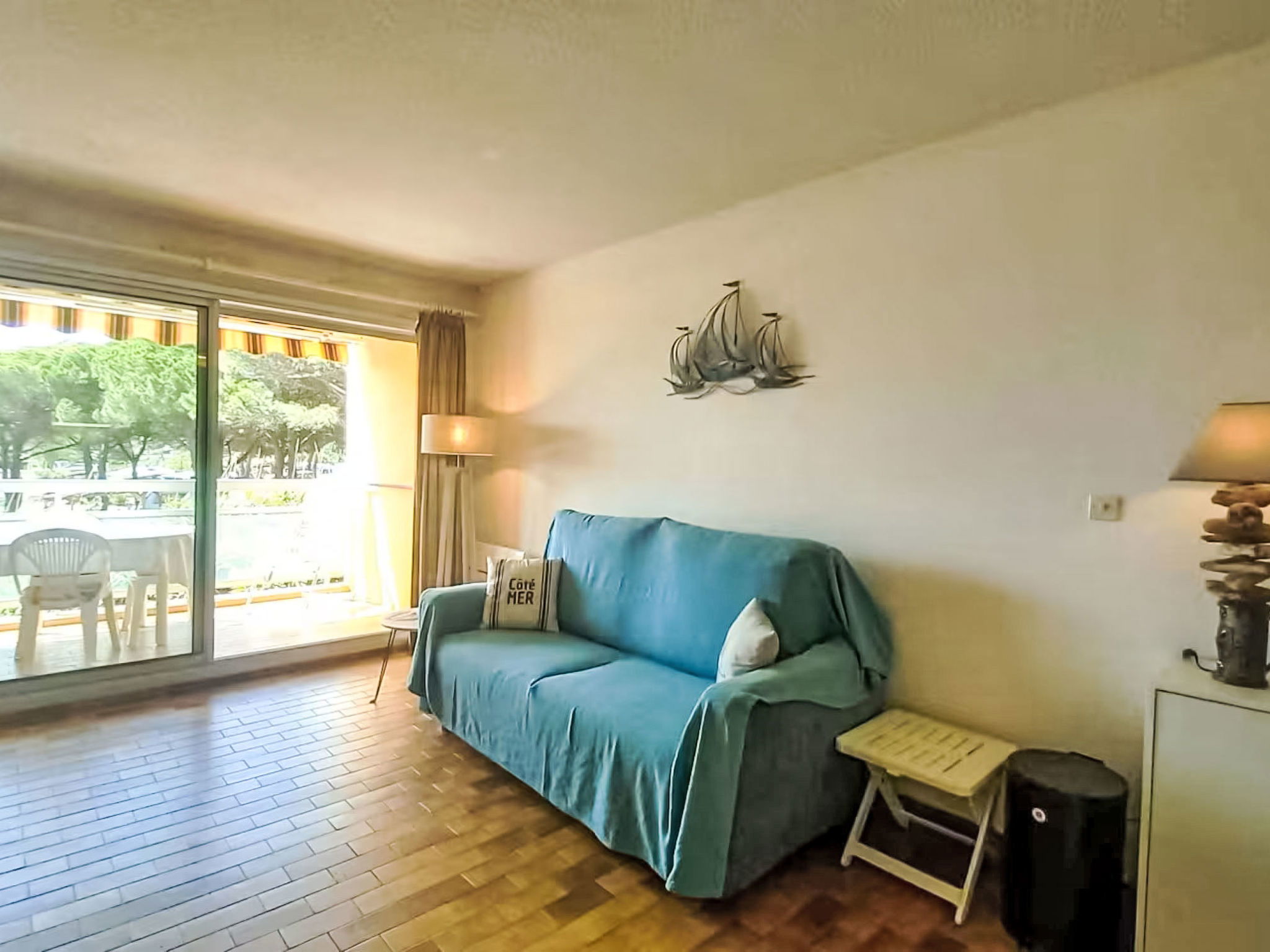 Appartement de 2 pièces 35 m2 au 1er étage. Séjour/salle à manger avec 1 divan-lit double (140 cm, longueur 190 cm), TV (écran plat). Sortie sur le balcon. 1 chambre avec 1 grand-lit (140 cm, longueur 190 cm). Coin cuisine (mini-four, lave-vaisselle, 4 plaques vitrocéramiques, grille-pain, bouilloire électrique, micro-ondes, congélateur, cafetière électrique). Salle de bains, WC séparé. Balcon 7 m2. Vue sur la mer. A disposition: lave-linge. Internet (Connexion WIFI, en sus). Garage No 270, hauteur 180 cm, largeur 210 cm. Veuillez noter: logement non-fumeur. 1 animal/ chien autorisé. TV seulement FR. Détecteur de fumée. Annonce d'un professionnel (art 155, IV du CGI) 83019001992T0