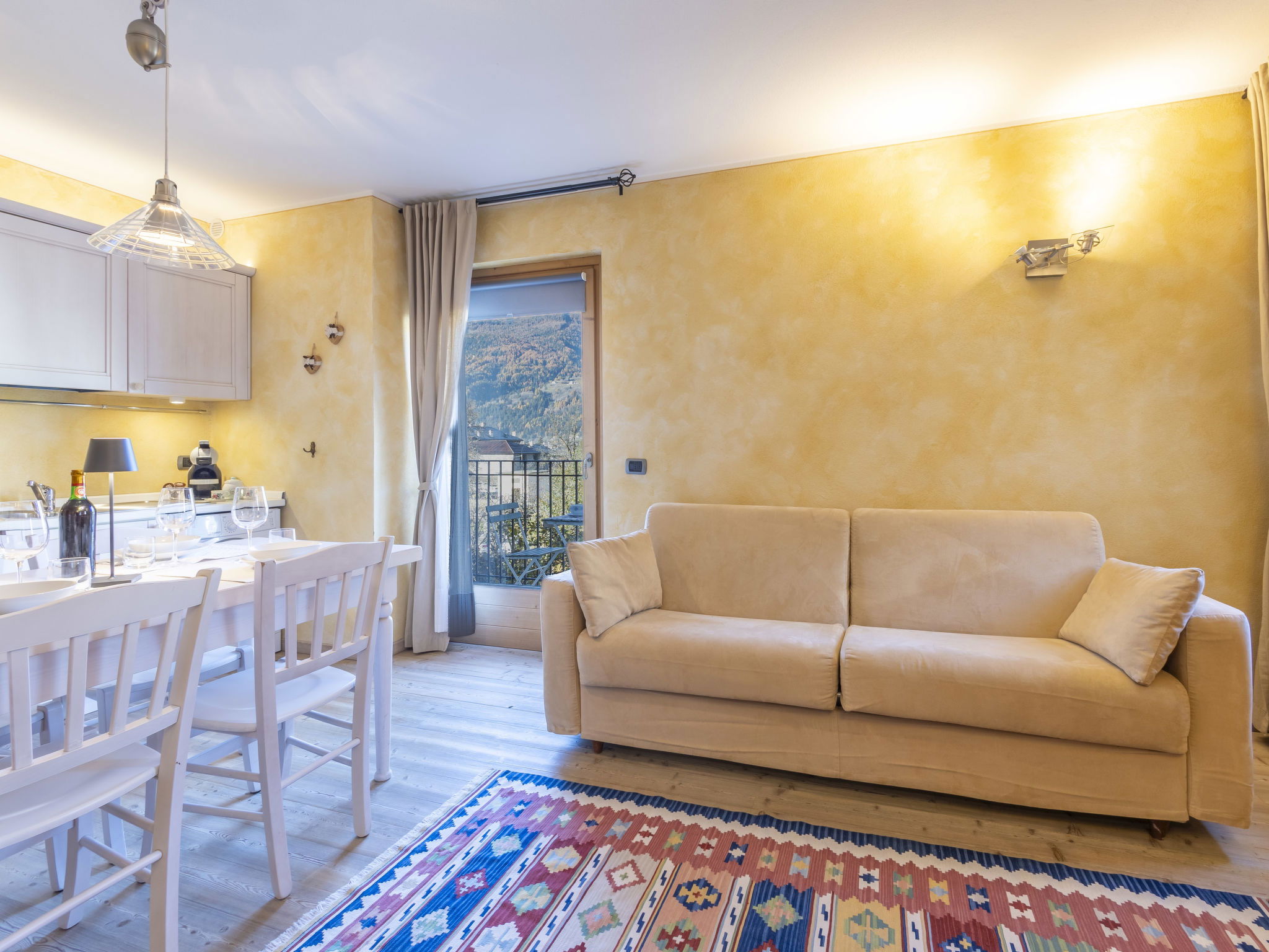 Appartement de 2 pièces 50 m2 au 1er étage, situation ouest. Clair, aménagement confortable et moderne: séjour/salle à manger avec 1 divan-lit double, table pour les repas et TV. Sortie sur le balcon. 1 chambre double avec TV. Coin cuisine (4 plaques de cuisson, lave-vaisselle, grille-pain, bouilloire électrique, micro-ondes, cafetière électrique, Capsules pour machine à café (Nescafè Dolcegusto) inclus). Douche/bidet/WC. Sol en parquet. Balcon. Mobilier de balcon. Vue panoramique sur les montagnes et la ville. A disposition: lave-linge, chaise haute pour enfant, lit bébé, sèche-cheveux. Internet (Connexion WIFI, gratuit). Veuillez noter: adapté(e) aux familles. Réfrigérateur sans compartiment congélateur, logement non-fumeur. Maximum 1 animal/ chien autorisé. IT014009B4EGWKXYXG