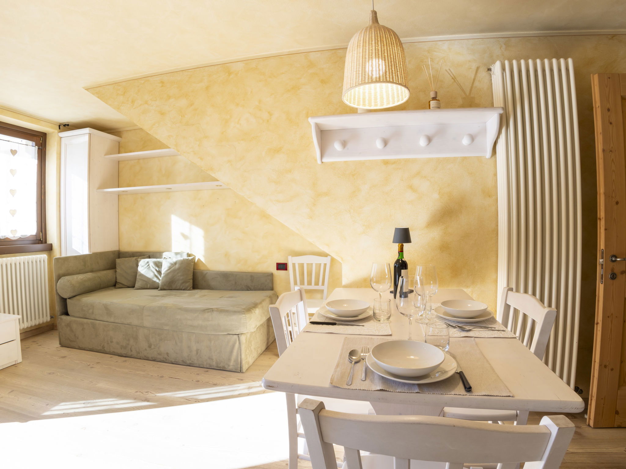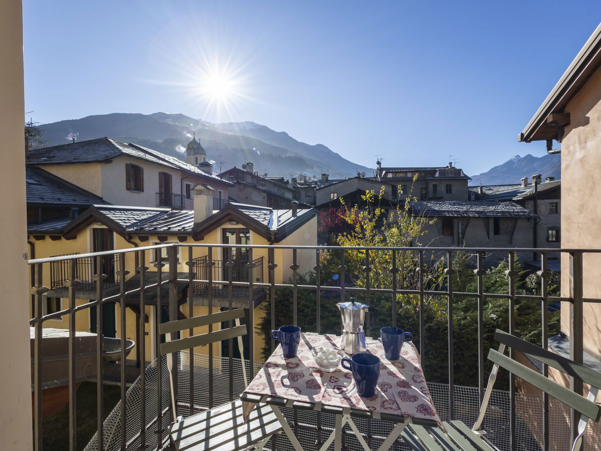 Petit immeuble historique "Al Forte", 1'225 m au dessus du niveau de la mer, de 2 étages, du 19ème siècle. Au centre de Bormio, dans un quartier résidentiel, excellente situation: centrale mais tranquille, à 700 m du domaine skiable. Parking public 100 m possible dans la rue en sus. Supermarché 300 m, restaurant 200 m, bar 200 m, café, centre thermal "Bormio Terme" 500 m. Télésiège 700 m. École de ski, jeux pour enfants 150 m. Attractions à proximité: Parco Nazionale dello Stelvio. Les domaines skiables de renommée sont facilement accessibles: Bormio 2000 10 km, Santa Caterina Valfurva 13 km, Livigno 37 km. Région de randonnées: Croce della Reit, Val Zebrù, Sentiero Glaciologico Alto, Malga di San Colombano, Val Viola. Veuillez noter: sans ascenseur. Déchargement et chargement des bagages à la location de vacances.