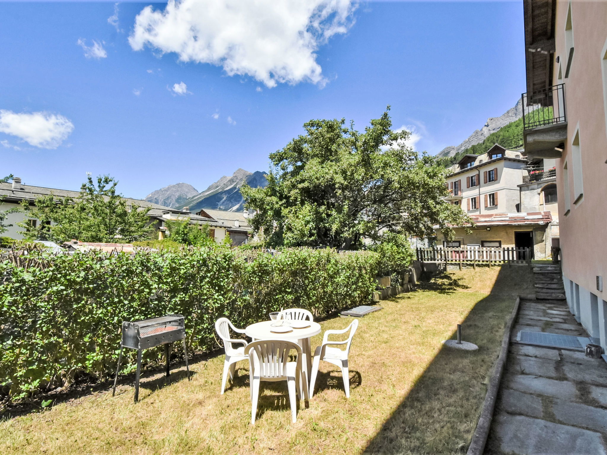 Appartement de 3 pièces 75 m2, sous-sol de plain-pied, situation ouest. Spacieux et clair, complètement rénové en 2024, aménagement moderne et de style: entrée. Grand séjour/salle à manger avec table pour les repas et TV. 1 chambre double avec Dressing avec TV. 1 chambre avec 2 lits. Grande coin cuisine (four, lave-vaisselle, 4 plaques à induction, grille-pain, bouilloire électrique, cafetière électrique, Capsules pour machine à café (Nespresso) inclus). Douche/bidet/WC. Chauffage. Grand jardin, situation ouest et situation sud, pelouse. Meubles de terrasse, barbecue, chaises longues (4). Vue sur les montagnes et le jardin. A disposition: lave-linge, sèche-linge, chaise haute pour enfant, lit bébé, sèche-cheveux. Internet (Connexion WIFI, gratuit). Place de parking. Veuillez noter: logement non-fumeur. Maximum 1 animal/ chien autorisé. IT014009C2ELADTII5