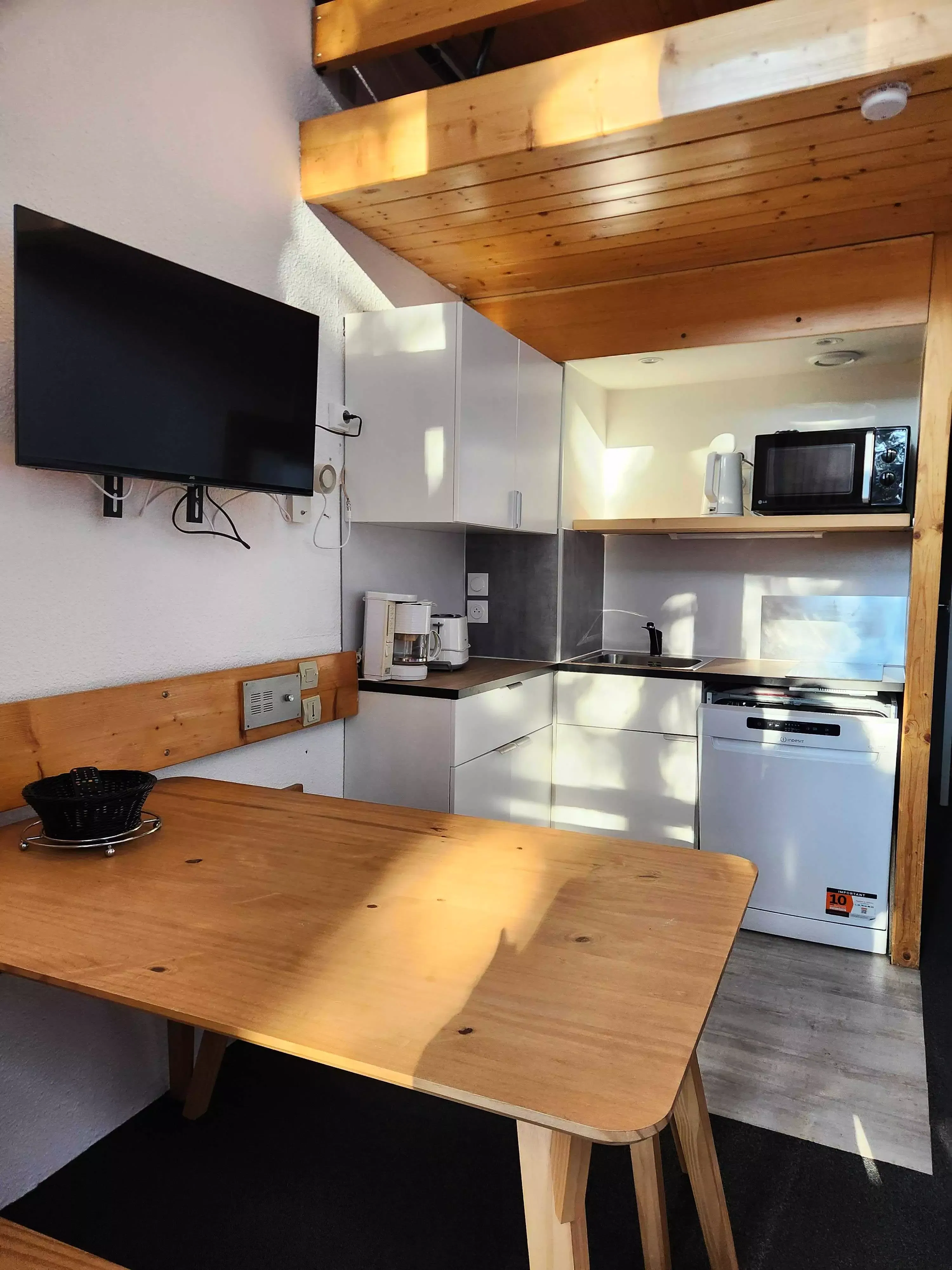 Votre location de vacances comporte : 1 séjour, 1 mezzanine, 1 coin cuisine, 1 salle de bains et 1 WC.