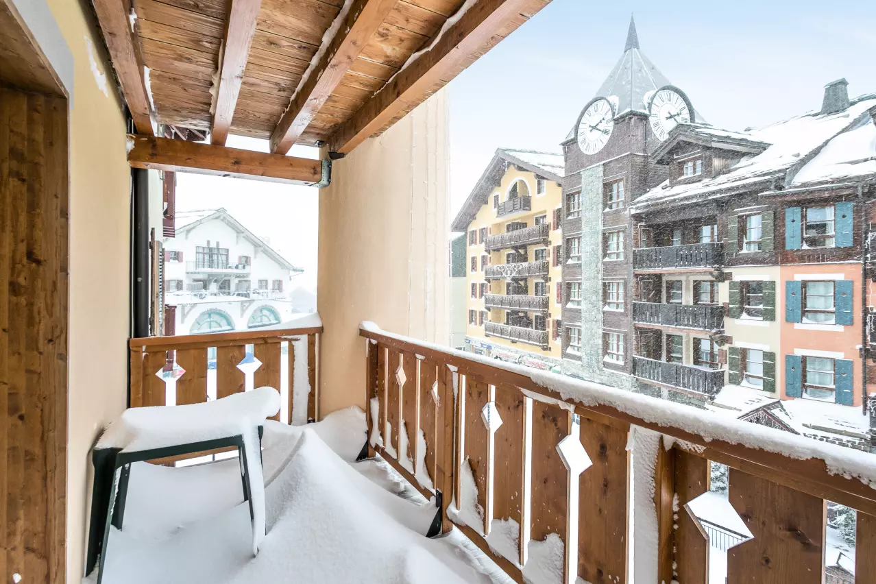 Les atouts de votre location : appartement skis aux pieds, accès à l'espace bien-être et à la salle de fitness (vue sur le Village).