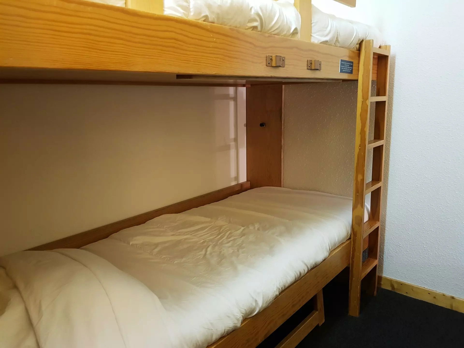 Vous disposerez également d' un coin cabine fermé par une porte avec un ensemble de 2 lits superposés (80x190).