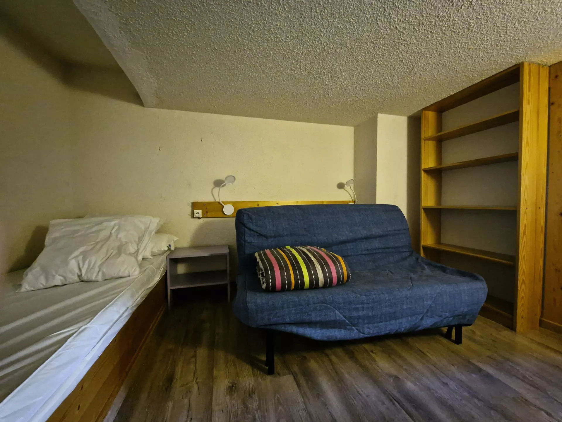 Sur la mezzanine, vous trouverez 1 lit double en 140x190 cm dans une chambre fermée et un coin montagne avec 1 lit simple en 80x190cm et 1 BZ pour 2 personnes en 120x190cm.