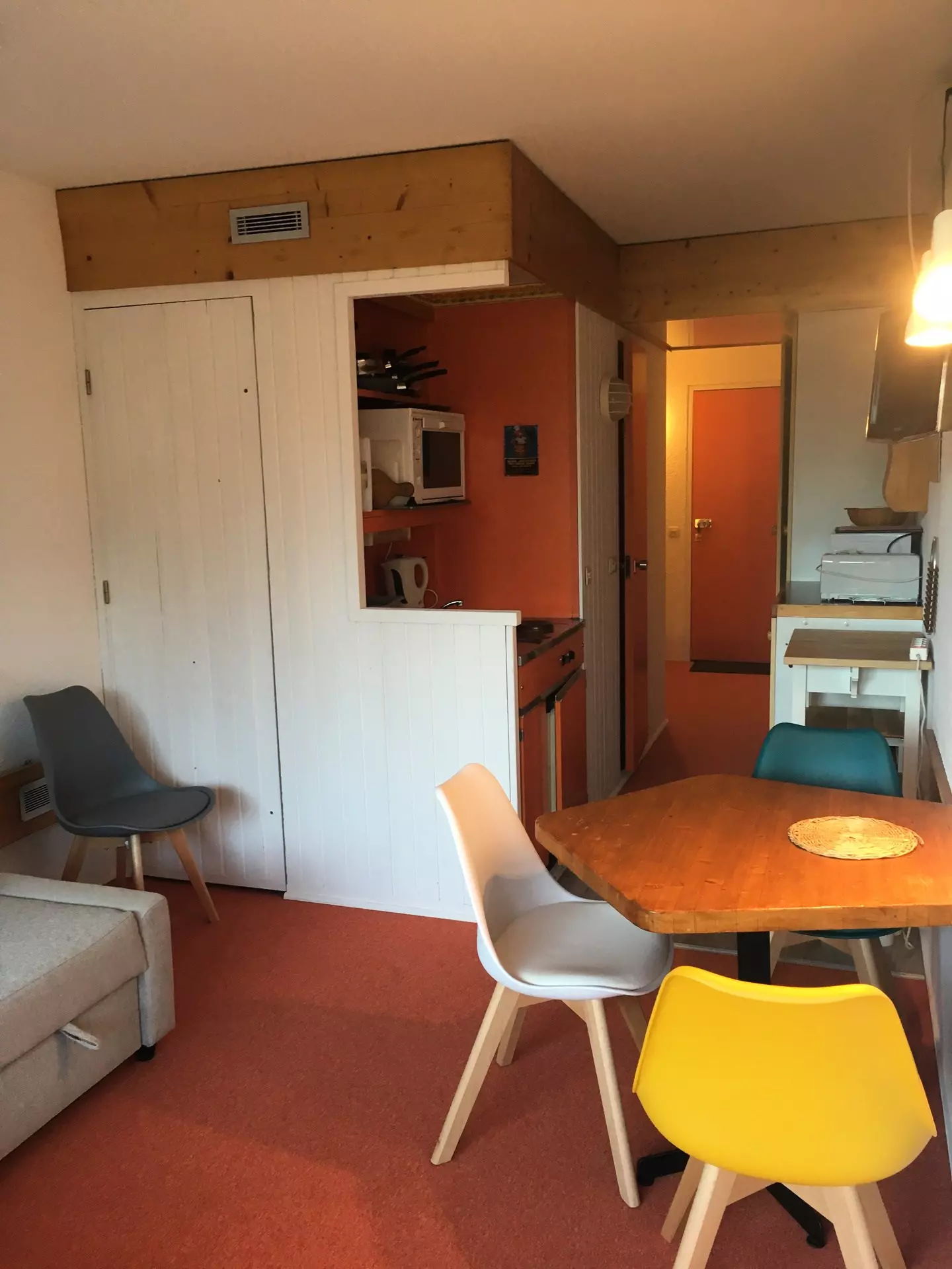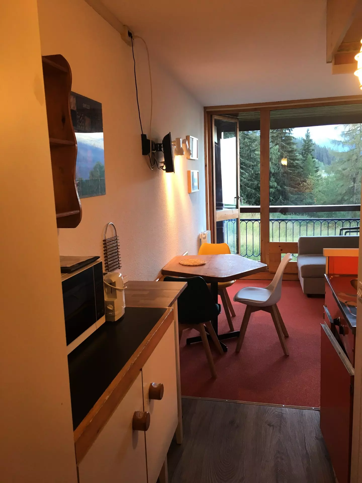 Ce studio de 24m² pouvant accueillir jusqu'à 4 personnes est situé au 6ème étage de la résidence Grand Arbois, résidence avec ascenseur.