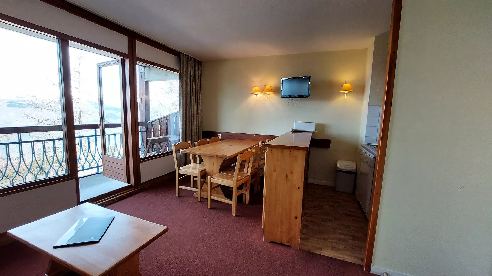 Pour vos vacances au ski ou vos vacances d'été aux Arcs 1800, réservez ce 3 pièces qui bénéficie d'un balcon avec une exposition Ouest, vous offrant une vue sur la vallée.