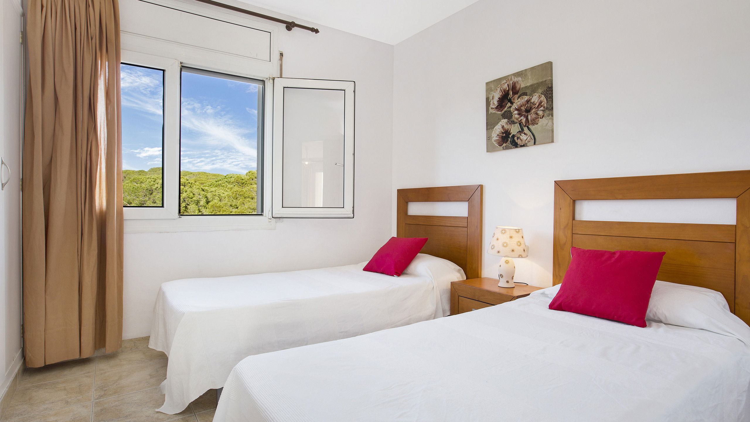 La chambre principale dispose d'un lit double (150x190cm) et la deuxième chambre a 2 lits simples (90x190cm).
