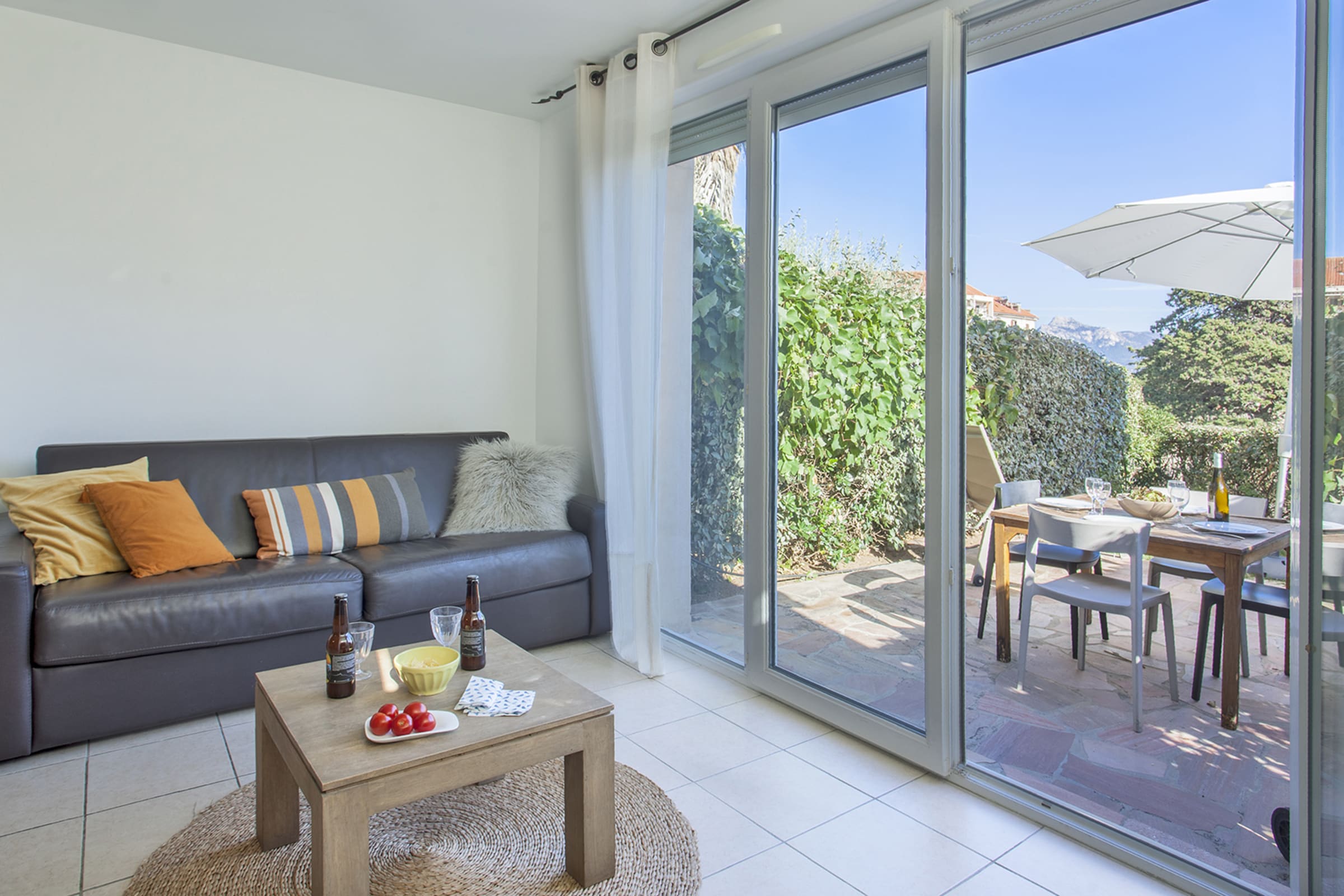 Appartement avec jardin, vue mer et montagne, plage et port à 2 pas.
