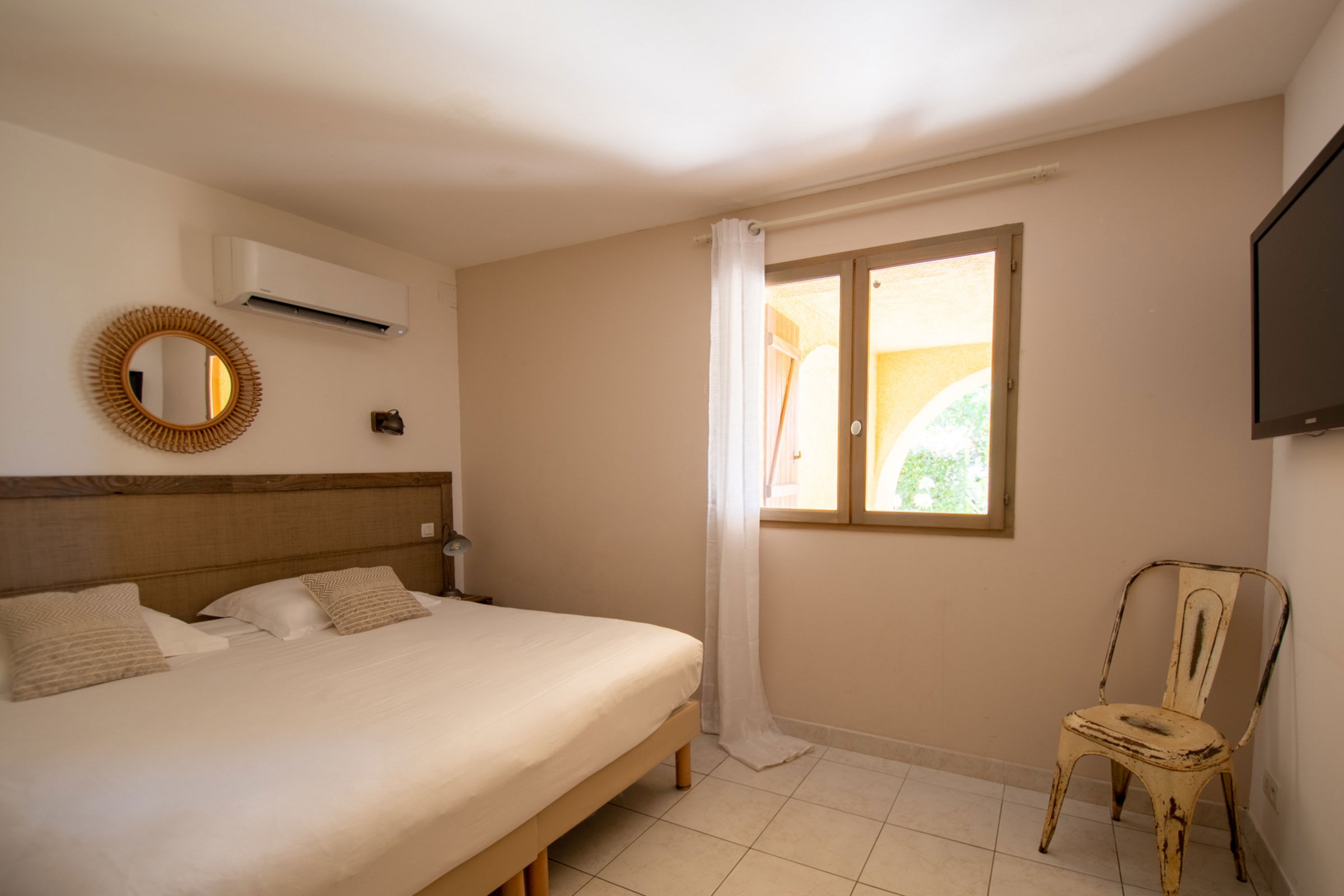 Une télévision dans chaque chambres et un couchage pour deux personnes dans le séjour.
