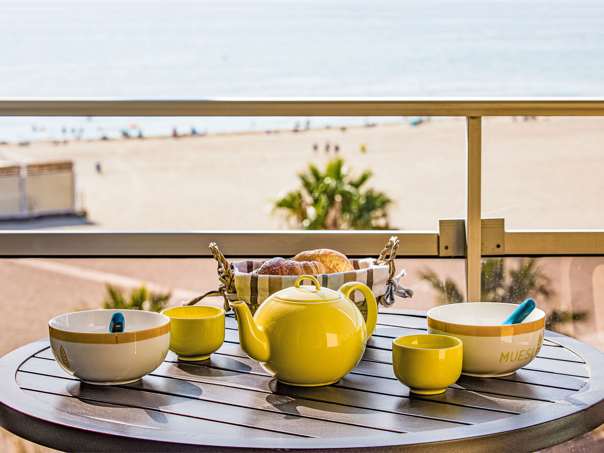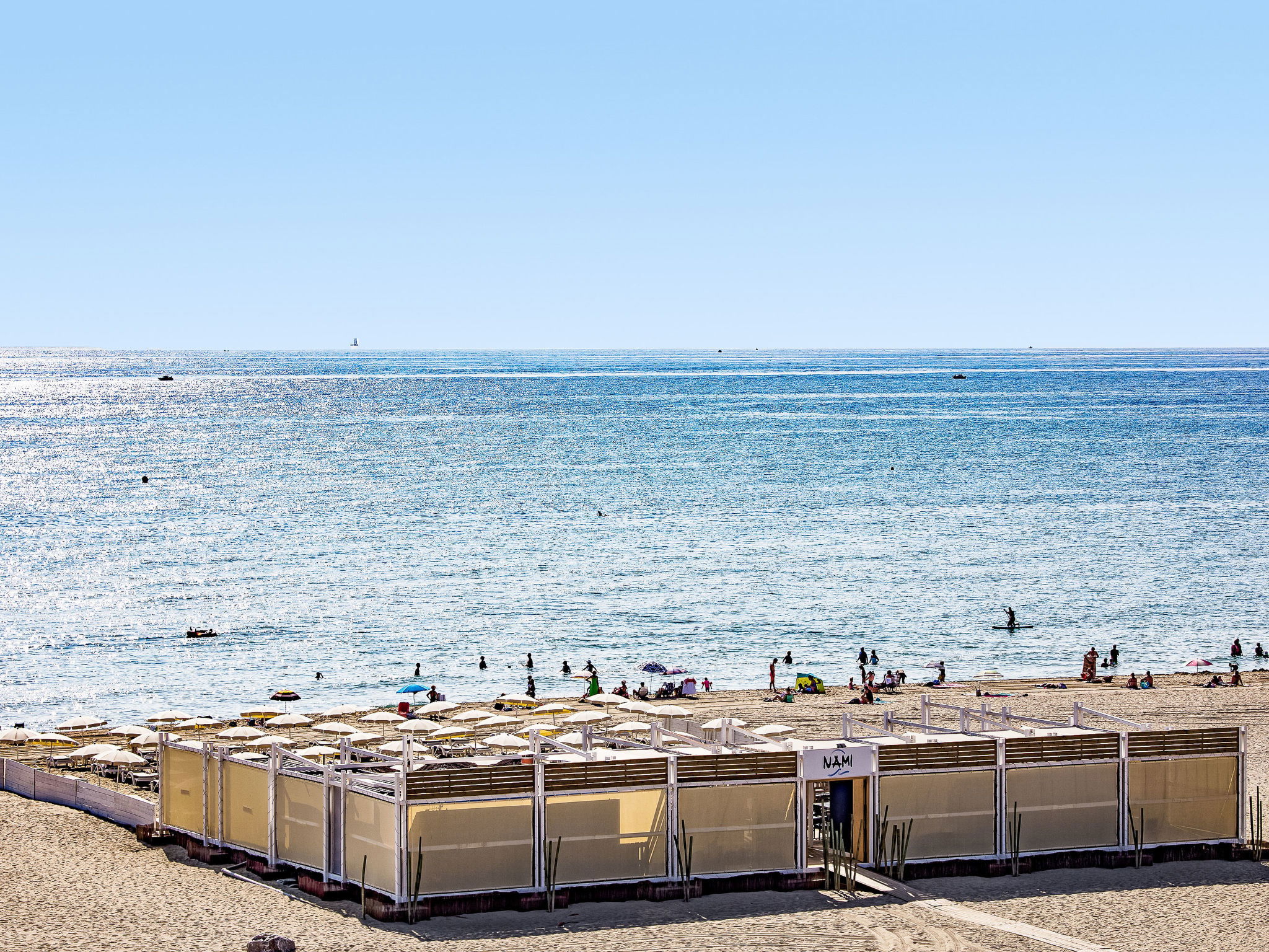 Appartement de 2 pièces 30 m2 au 5ème étage. Aménagement confortable: séjour/salle à manger avec 1 divan-lit double (1 x 140 cm, longueur 190 cm), TV (écran plat). Sortie sur la terrasse. 1 chambre avec 1 grand-lit (1 x 140 cm, longueur 190 cm), ventilateur. Cuisine ouverte (2 plaques à induction, grille-pain, bouilloire électrique, cafetière électrique, combiné micro-ondes). Salle de bains, WC séparé. Chauffage électrique. Terrasse 5 m2, situation sud et situation est. Meubles de terrasse. Très belle vue sur la mer. A disposition: lave-linge, fer à repasser, sèche-cheveux. Place de parking No 152. Veuillez noter: logement non-fumeur. 1 animal/ chien de petite taille autorisé. Détecteur de fumée. Annonce d'un particulier (art 155, IV du CGI).