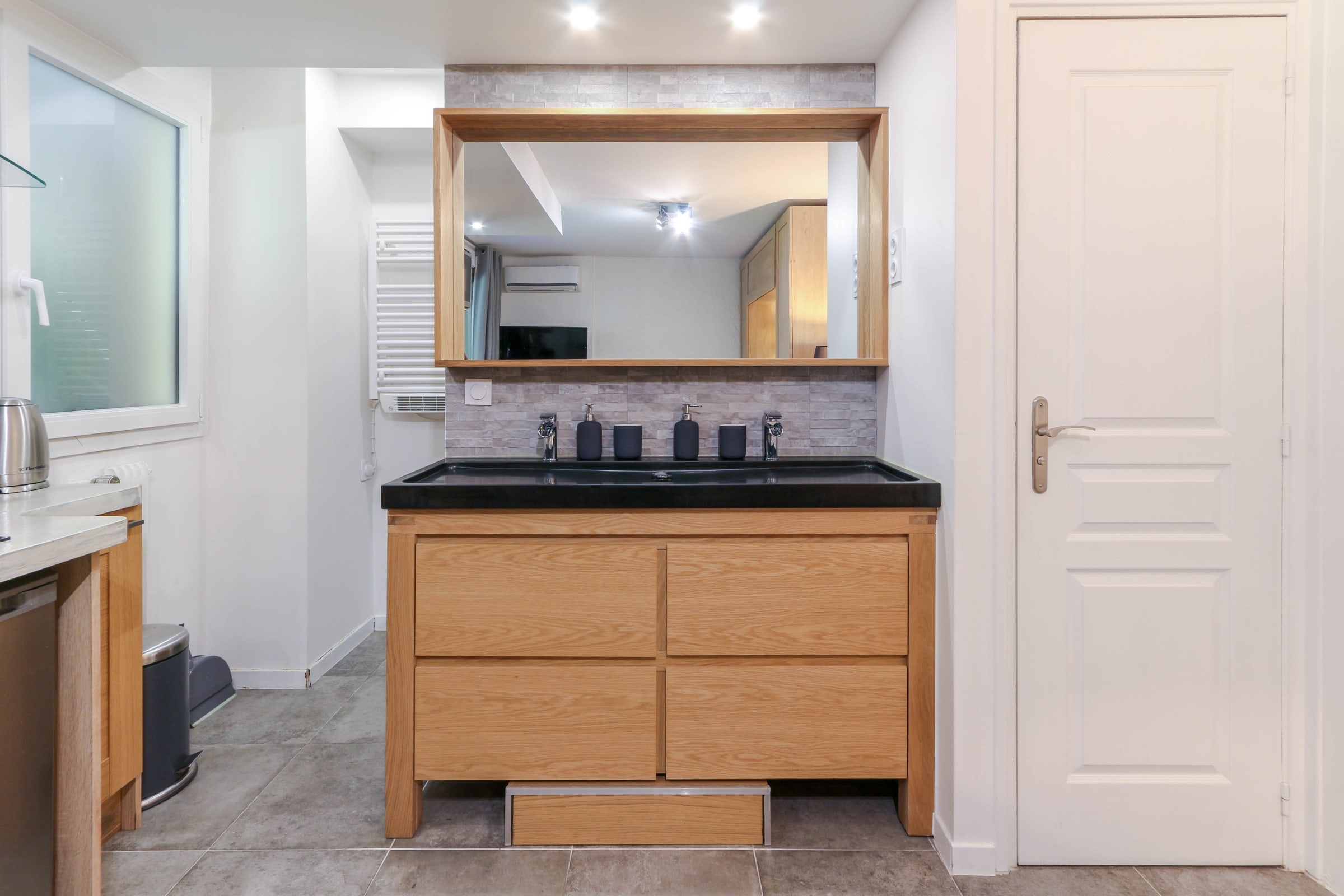 - Salle de bain : Meuble avec double vasque, douche et WC indépendant