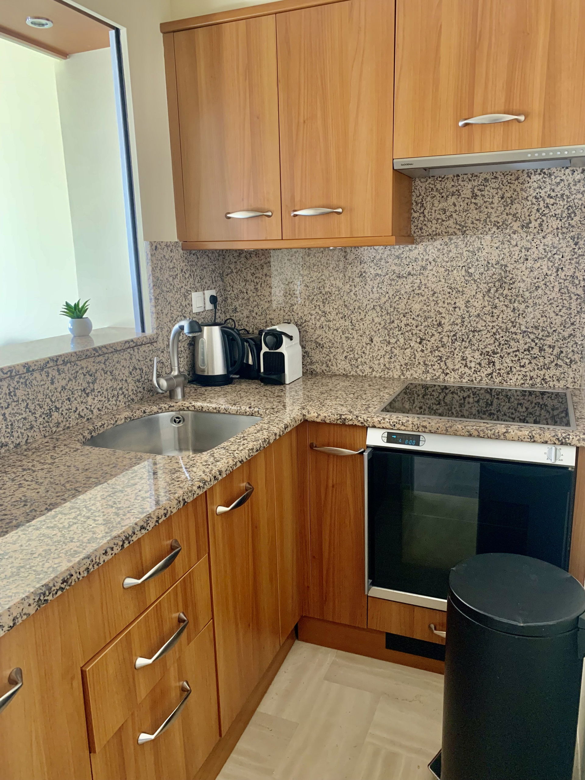 La cuisine entièrement équipée vous permet de préparer vos repas préférés avec facilité. Vous y trouverez un réfrigérateur, congélateur, lave linge, un four micro ondes, une plaque vitrocéramique à trois feux, une cafetière de type Nespresso et un grille-pain pour votre confort.