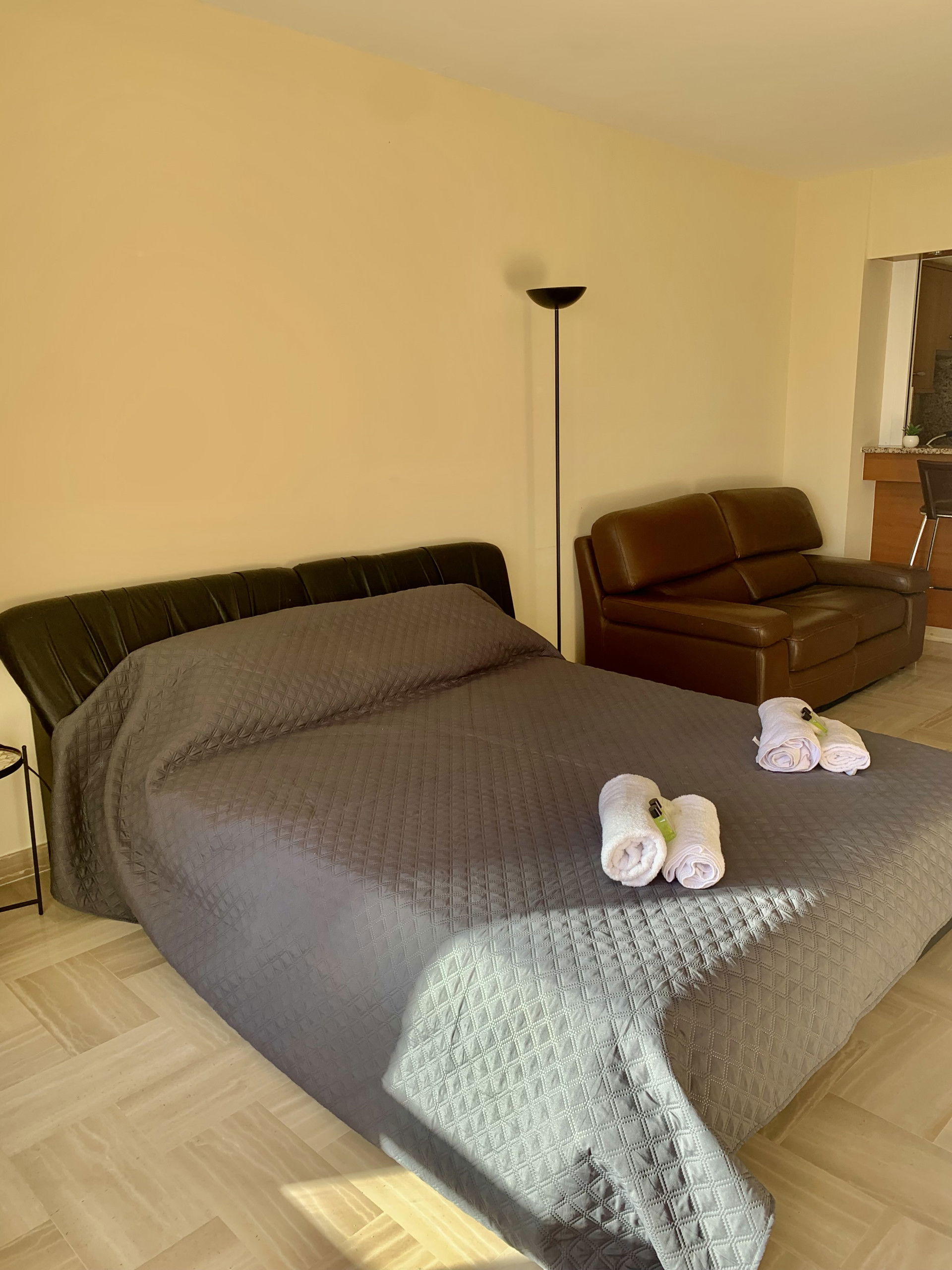 À l'intérieur, notre studio de 30m2 vous offre un espace élégant et bien aménagé. Le séjour comprend un lit double confortable pour deux personnes et un canapé-lit supplémentaire, offrant un hébergement pour jusqu'à quatre personnes. Divertissez-vous avec la télévision et restez connecté avec notre connexion WiFi haut débit.