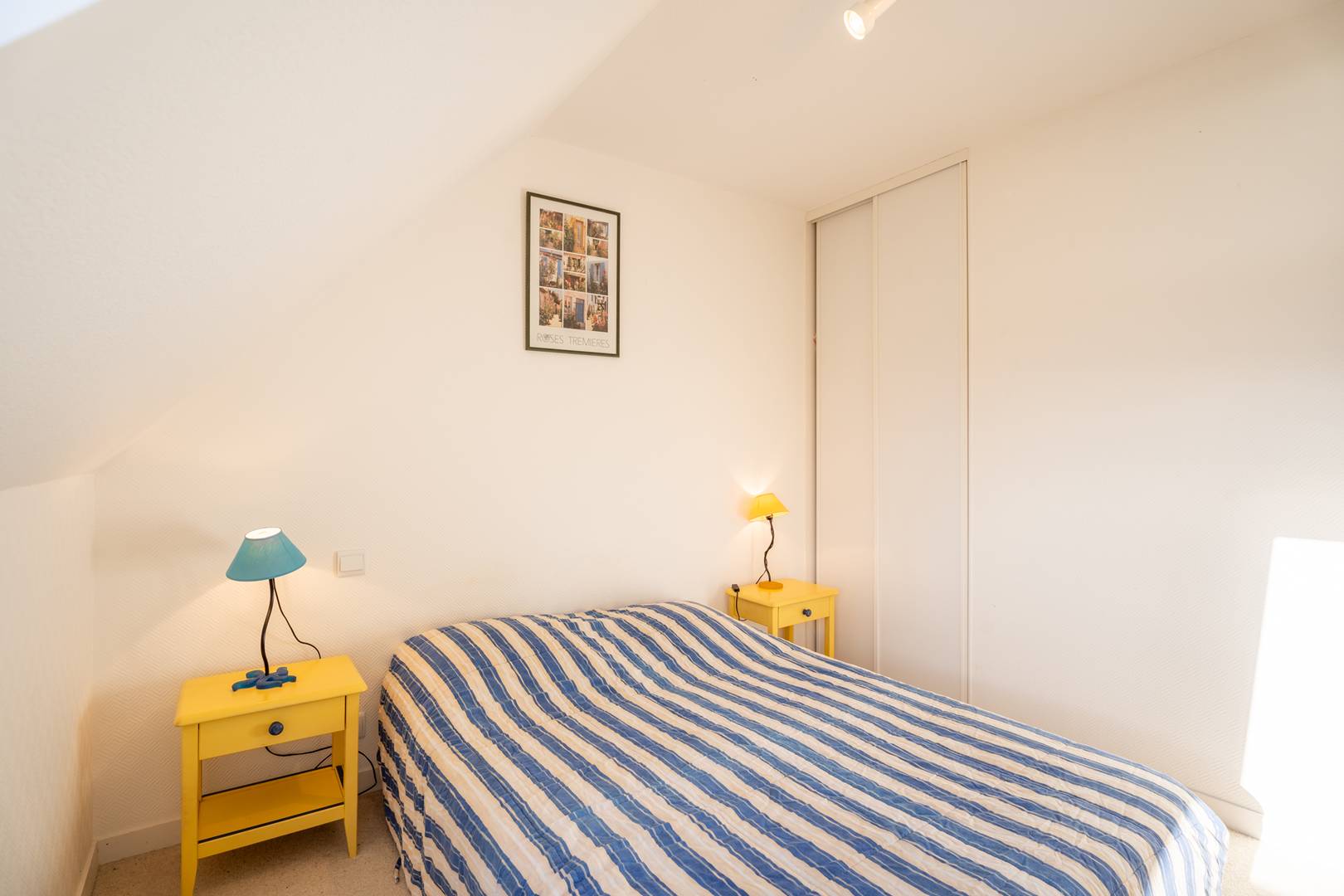 A 1km de la plage de Légénèse, de la Thalassothérapie et du bourg de Carnac, appartement 3 pièces duplex (env. 50m²) pour 6 personnes, situé dans un ensemble résidentiel calme avec piscine collective chauffée et ouverte de mi-juin à mi-septembre, Résidence LE DOMAINE DES TADORNES (Bâtiment J, 1er étage, porte 55):