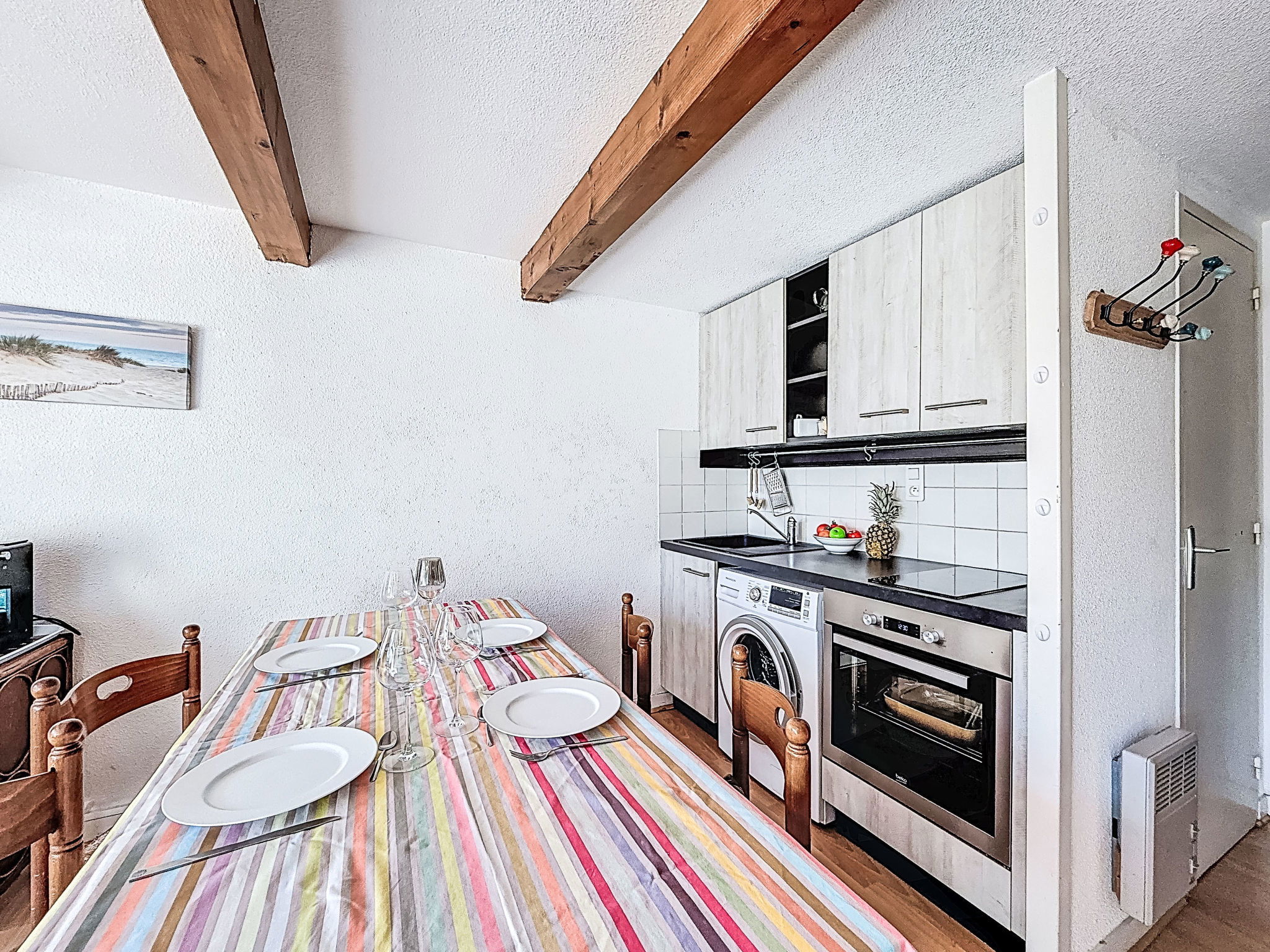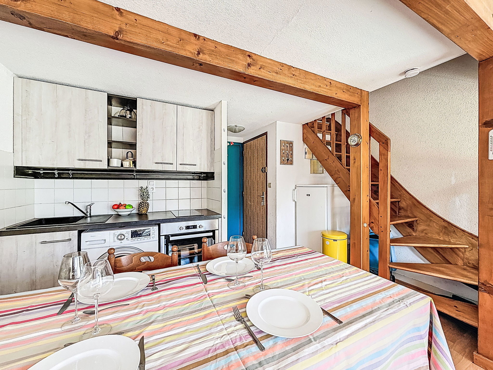 Appartement de 3 pièces 45 m2 au 1er étage. Aménagement confortable: séjour/salle à manger avec TV (écran plat). Sortie sur le balcon. 1 petite chambre avec 1 lit gigogne (2 pers. 2 x 90 cm, longueur 190 cm). Cuisine ouverte (four, 2 plaques vitrocéramiques, grille-pain, bouilloire électrique, cafetière électrique). WC séparé. À l'étage supérieur: 1 chambre avec 1 grand-lit (1 x 180 cm, longueur 200 cm). Salle de bains. Chauffage électrique. Balcon 5 m2, situation sud et situation ouest. Mobilier de balcon. A disposition: lave-linge, lit bébé, sèche-cheveux. Internet (Connexion WIFI, gratuit). Place de parking No 51 et 86. Veuillez noter: logement non-fumeur. 1 animal/ chien de petite taille autorisé. Détecteur de fumée. Annonce d'un particulier (art 155, IV du CGI).