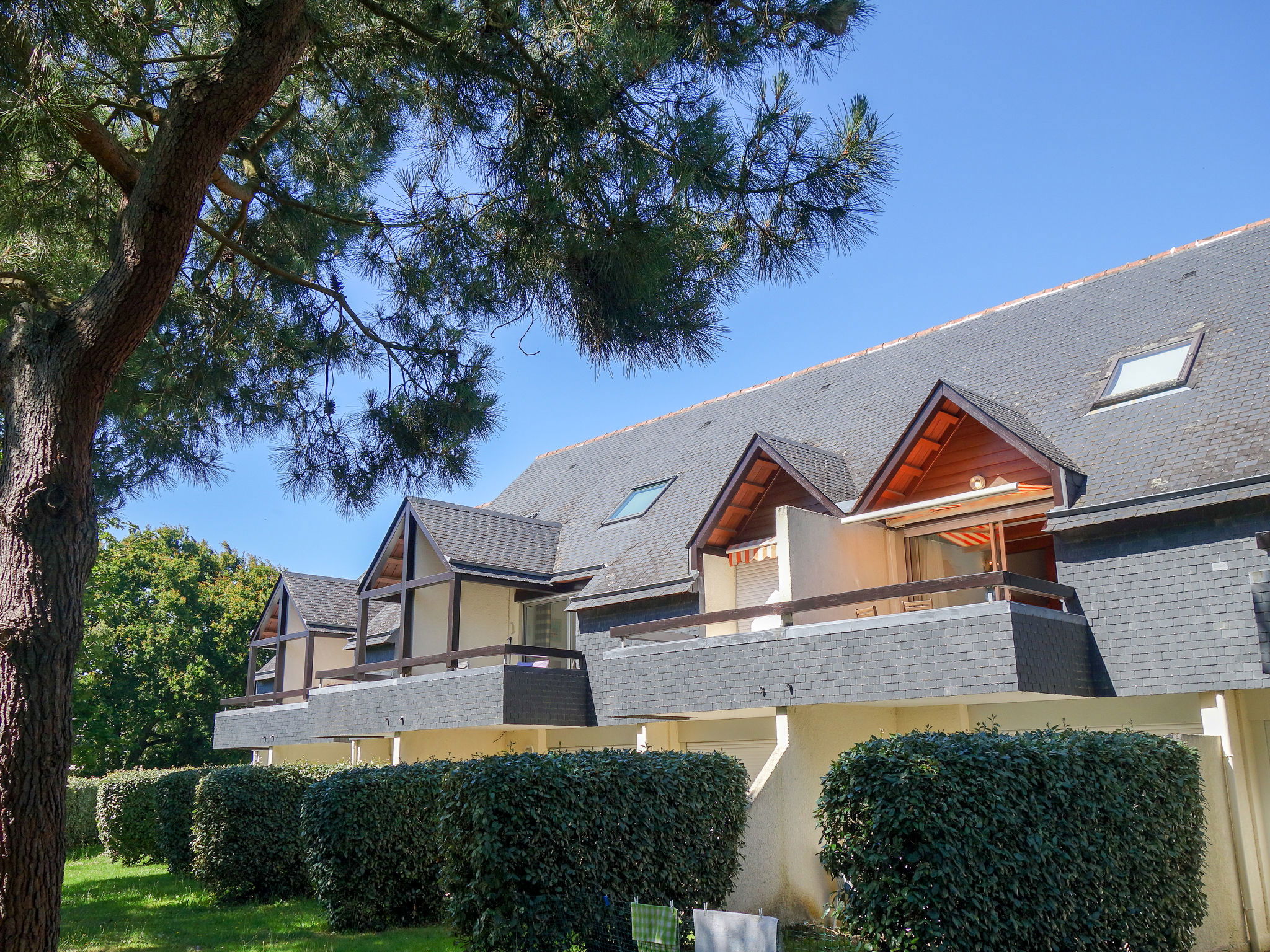 Résidence "Les Jardins de la Plage", de 2 étages. Dans la localité, à 1.2 km du centre de Carnac, dans un quartier résidentiel, à 400 m de la mer, à 500 m de la plage. Infrastructures de la résidence: réduit pour bicyclettes. Magasins 800 m, supermarché 400 m, restaurant 500 m, plage de sable "Grande Plage" 500 m, centre thermal "Thalassothérapie Thalazur" 1.4 km. Port plaisance 4 km, terrain de golf (18 trous) 15 km, ecole de surf 8 km, ecole de voile 1.5 km, tennis 500 m. Attractions à proximité: Carnac et les Alignements 4 km, La Trinité sur Mer 4 km, La Presqu'ile de Quiberon 12 km, Belle île en mer, Houat et Hoedic, Vannes 50 km, Lorient 60 km. Région de randonnées: Le Golfe du Morbihan.