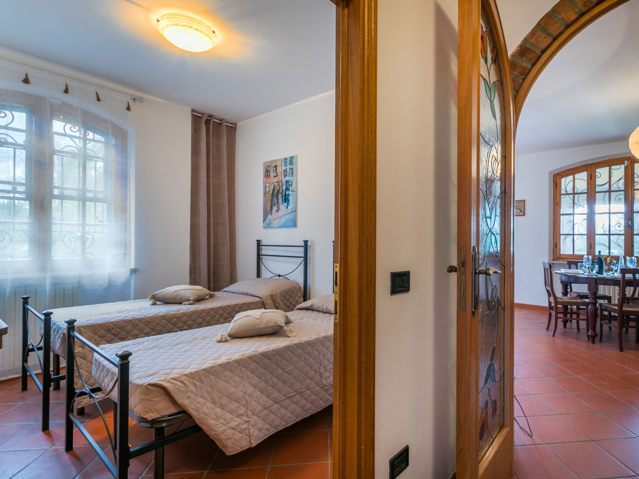 Maison à 2 apts accueillante, individuelle "Siby", de 2 étages. À 3.4 km du centre de Casale Marittimo, à 6.5 km du centre de Cecina, situation tranquille quartier résidentiel, à 10 km de la mer, à 10 km de la plage, dans une impasse. En commun: terrain 1 ha, parc avec pelouse et arbres, jardin propice à la détente, piscine (6 x 12 m, disponibilité saisonnière: 01.Mai. - 15.Oct.) avec systeme d'électolyseur au sel. Pergola, entretien de la piscine par le propriétaire/jardinier. Infrastructures de la Maison: air-conditionné. Change de linge (suppl. en sus). Changementde linge de toilette (suppl. en sus). Place de parking (pour 4 voitures) près de la maison. Magasin d'alimentation 400 m, supermarché 5 km, restaurant 600 m, arrêt de bus "Cecina V. Paratino 13" 3.1 km, gare ferroviaire "Cecina" 7 km, plage de sable "Marina di Cecina" 10 km, centre thermal "Calidario" 40 km. Attractions à proximité: Bolgheri 18 km, Volterra 33 km, Pisa 66 km, Lucca 88 km, Firenze 120 km. Le propriétaire n'accepte pas les groupes de jeunes.