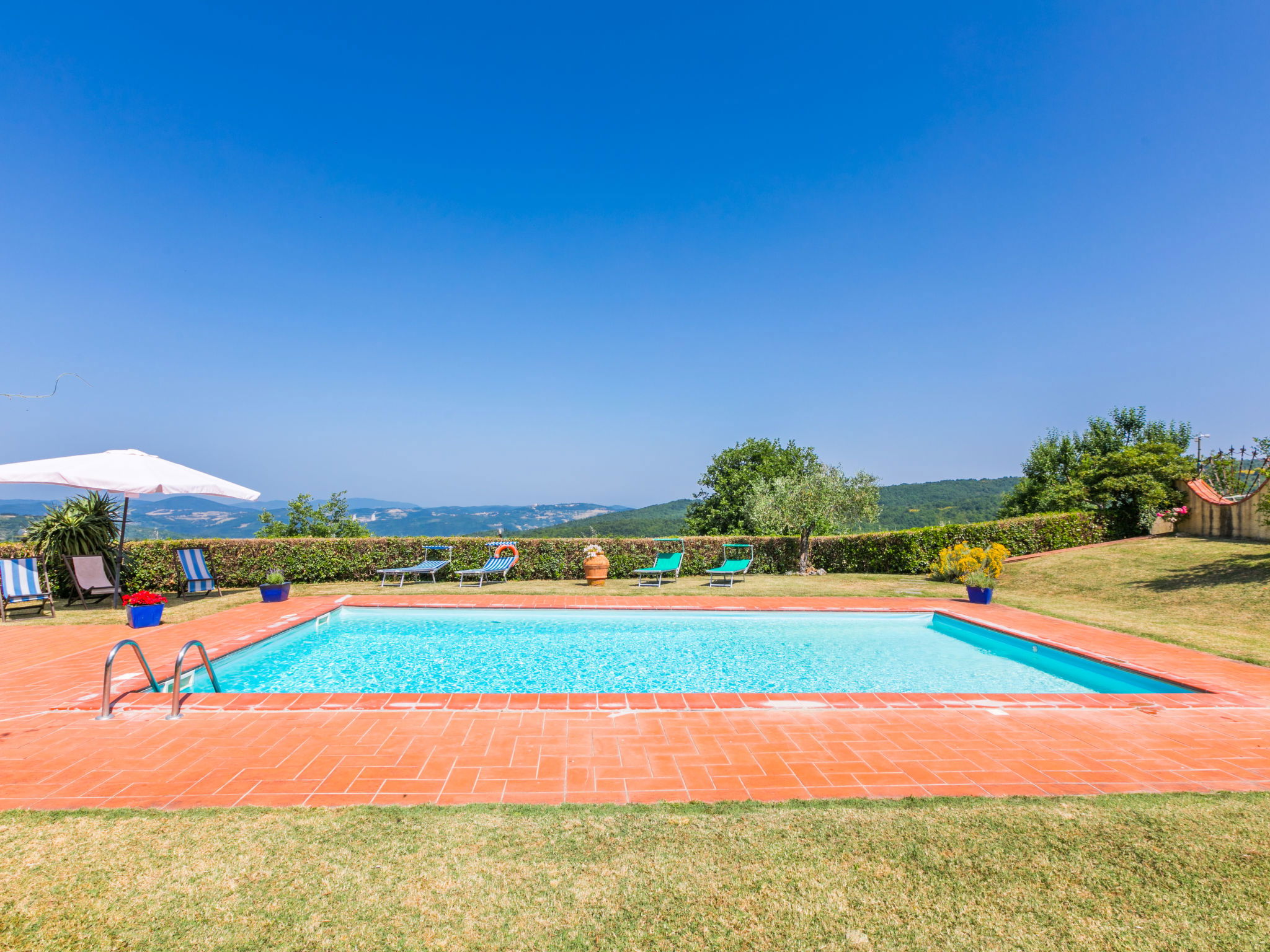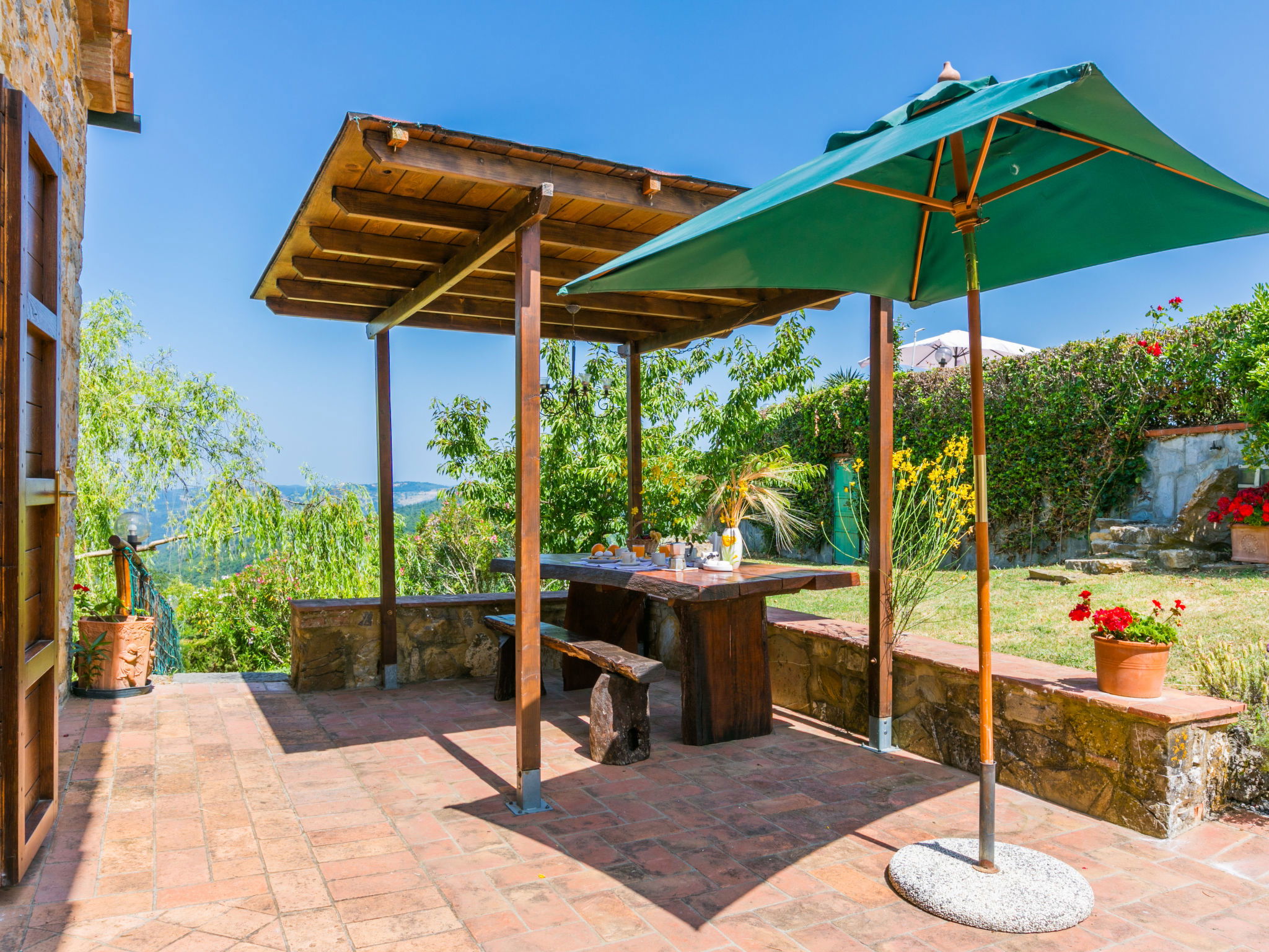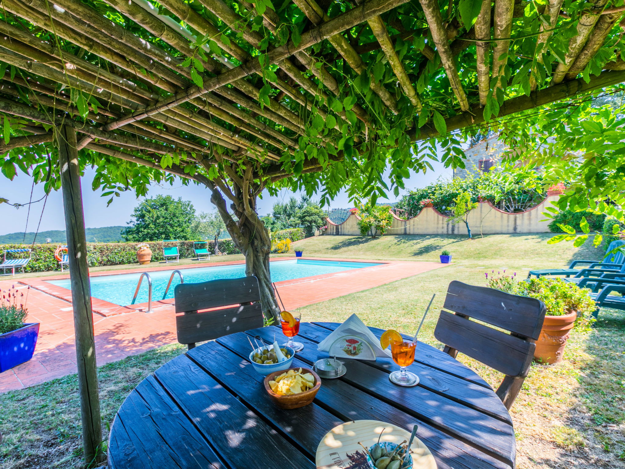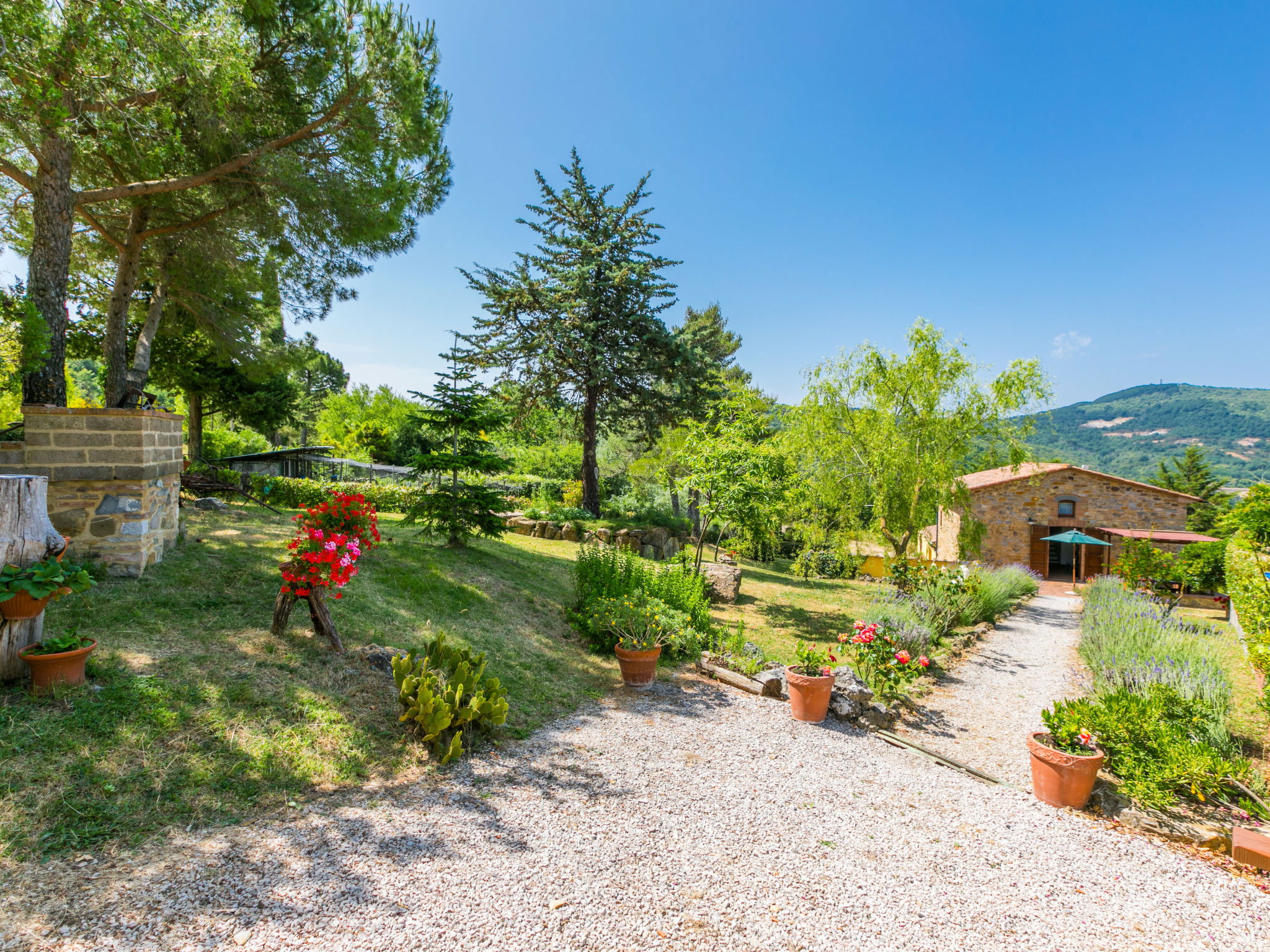 Cottage "Pino di Sopra". Location composée d'un bâtiment principal et d'une annexe, à 8.7 km du centre de Castelnuovo Val di Cecina, à 4.5 km du centre de Sasso Pisano, à 21 km du centre de Massa Marittima, situation isolée sur un versant, à 45 km de la mer, à 4.5 km du lac, dans la verdure. En commun: terrain, jardin sur plusieurs niveaux avec plantes et fleurs, piscine cloturée (10 x 5 m, disponibilité saisonnière: 07.Jun. - 30.Sep.). Douche extérieure, tonnelle, meubles de jardin, barbecue. Infrastructures de la Maison: Connexion WIFI, lave-linge (en commun). Accès en voiture par un chemin de 200 m de long (chemin non goudronné). Place de parking (pour 5 voitures) sur le terrain. Magasins 4.5 km, supermarché 8.7 km, arrêt de bus 2 km, piscine couverte 14 km, étang offrant possibilité de baignade 4.5 km. Attractions à proximité: Volterra 45 km, Siena 70 km, Firenze 100 km. Vente locale de produits de la ferme.