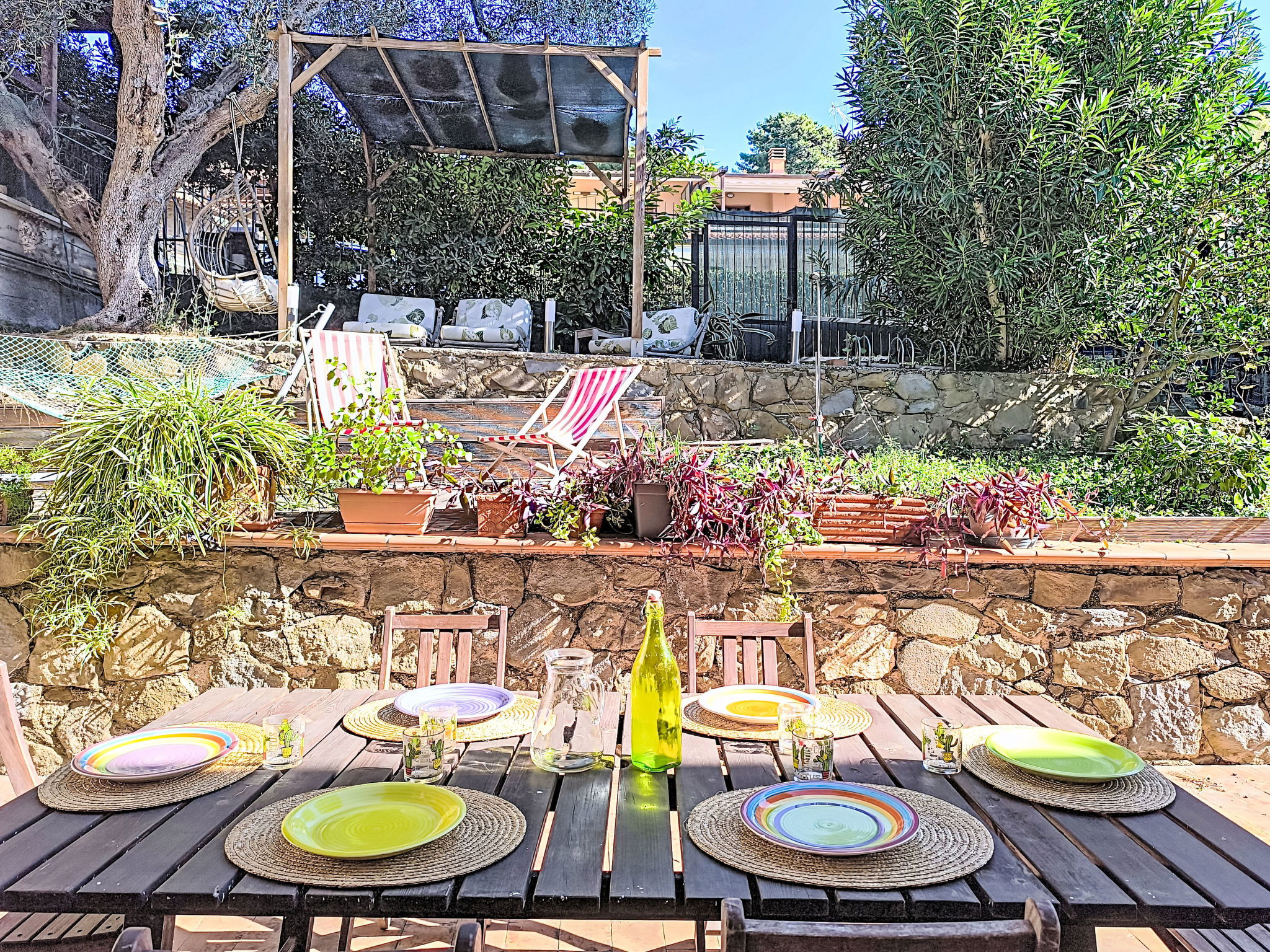 Maison à 2 apts. À 800 m du centre de Castiglione della Pescaia, dans un quartier résidentiel, à 350 m de la mer, à 350 m de la plage. A usage privé: jardin sur plusieurs niveaux 200 m2 (clôturé), parking public possible dans la rue. Magasin d'alimentation 50 m, supermarché 500 m, restaurant, bar, boulangerie 100 m, location de bicyclettes 300 m, centre à 5 minutes à pieds, arrêt de bus 200 m, gare ferroviaire "Follonica" 20 km, centre thermal "Calidario - Venturina" 42 km. Port plaisance, marina 400 m, terrain de golf (18 trous) 18 km, ecole de surf, ecole de voile 600 m, tennis 1 km. Attractions à proximité: Punta Ala 20 km, Cala Violina 25 km, Massa Marittima 42 km, Grosseto 23 km, Monte Argentario 50 km. Région de randonnées: Riserva Naturale Diaccia Botrona 4 km.