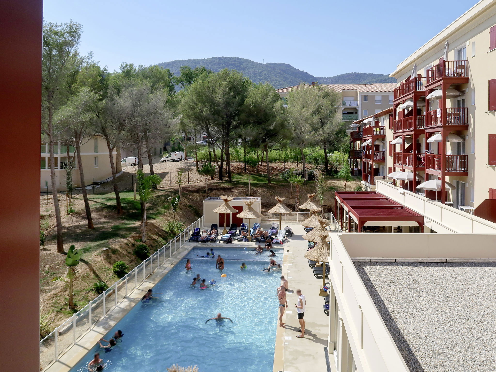Complexe de vacances "Les Canissons", année de construction 2019. 95 appartements dans la résidence. À 800 m du centre de Cavalaire, à 20 km du centre de St. Tropez, à 59 km du centre de Toulon, à 700 m de la mer. En commun: terrain (clôturé), piscine chauffée (7 x 20 m, profondeur 140 cm, disponibilité saisonnière: 15.Avr. - 15.Oct.). Bassin pour les enfants, douche extérieure, terrain de pétanque. Infrastructures de la résidence: réception, salle pour petits déjeuners, sauna, salle fitness, massage (en sus). Bains de vapeur (hammam), lave-linge, sèche-linge (en commun, en sus). Petit-déjeuner (en sus). Place de parking (nombre de places limité), garage en commun. Magasins 300 m, restaurant, plage de sable "Bonporteau" 700 m. Veuillez noter: résidence avec portail électrique. La photo ne montre qu’un exemple de location de vacances. Les locations peuvent également se différencier par leur superficie, la disposition des pièces et leur équipement.