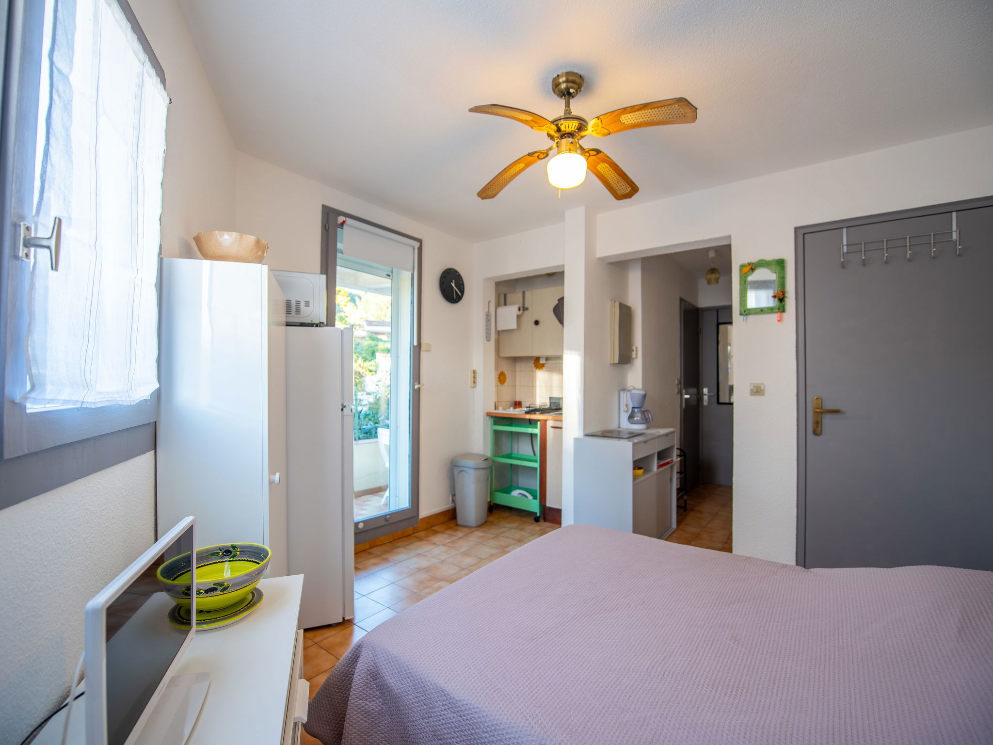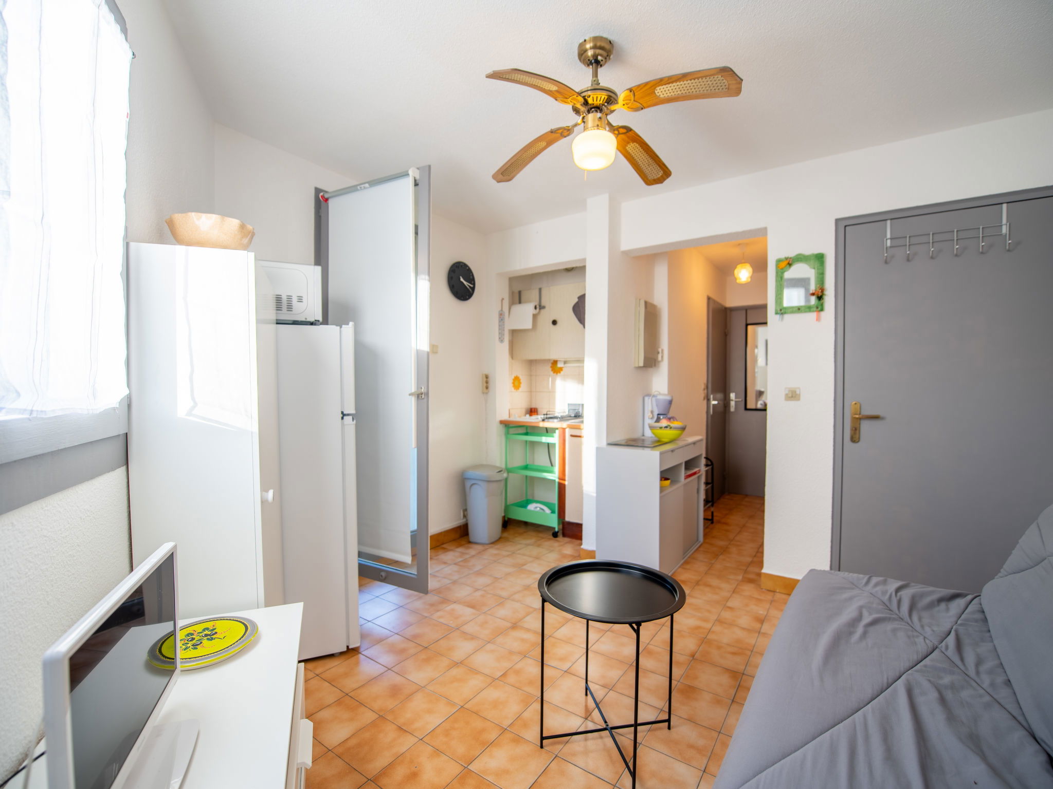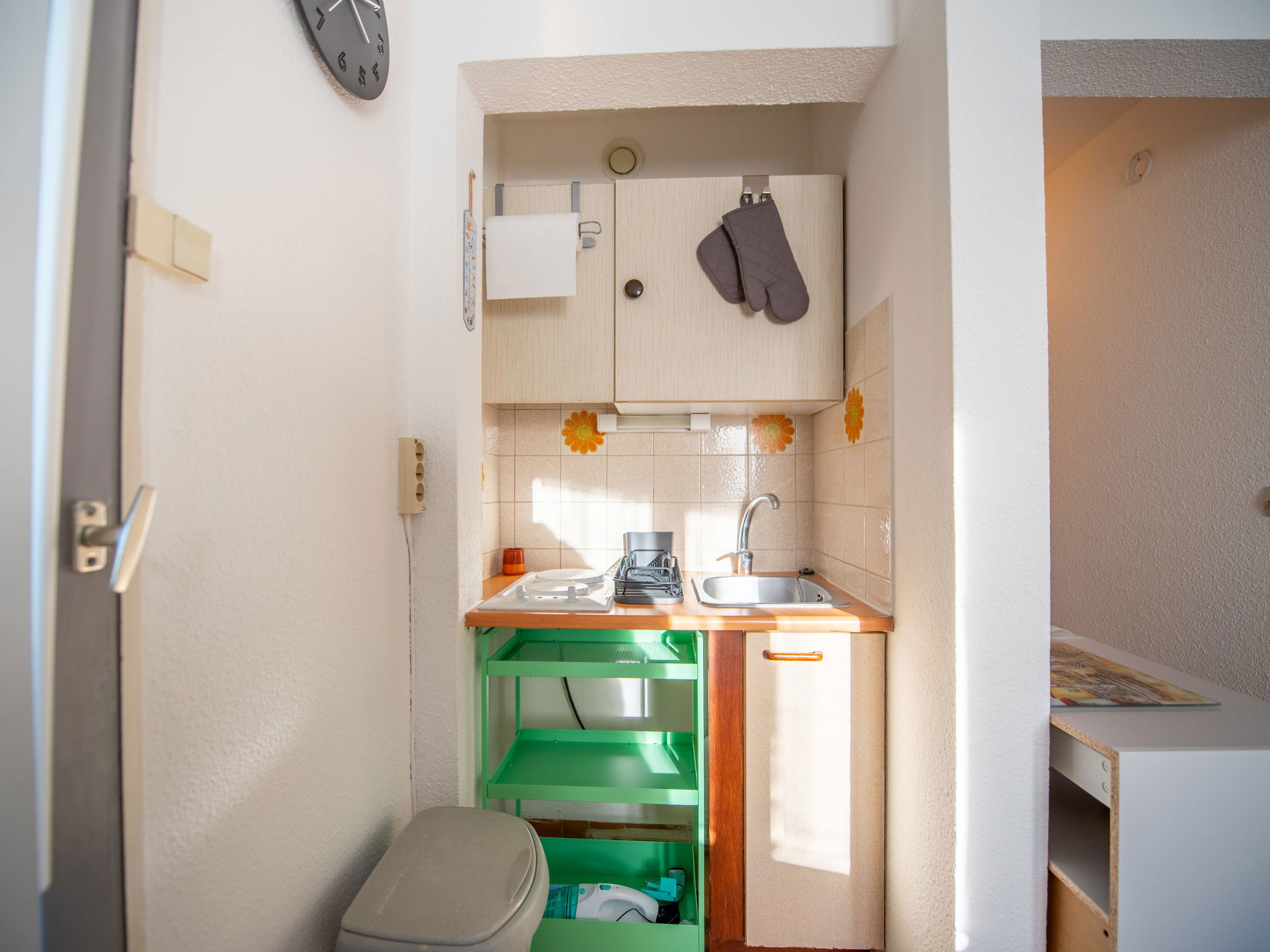 Studio 20 m2, au rez-de-chaussée. Aménagement confortable: séjour/salle à manger avec 1 divan-lit double (140 cm, longueur 190 cm), TV (écran plat). Sortie sur la terrasse. Petite cabine avec 1 lit (90 cm, longueur 190 cm). Coin cuisine (2 plaques de cuisson, grille-pain, bouilloire électrique, micro-ondes, congélateur, cafetière électrique). Douche/WC. Terrasse 10 m2, situation nord. A disposition: lave-linge. Internet (Connexion WIFI, en sus). Place de parking No 34. Veuillez noter: logement non-fumeur. Maximum 1 animal/ chien autorisé. Détecteur de fumée. Annonce d'un particulier (art 155, IV du CGI).